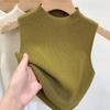 Suéter de punto interior de verano para mujer, camiseta básica de cuello alto medio, camisola corta, sin mangas, ropa exterior