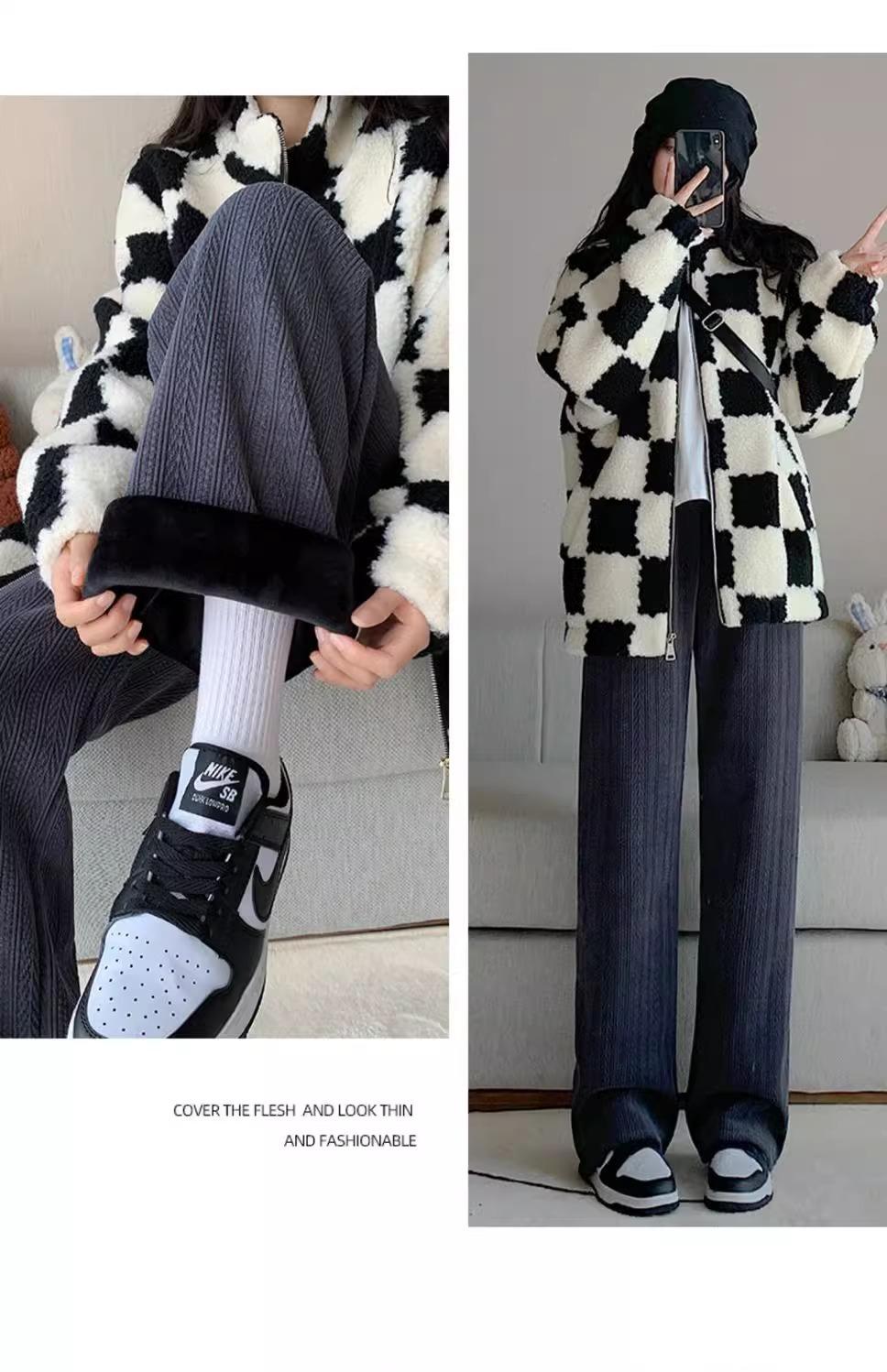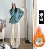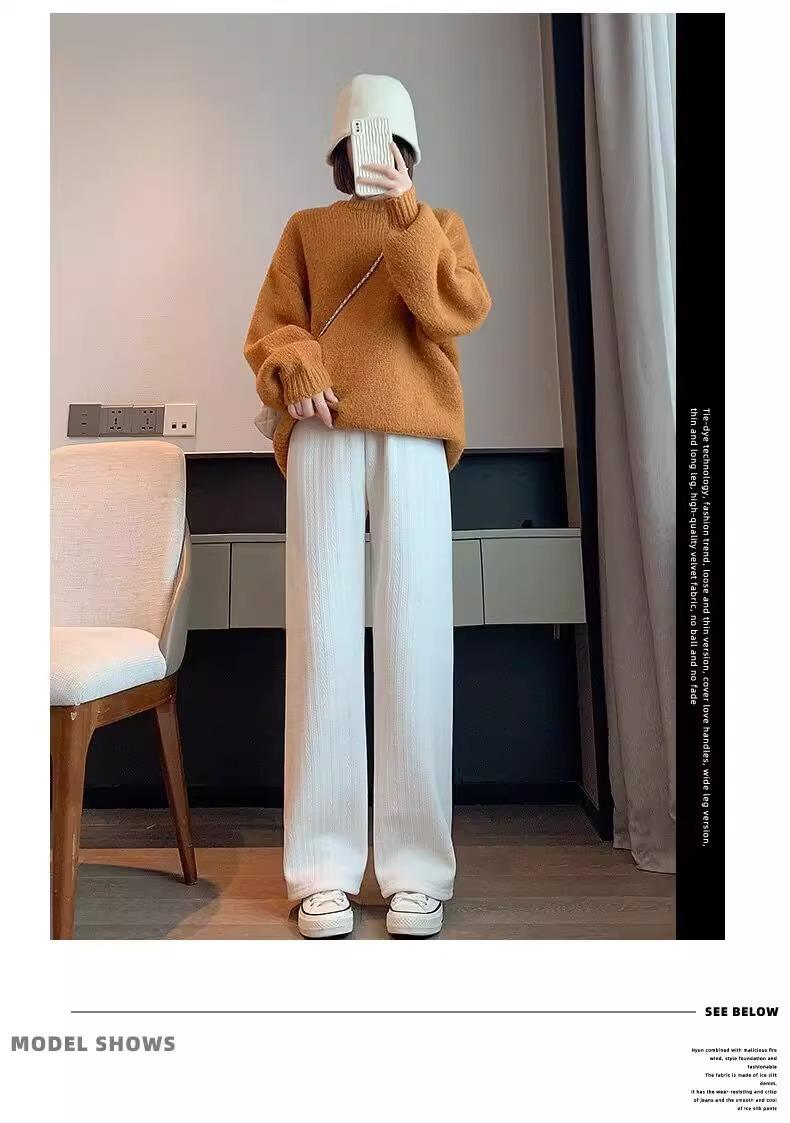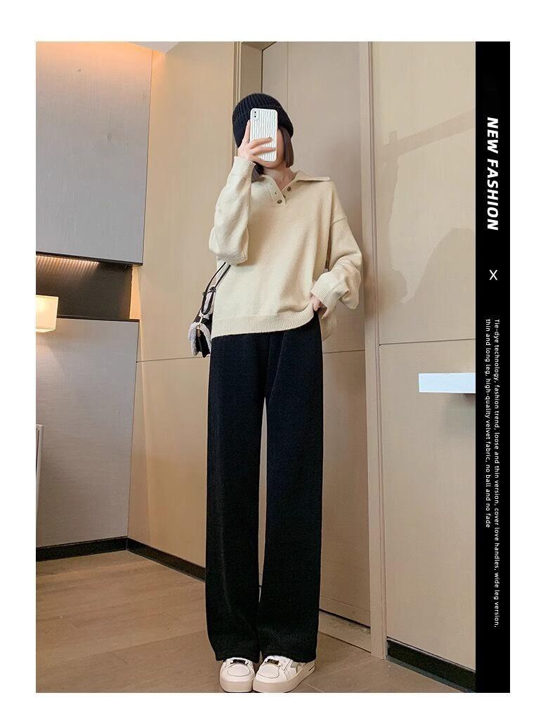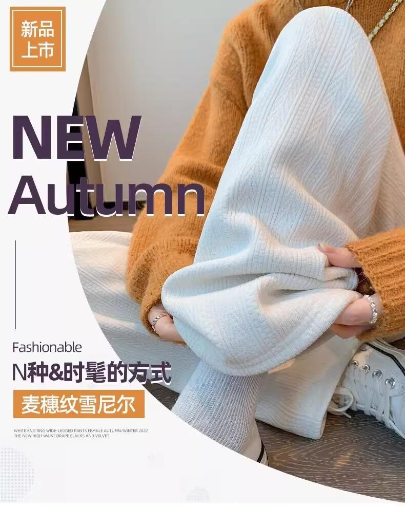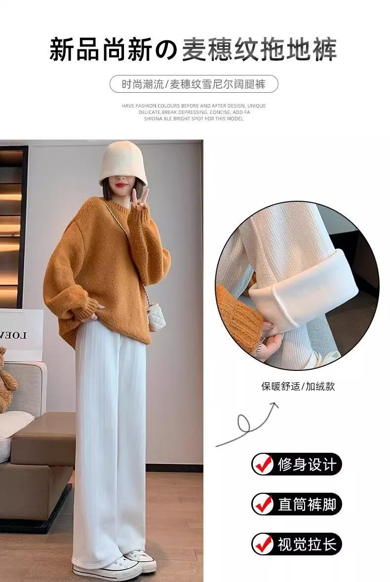 Pantalones de chenilla de trigo para mujeres embarazadas otoño e invierno ropa exterior forro polar engrosado pantalones rectos nuevos casuales pantalones de pierna ancha embarazo temprano