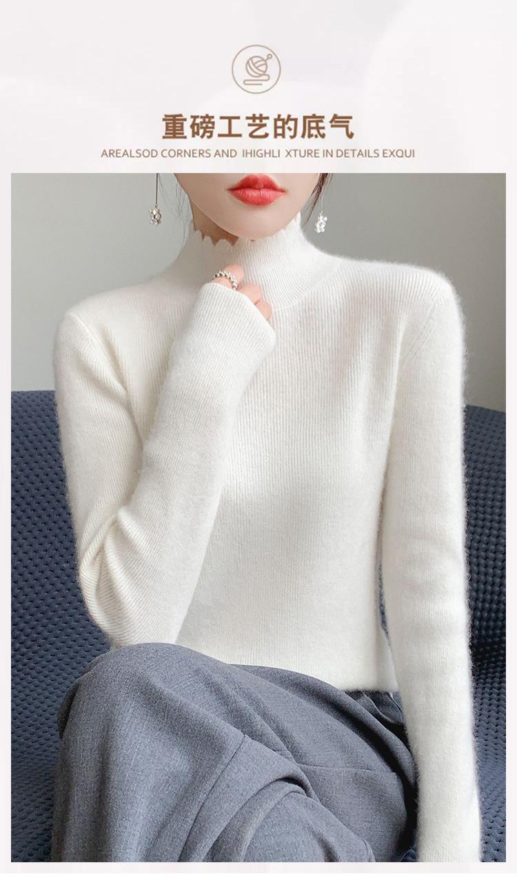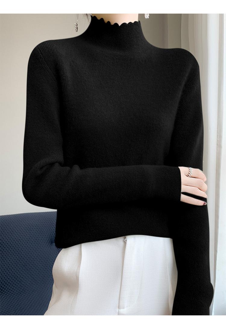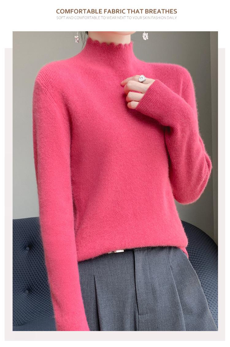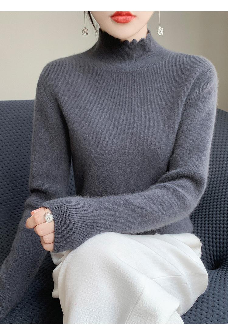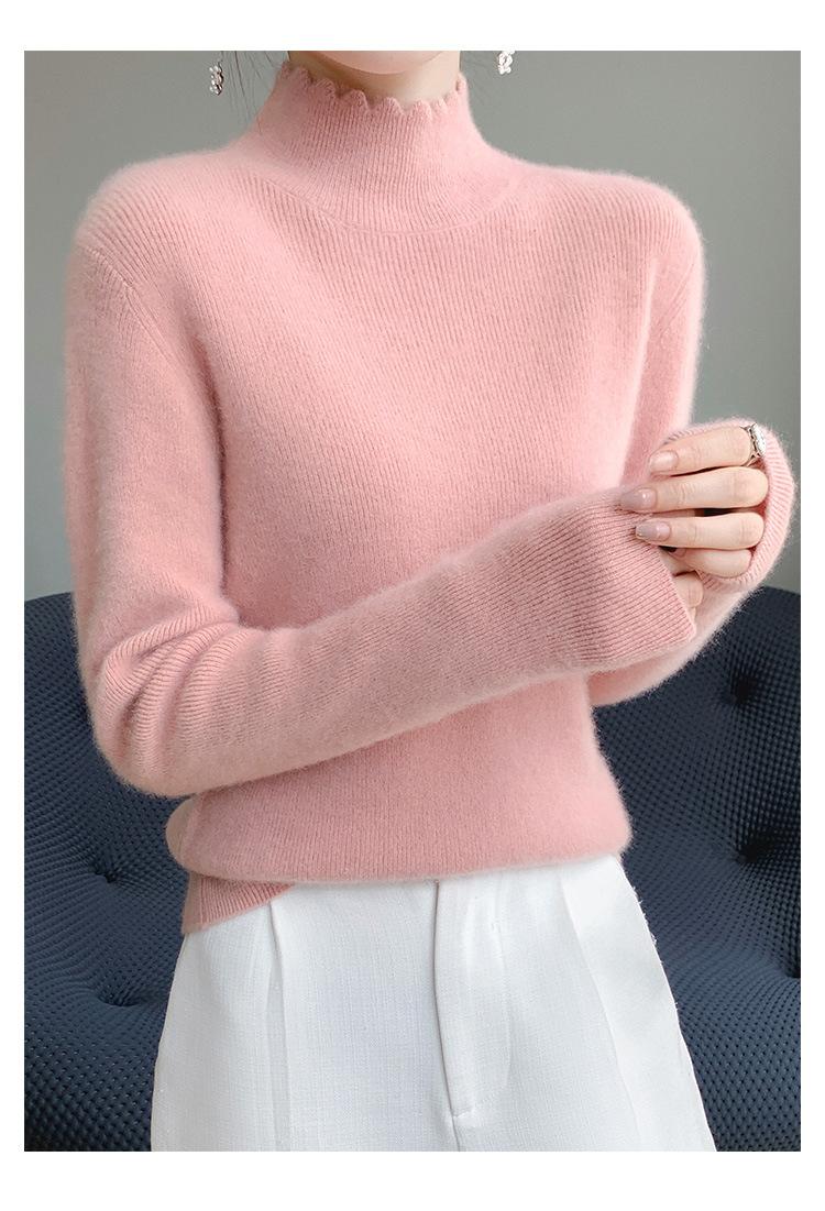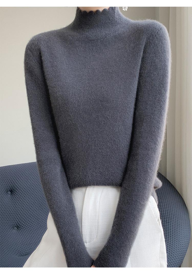 Suéter de Punto Andy de Terciopelo de Manga Larga con Cuello Semicisne para Mujer Estilo Coreano Nuevo Otoño/Invierno 2025 Suéter Básico de Punto para Mujer