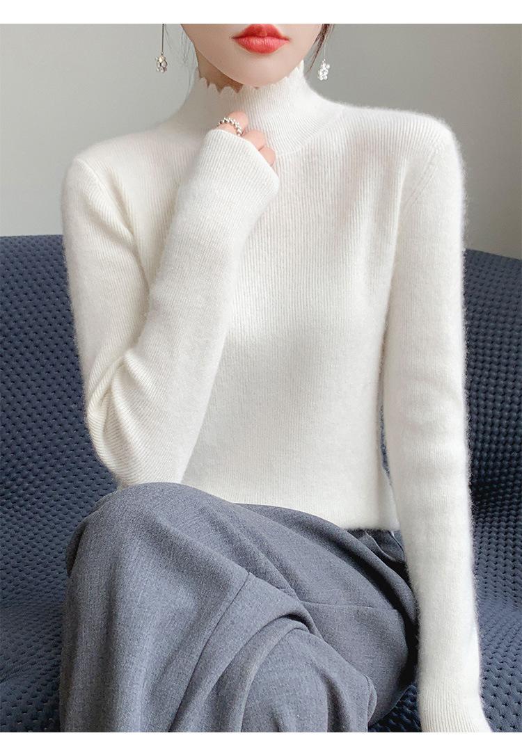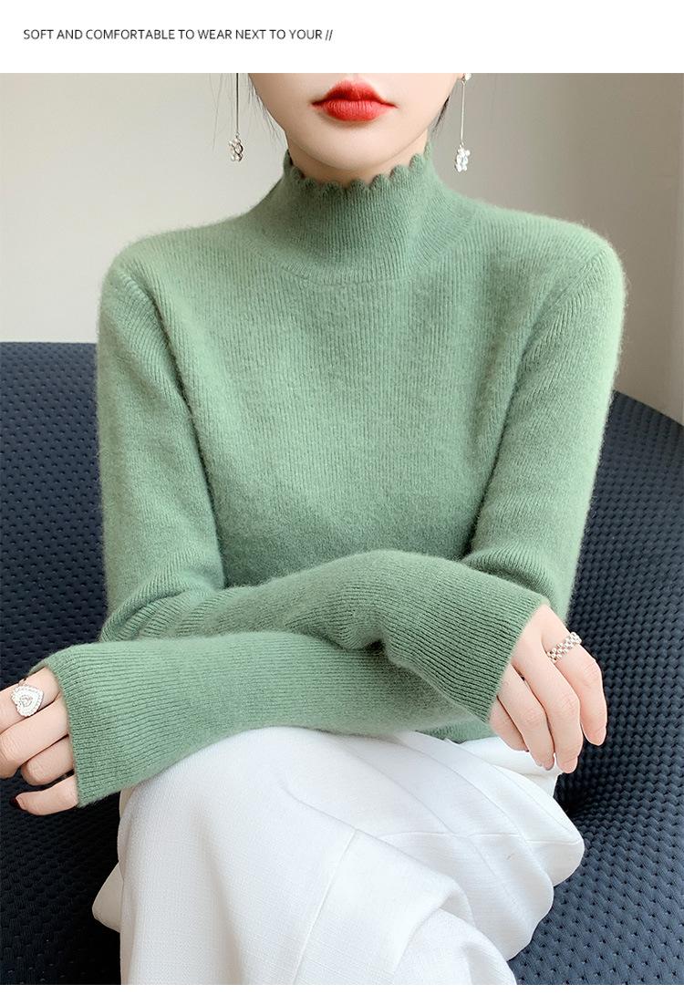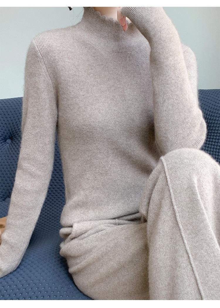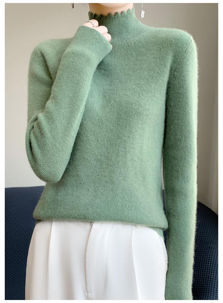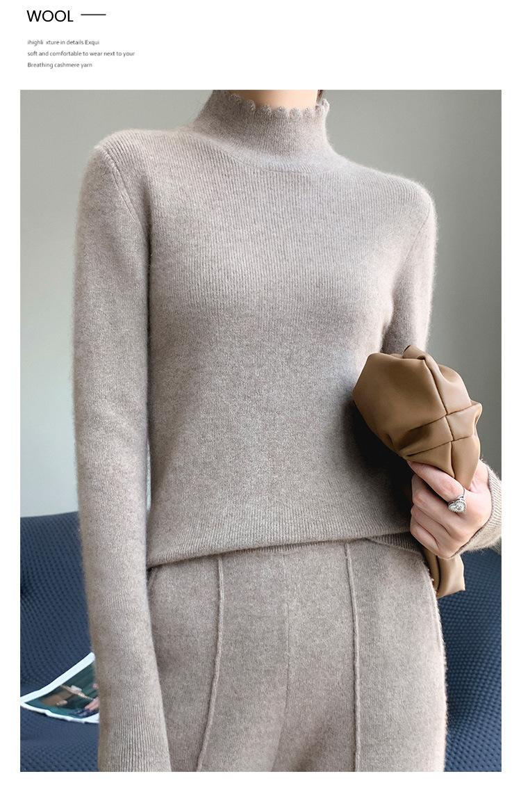 Suéter de Punto Andy de Terciopelo de Manga Larga con Cuello Semicisne para Mujer Estilo Coreano Nuevo Otoño/Invierno 2025 Suéter Básico de Punto para Mujer