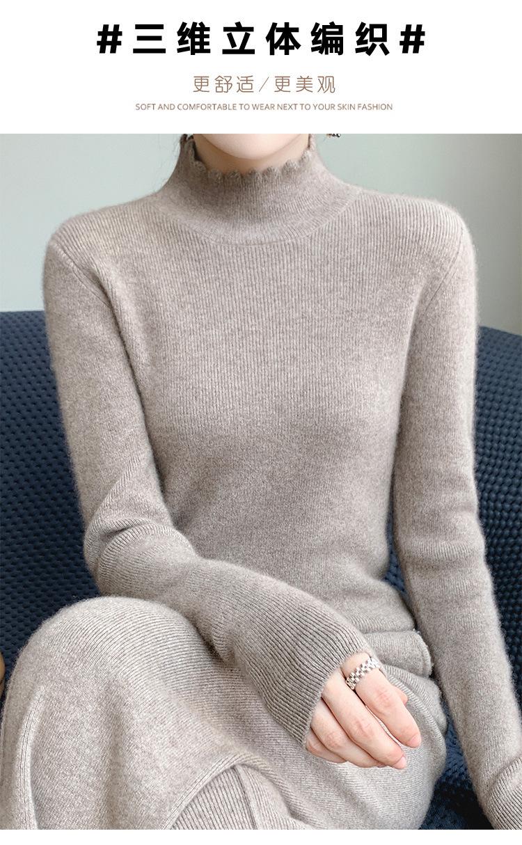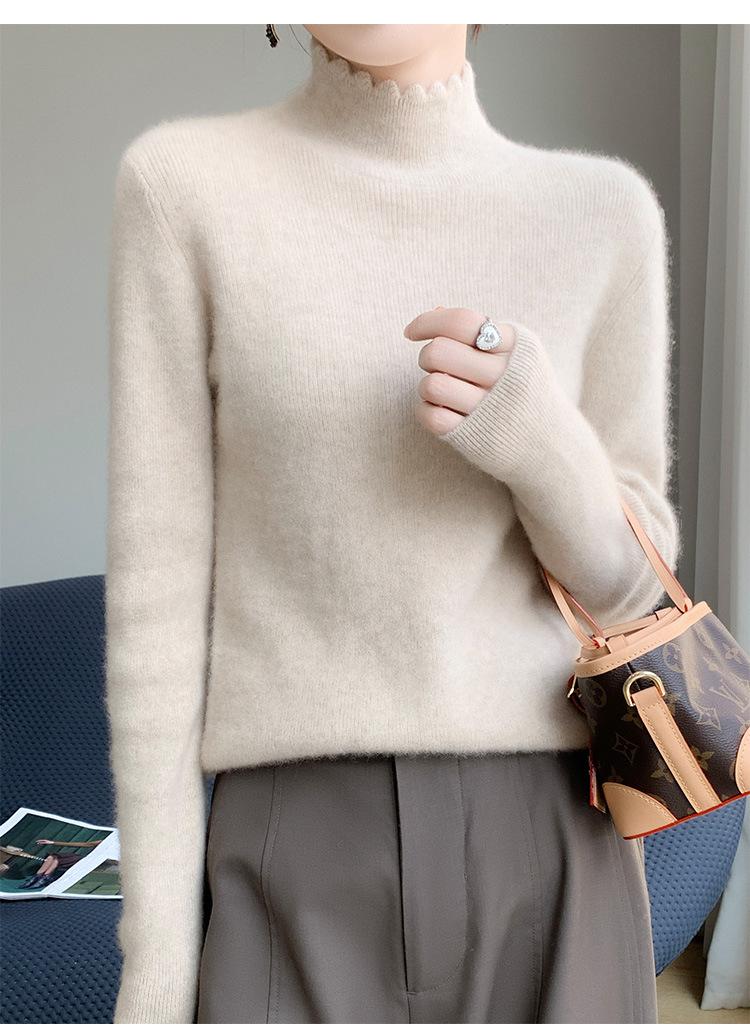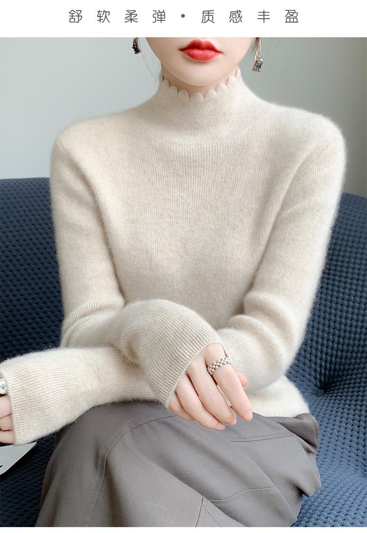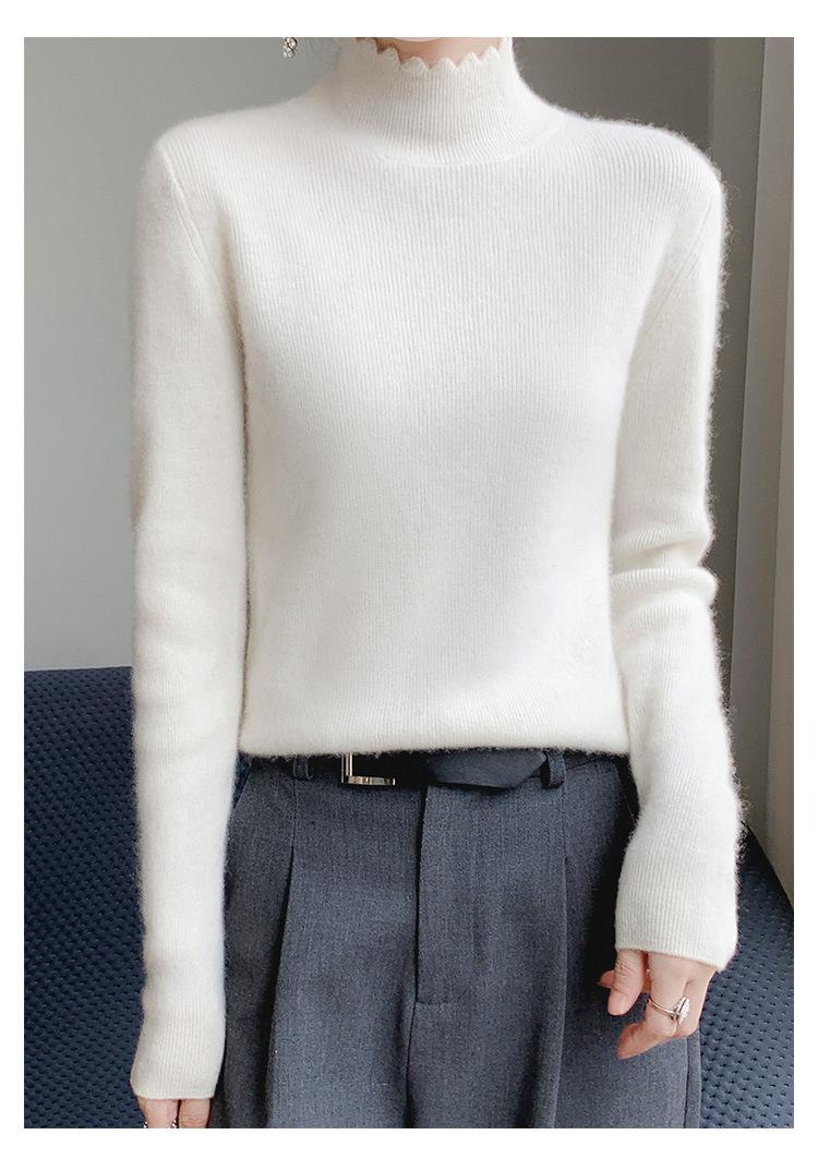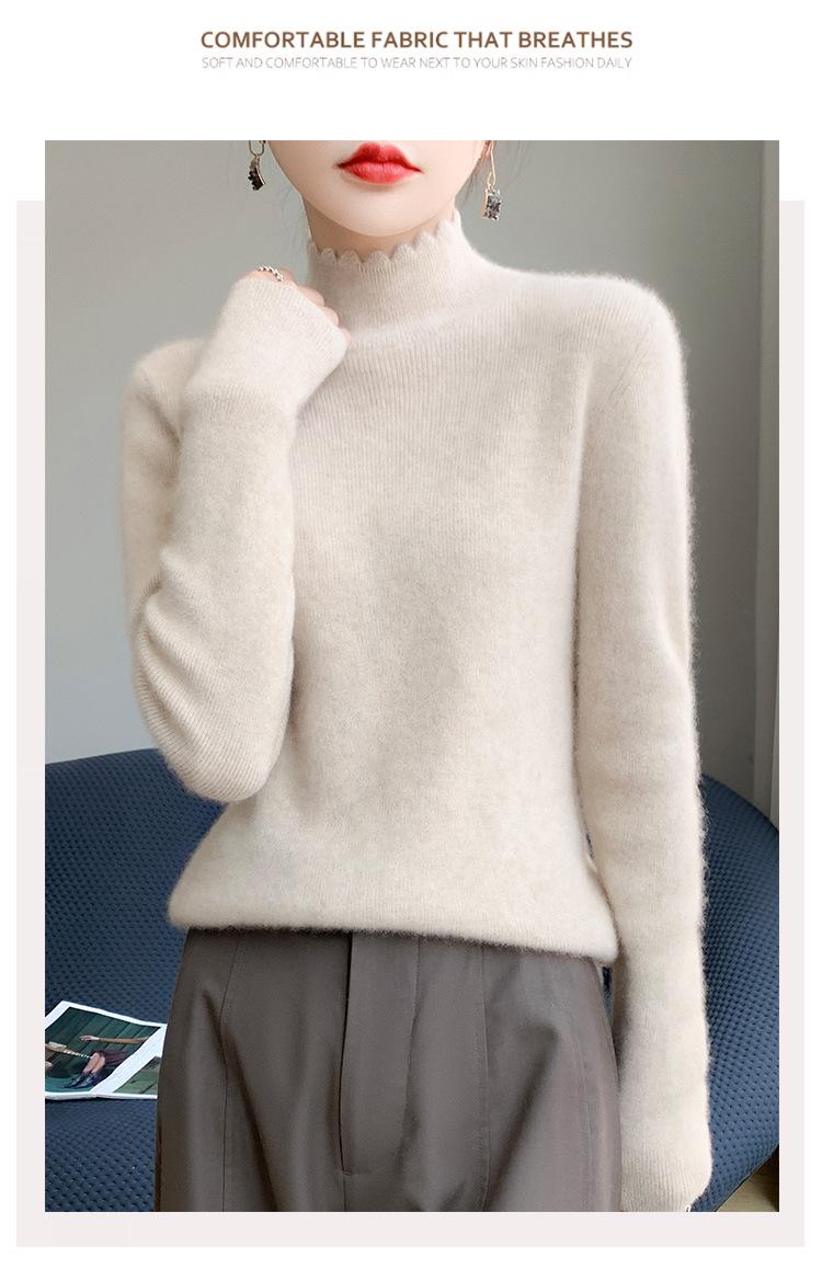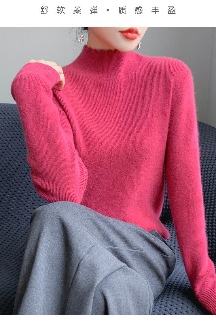 Suéter de Punto Andy de Terciopelo de Manga Larga con Cuello Semicisne para Mujer Estilo Coreano Nuevo Otoño/Invierno 2025 Suéter Básico de Punto para Mujer