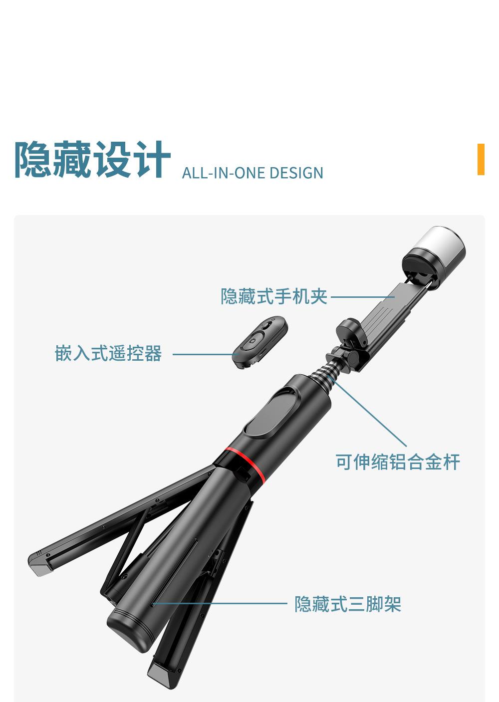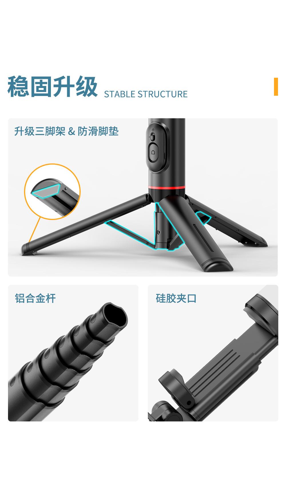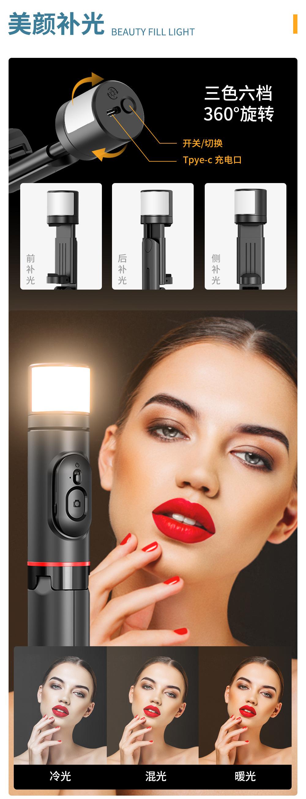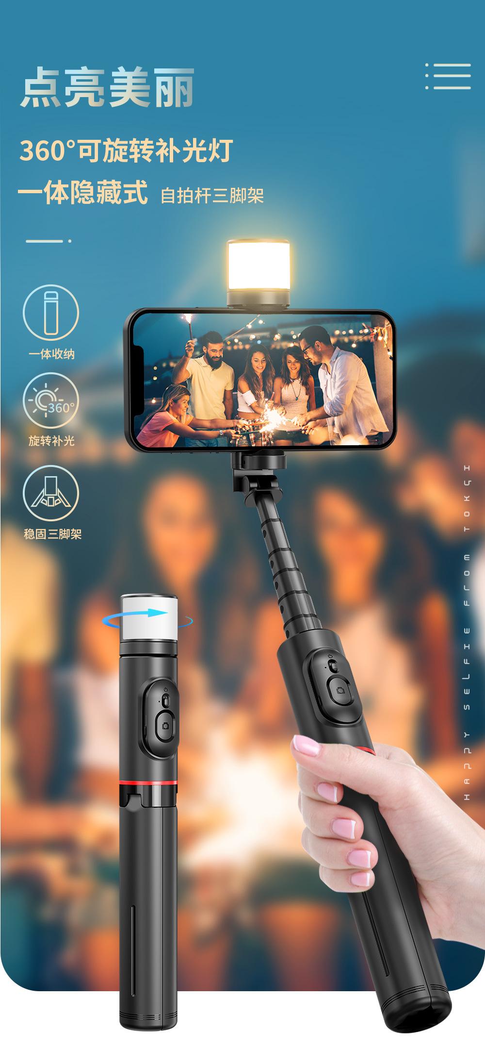 Palo de selfie para teléfono móvil Q12S, mini luz de relleno, Bluetooth integrado, soporte de trípode multifuncional para transmisión en vivo de escritorio