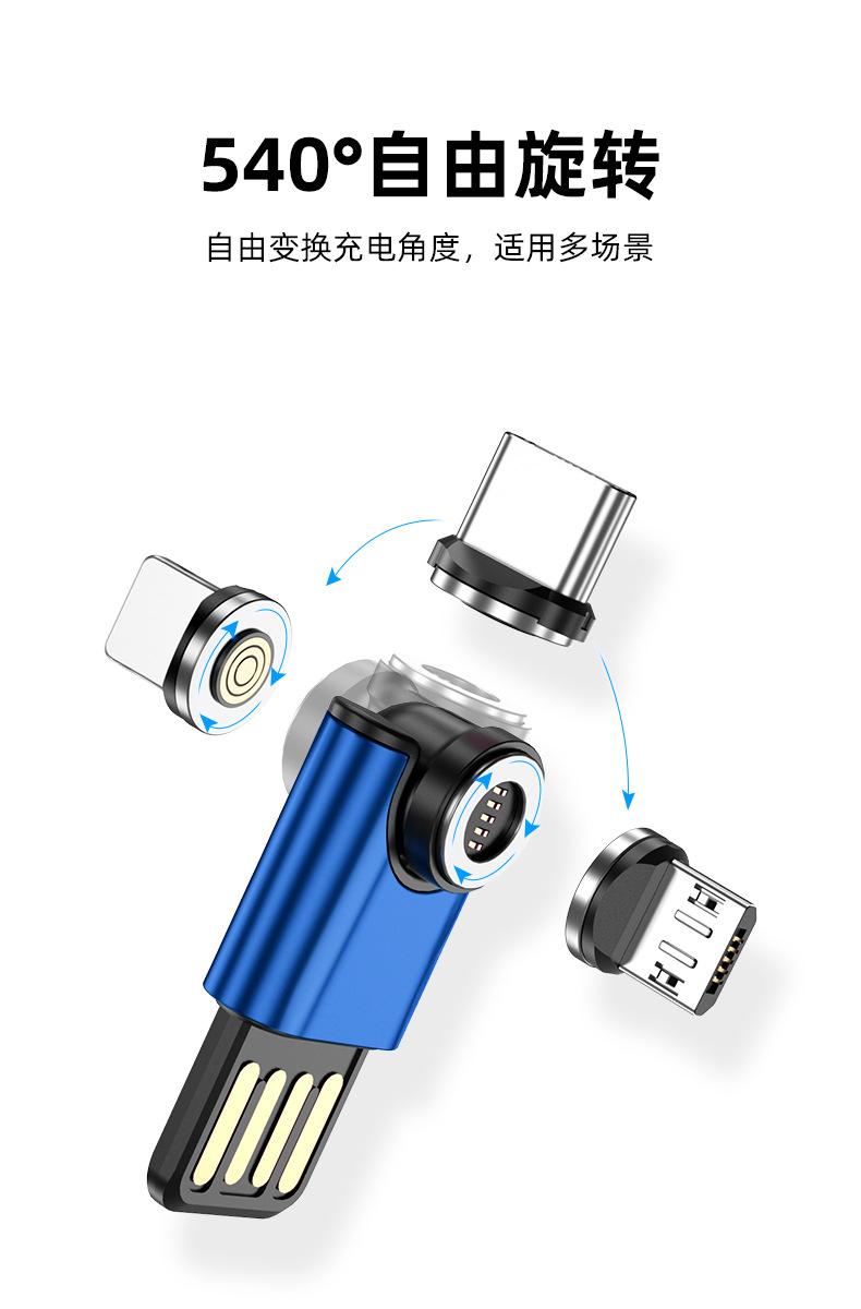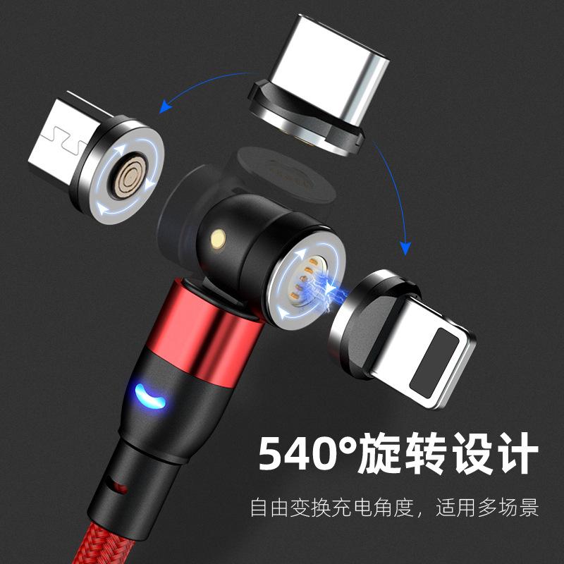 |Cable de datos magnético giratorio 540 grados succión ciega cable de carga magnético redondo tres en uno cable magnético curvo para juegos móviles