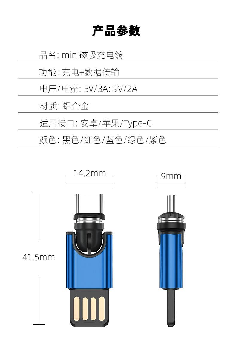 |Adaptador Mini magnético de carga rápida de 3A de 540 grados nuevo transfronterizo USB portátil adaptador magnético