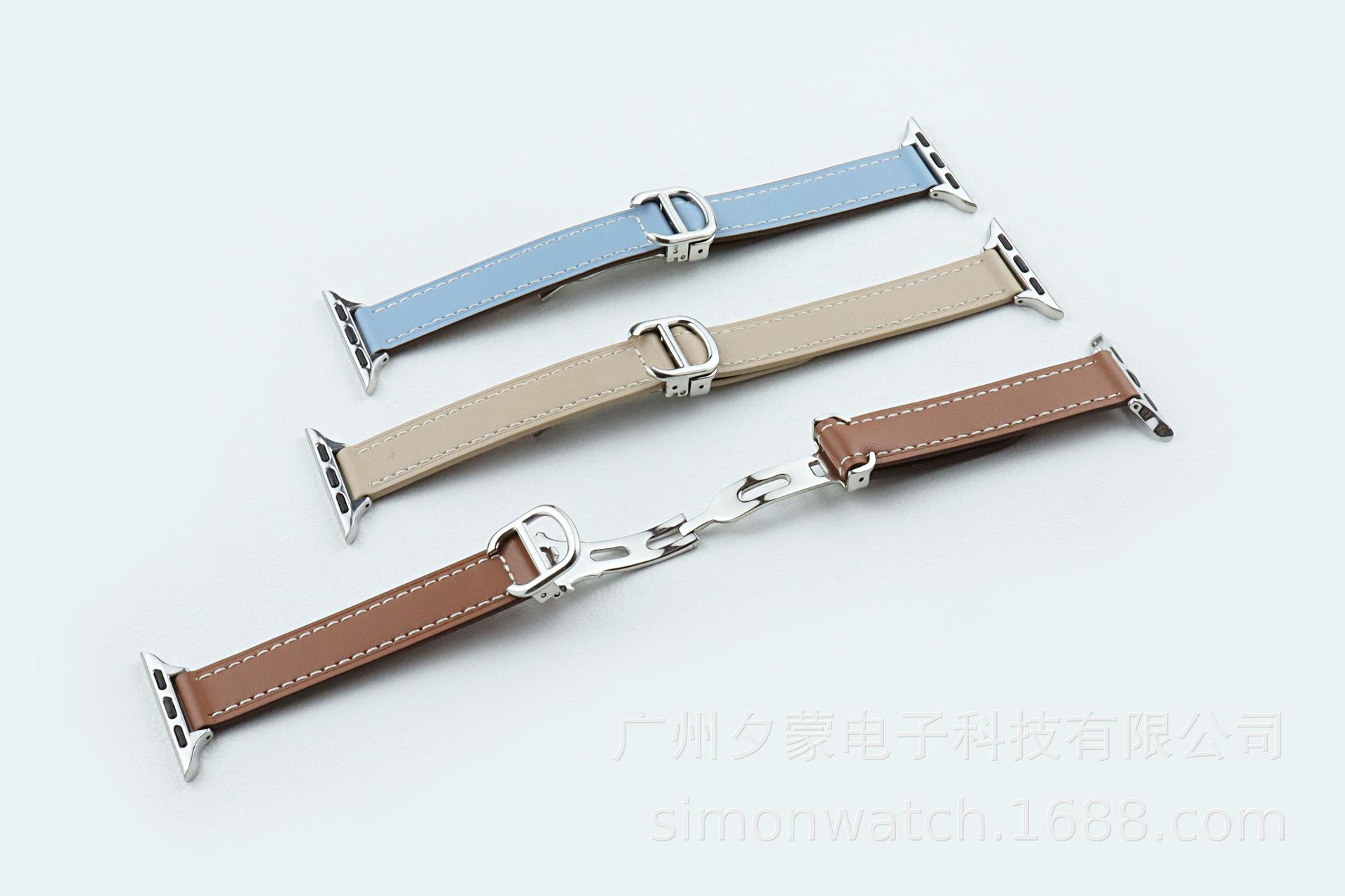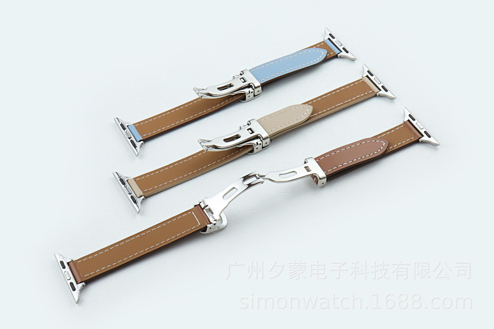 Correa de Reloj de Cuero Delgada con Cierre de Mariposa Adecuada para Apple iWatch 11ª Generación 10/987Se