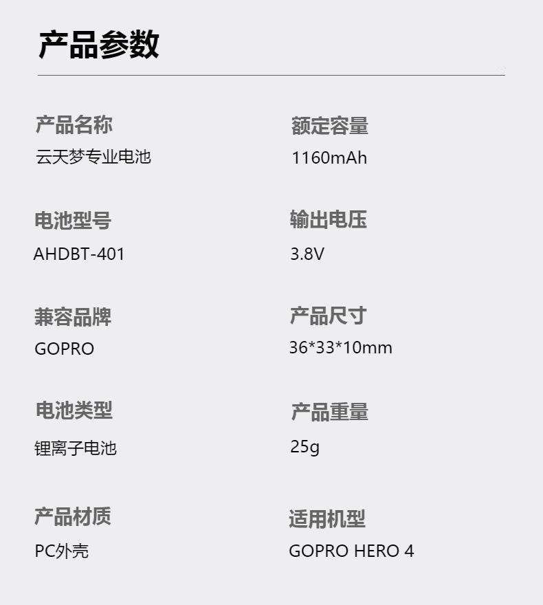 Batería para cámara deportiva GoPro Yuntianmeng, batería de 4.ª generación para cámara AHDBT-401