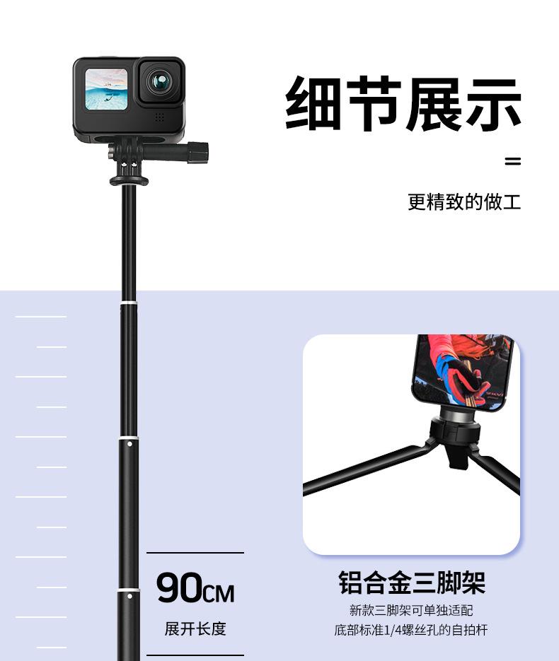 Palo Selfie para Cámara Deportiva Aleación de Aluminio Accesorios Action 5 Adaptados a Gopro13/12 Barra de Extensión Grabación Vlog
