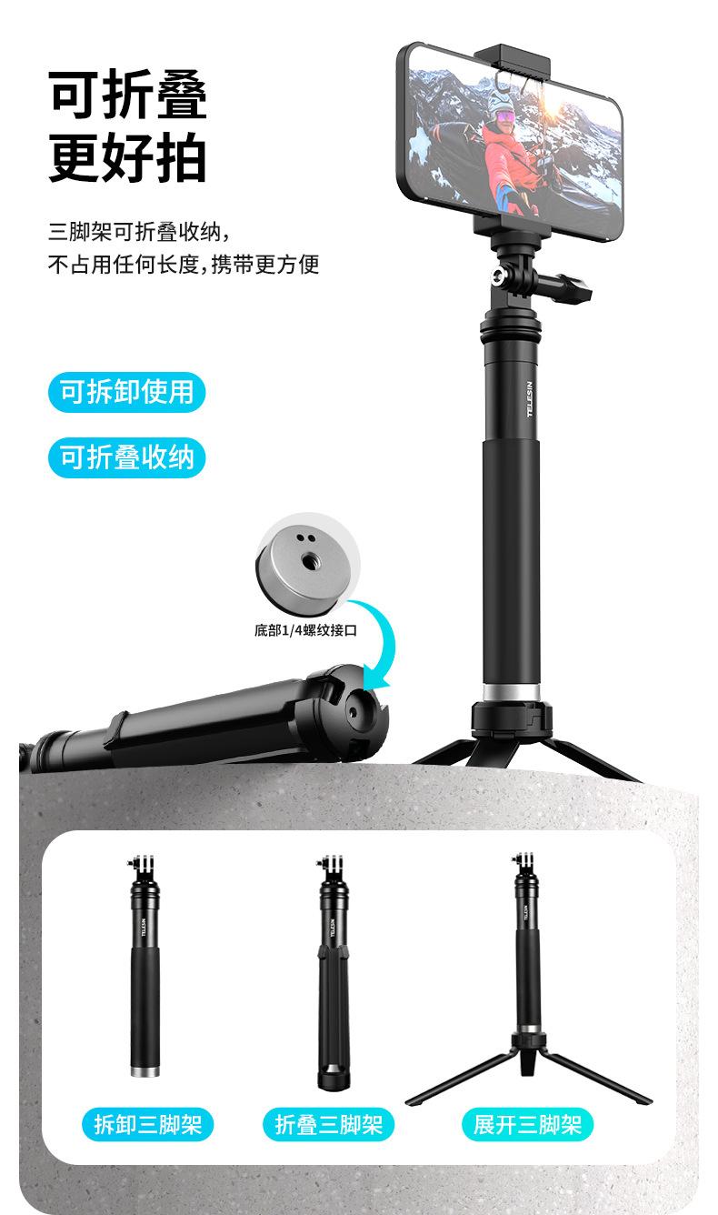 Palo selfie de aleación de aluminio en caja TELESIN nuevo y mejorado