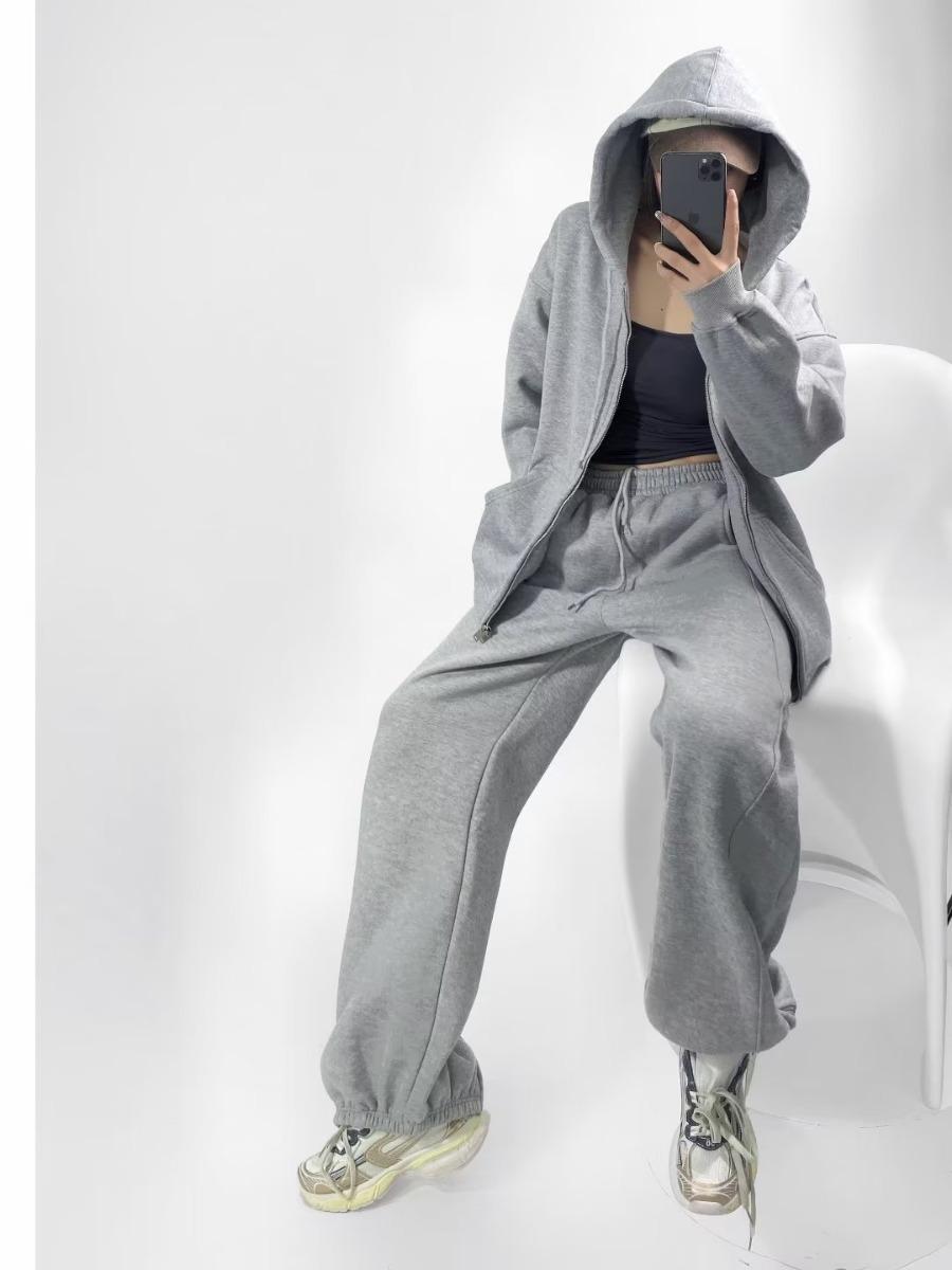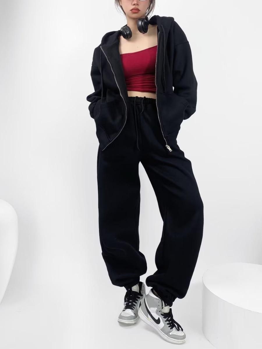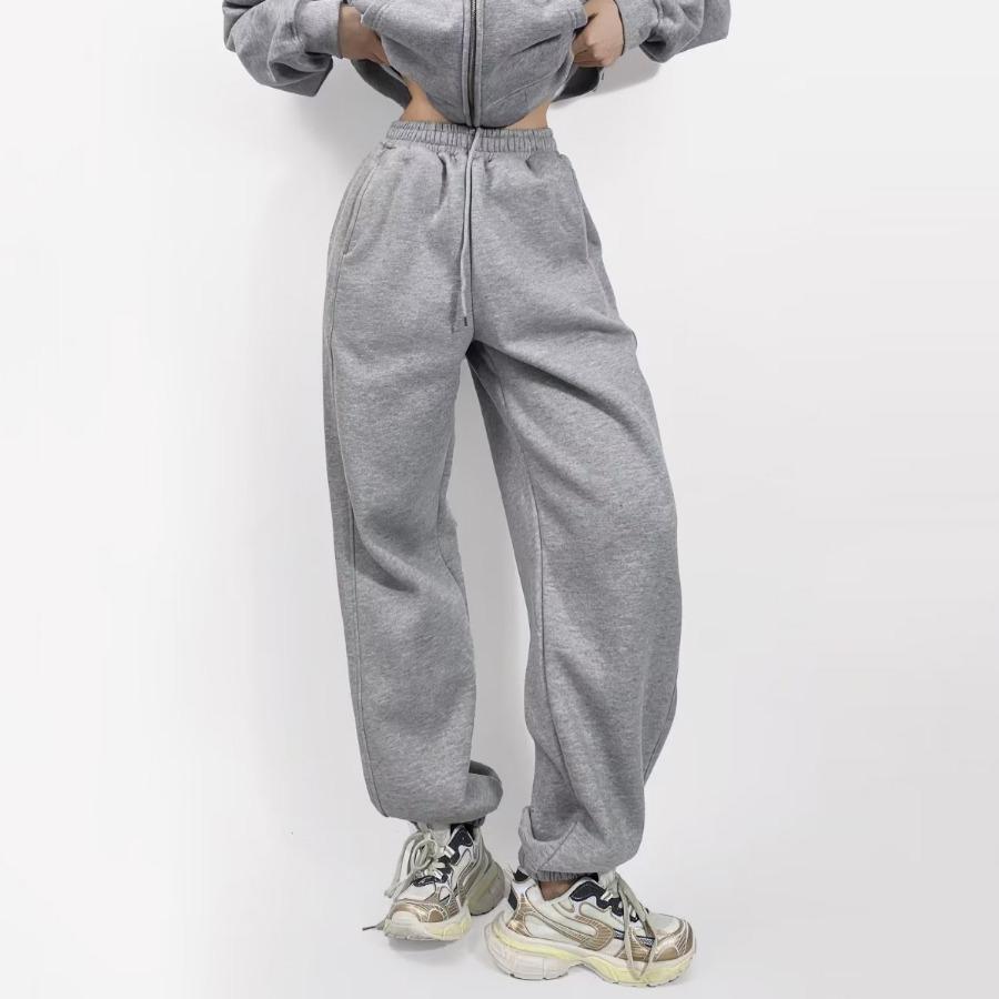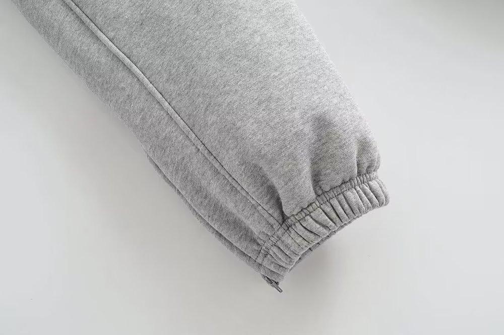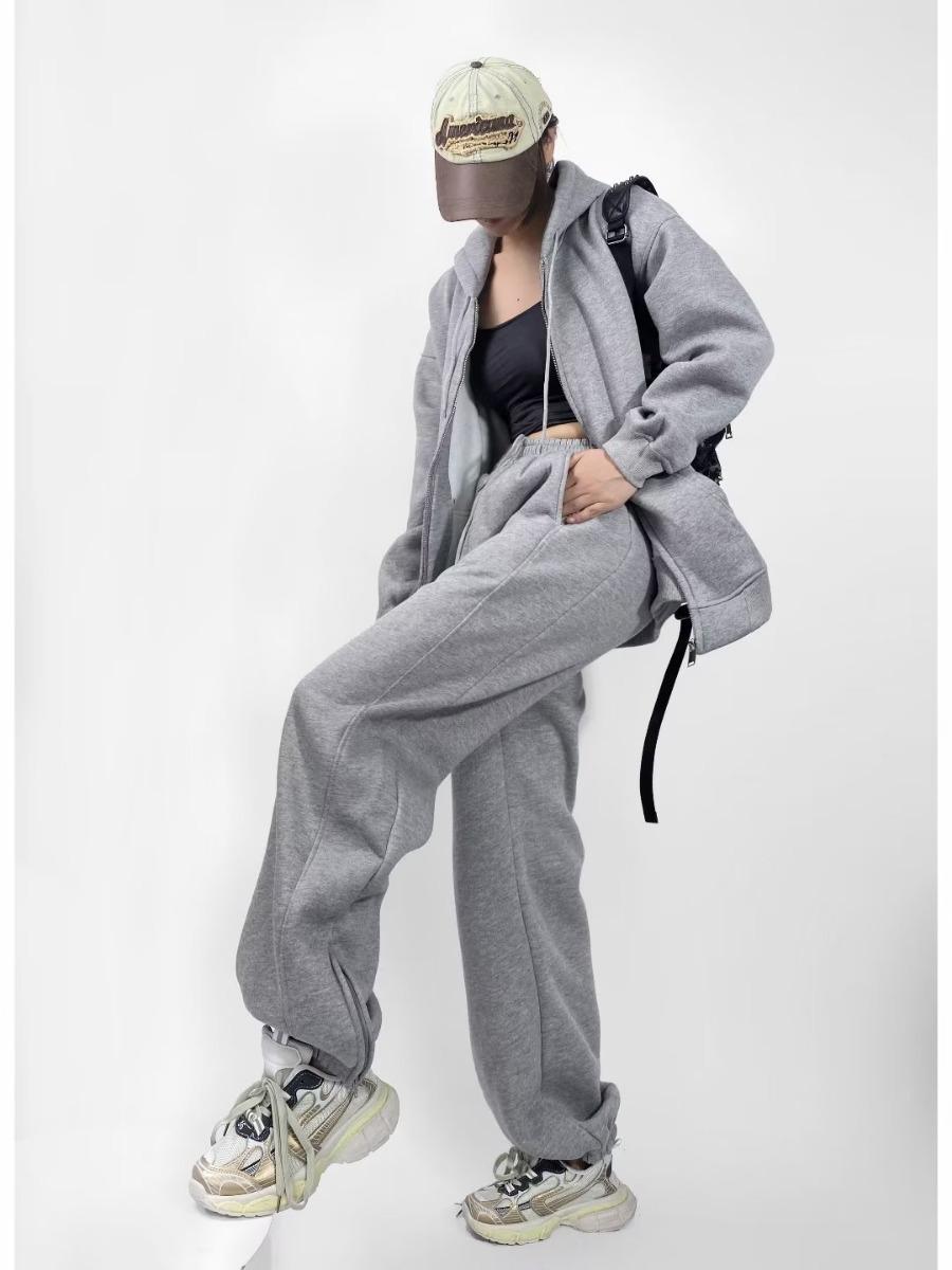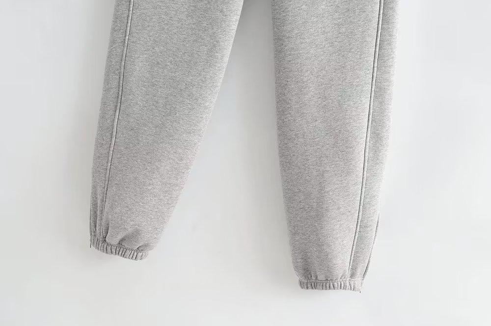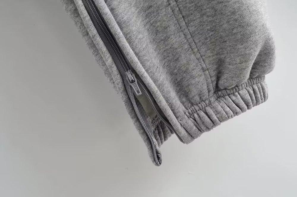 Pantalones casuales holgados con cremallera y tobillo anudados con forro polar de cintura alta estilo americano para mujer, otoño e invierno 2023, nuevos pantalones deportivos con tobillo anudado