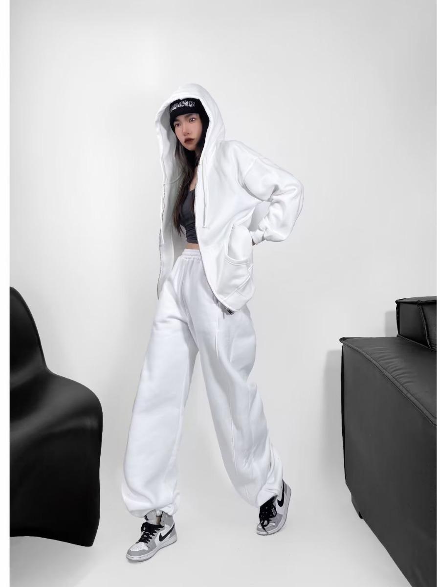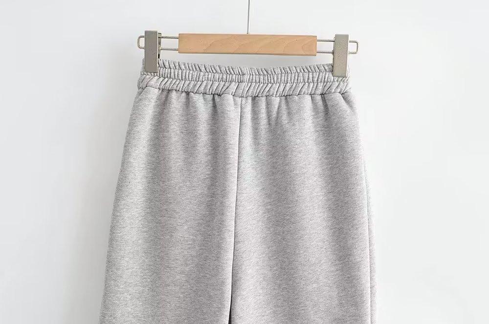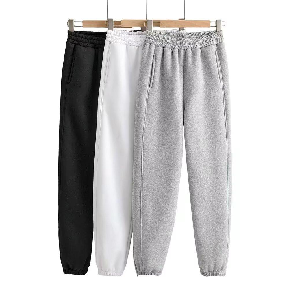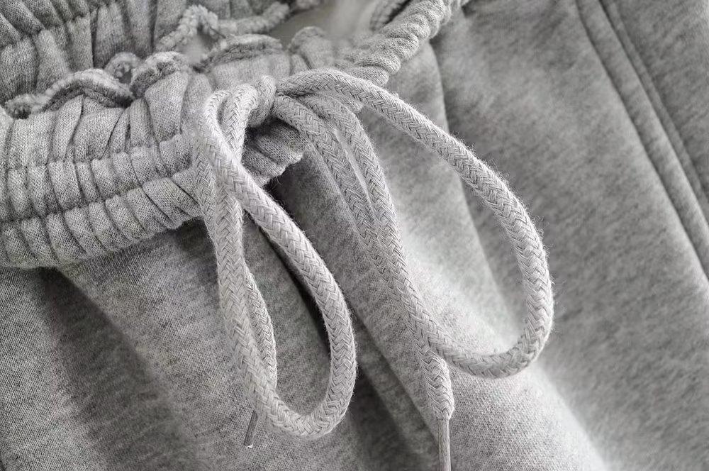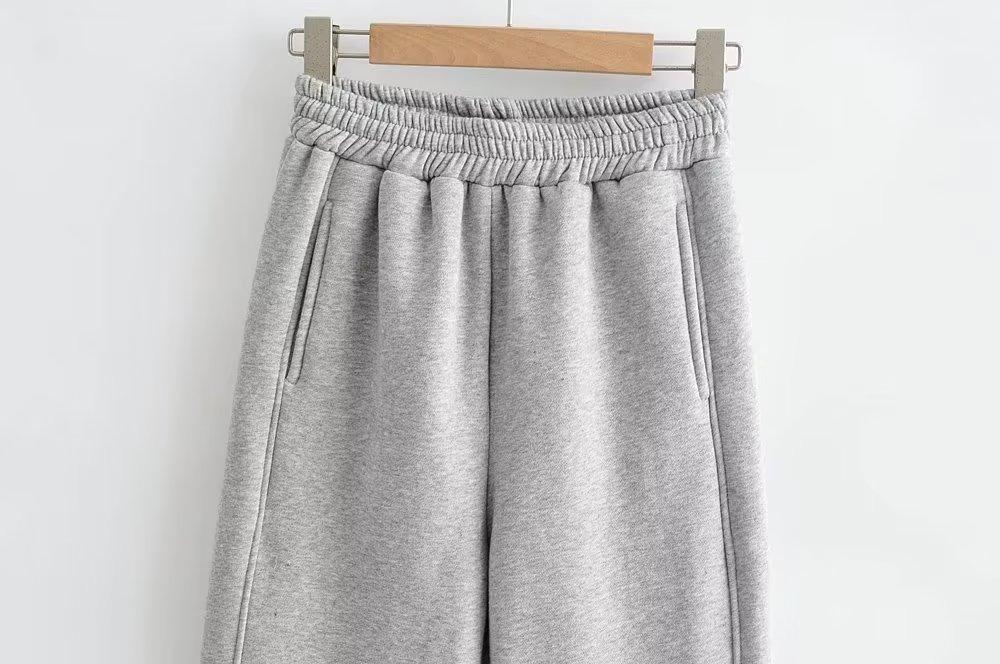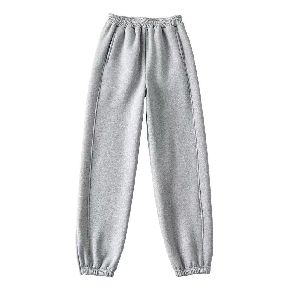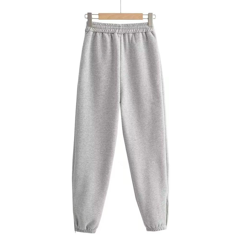 Pantalones casuales holgados con cremallera y tobillo anudados con forro polar de cintura alta estilo americano para mujer, otoño e invierno 2023, nuevos pantalones deportivos con tobillo anudado