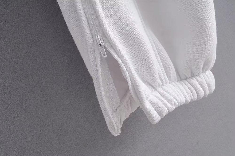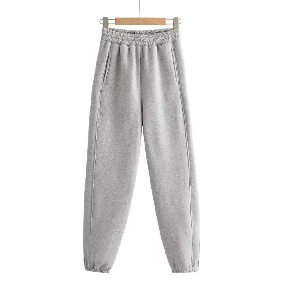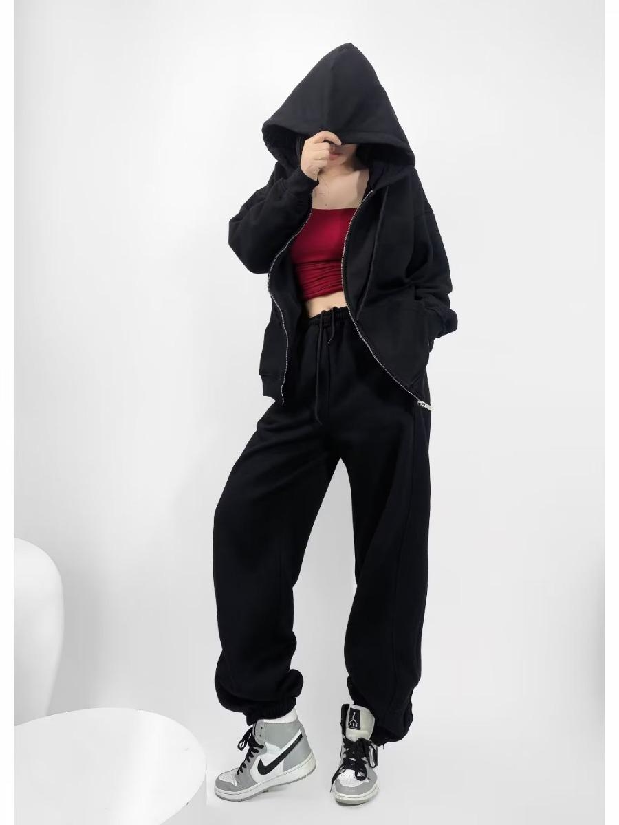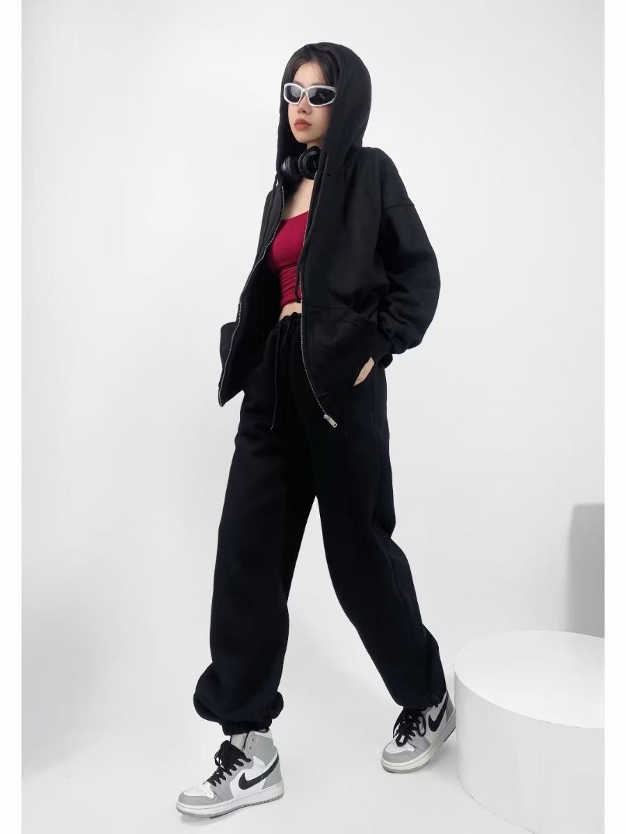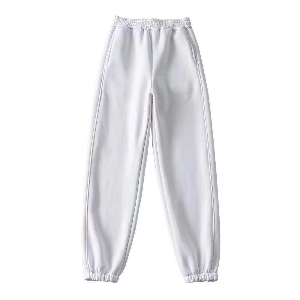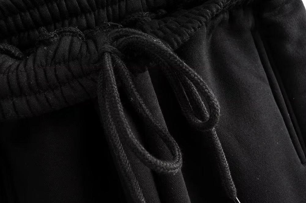 Pantalones casuales holgados con cremallera y tobillo anudados con forro polar de cintura alta estilo americano para mujer, otoño e invierno 2023, nuevos pantalones deportivos con tobillo anudado