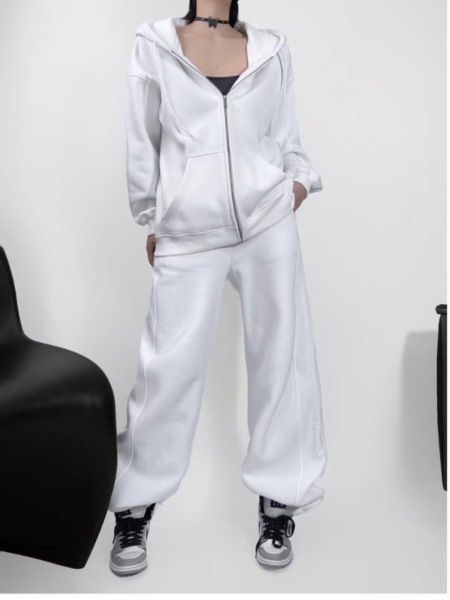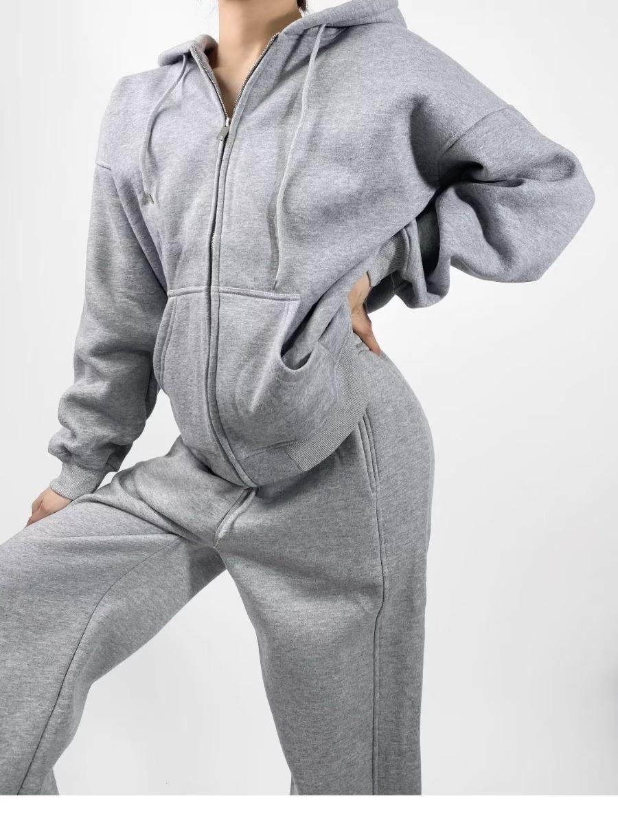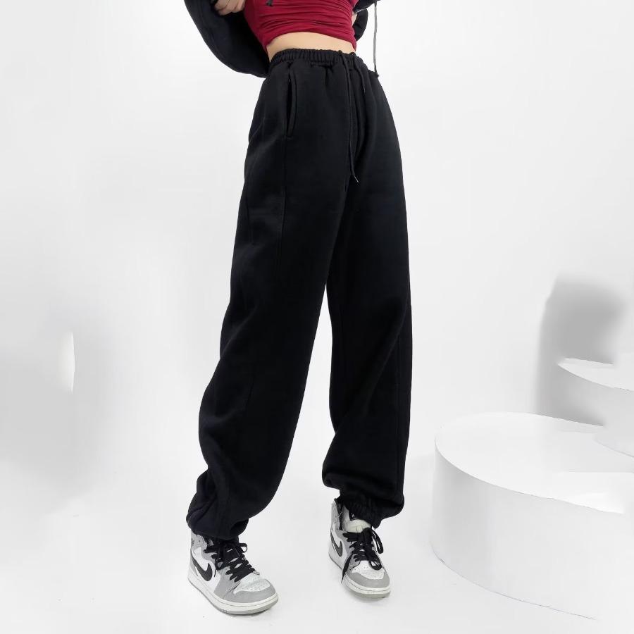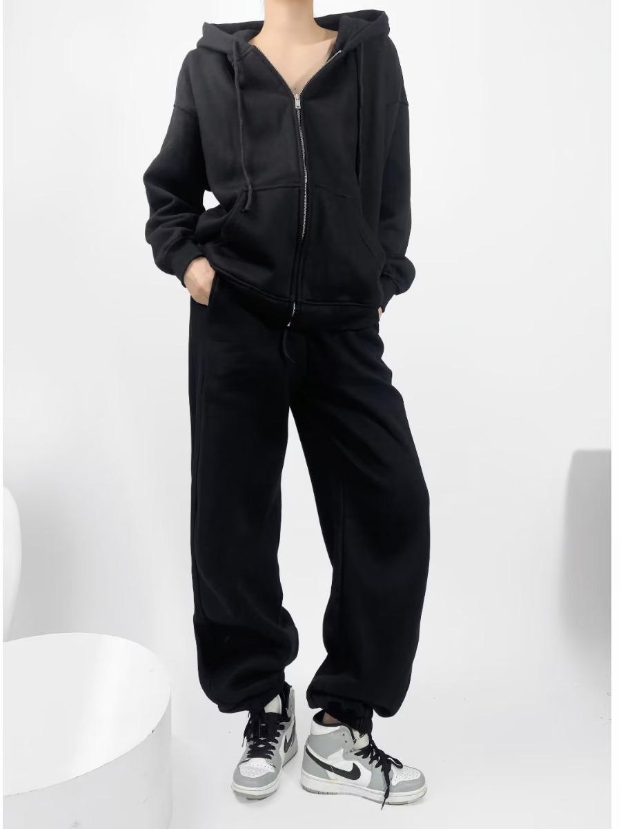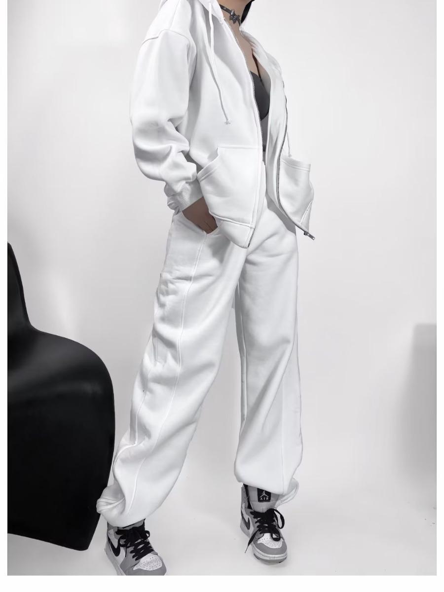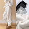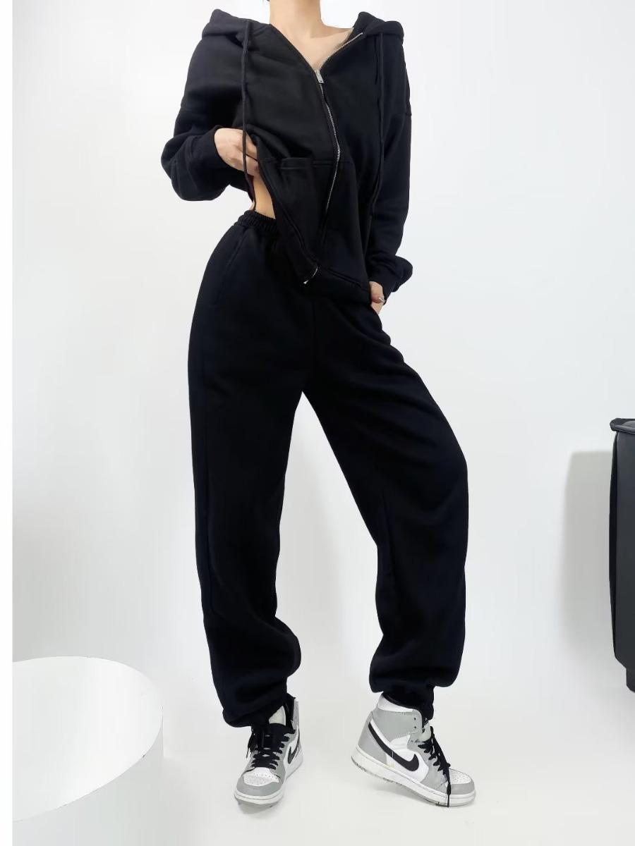 Pantalones casuales holgados con cremallera y tobillo anudados con forro polar de cintura alta estilo americano para mujer, otoño e invierno 2023, nuevos pantalones deportivos con tobillo anudado