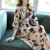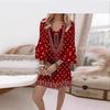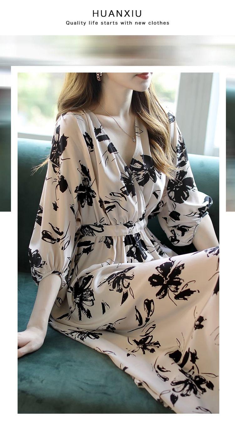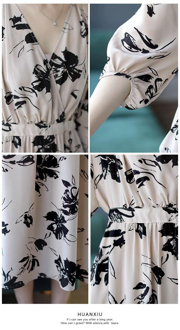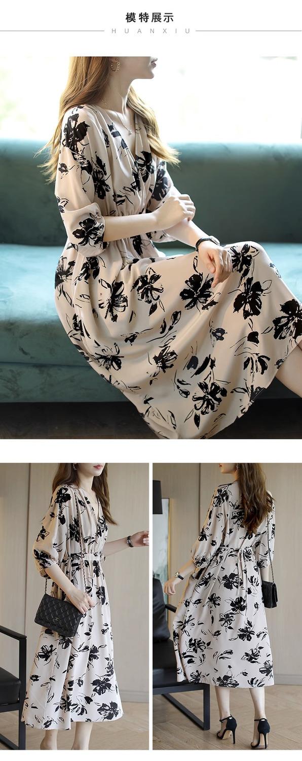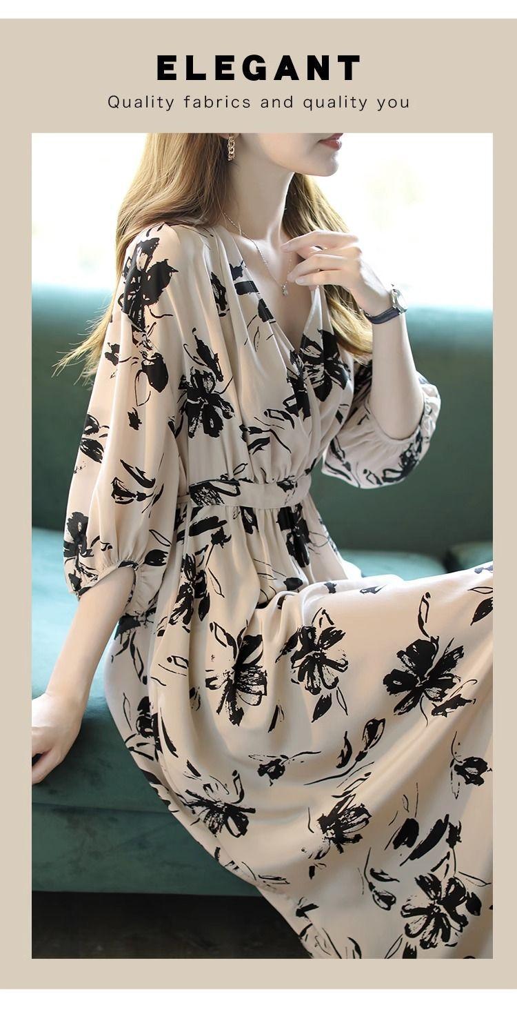 Nuevo vestido de mujer de primavera y verano estilo coreano con cuello en V estampado cintura ajustada temperamento adelgazante vestido de longitud media