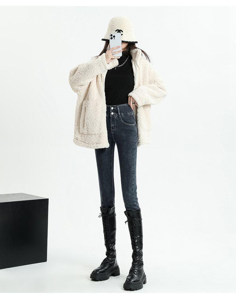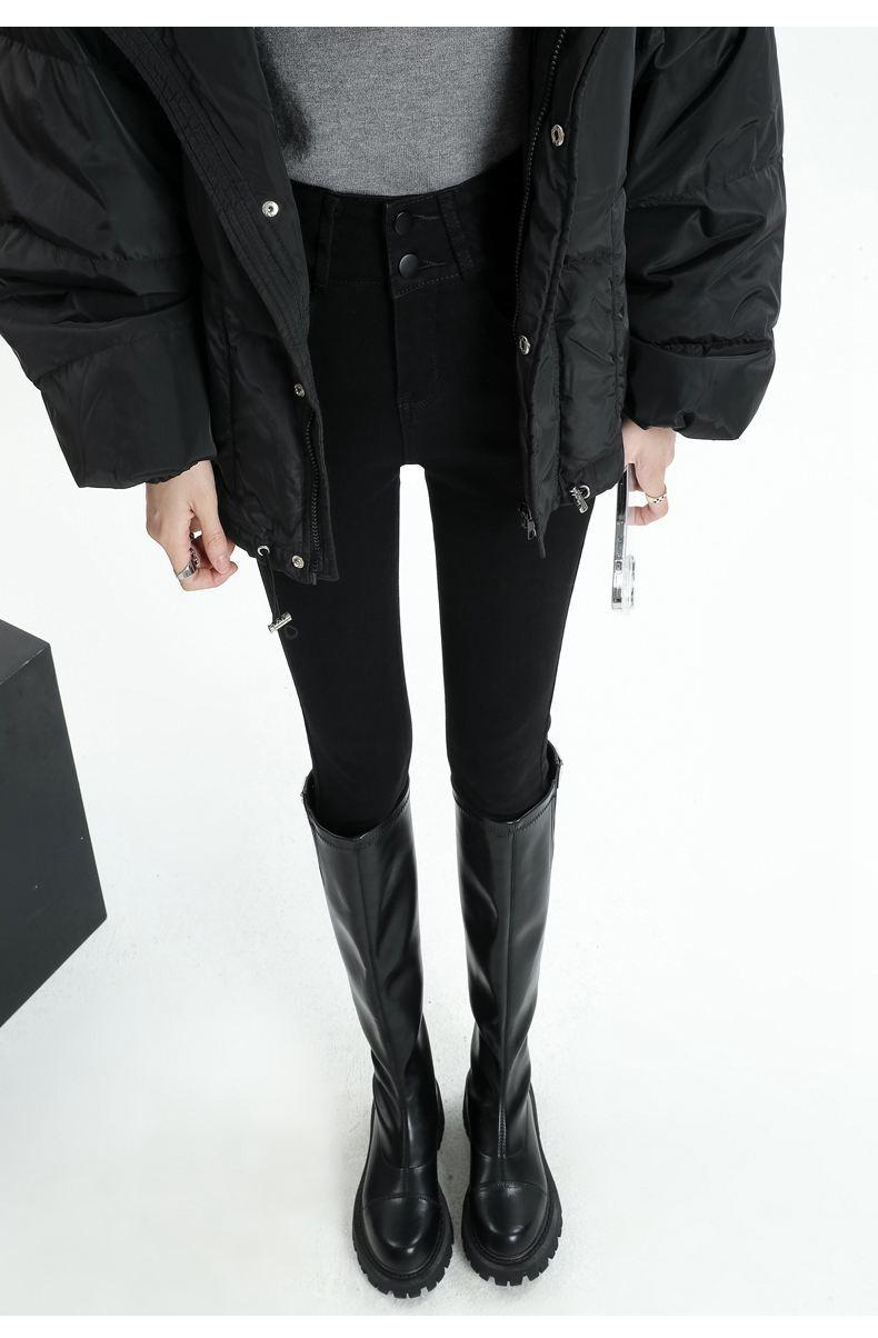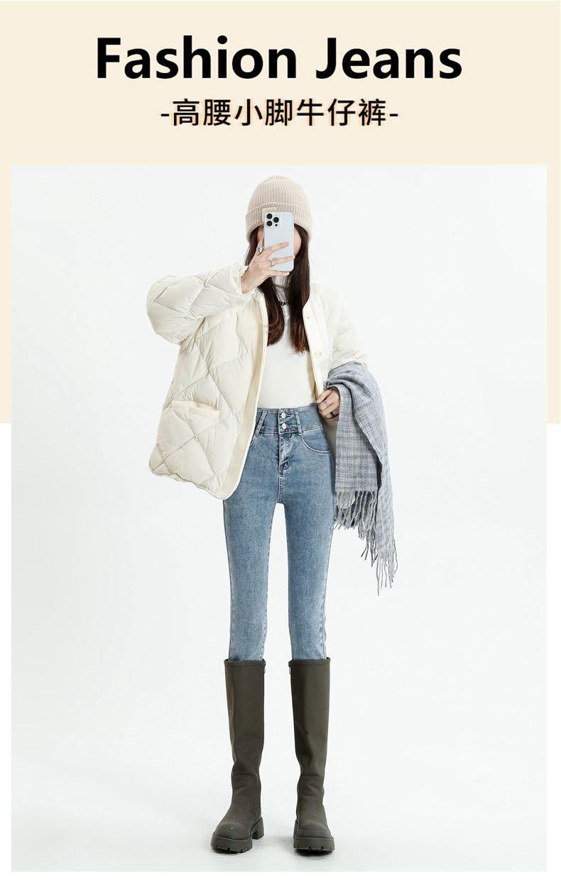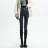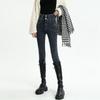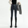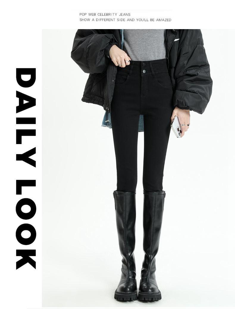 Pantalones vaqueros azul grisáceos para mujer, otoño e invierno, cintura alta, doble hebilla, corte entallado, nueve puntos elásticos, ajustados, combinables con todo.