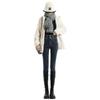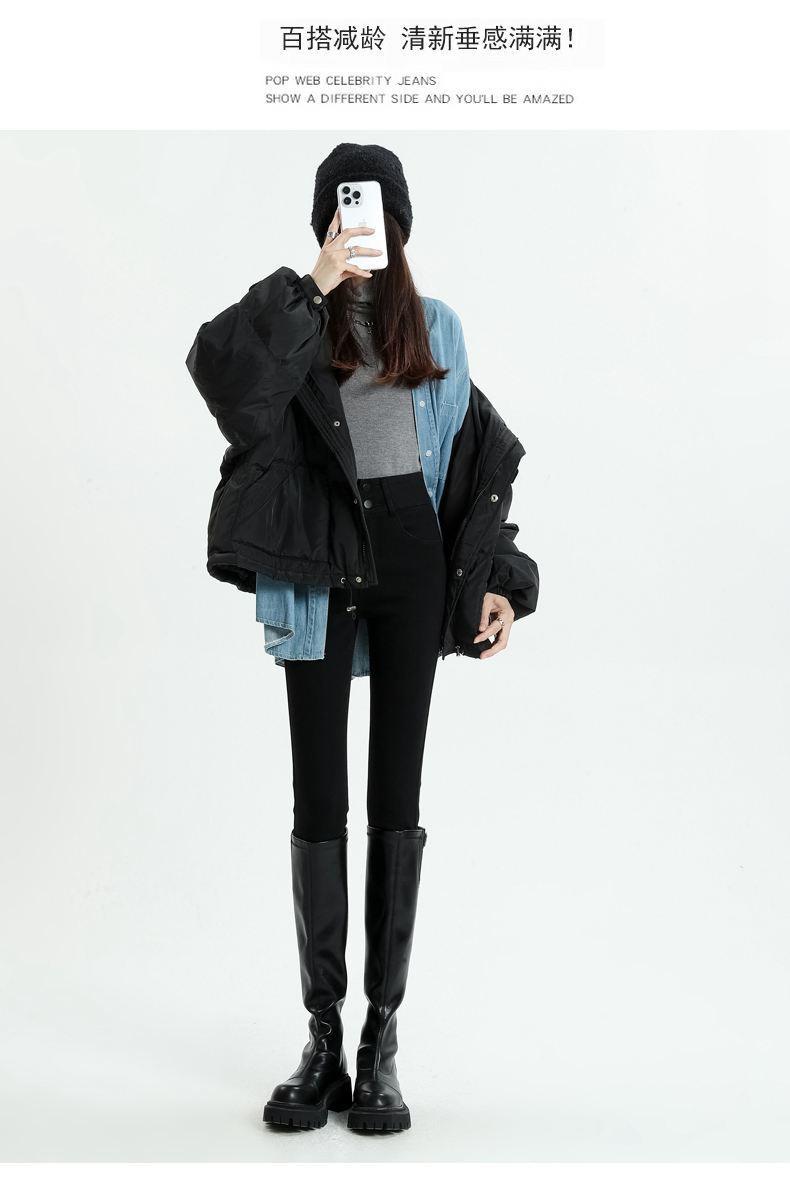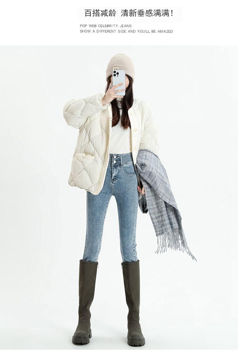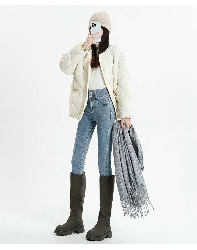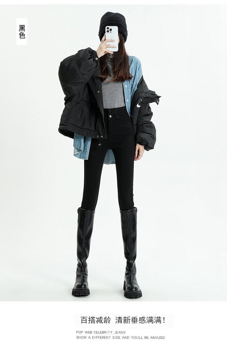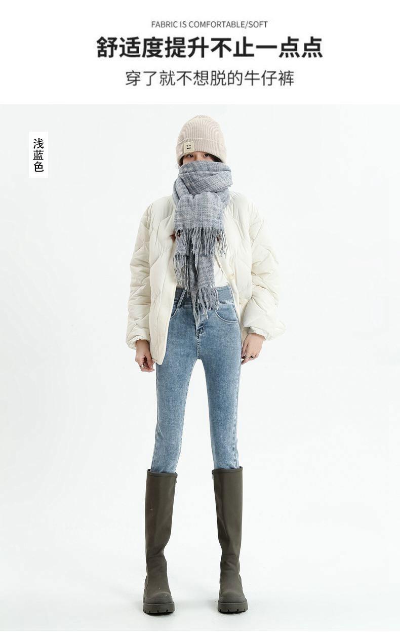 Pantalones vaqueros azul grisáceos para mujer, otoño e invierno, cintura alta, doble hebilla, corte entallado, nueve puntos elásticos, ajustados, combinables con todo.