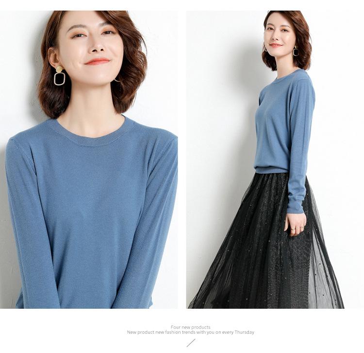 Suéter al por mayor versión coreana para mujer, jersey de cuello redondo corto holgado Joker básico, suéter delgado de otoño e invierno, transfronterizo