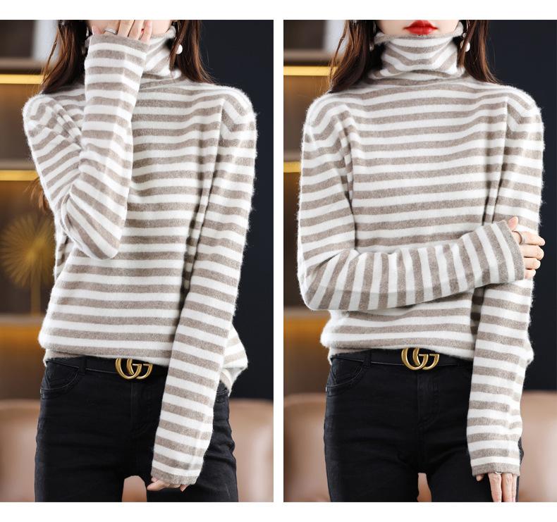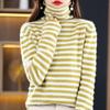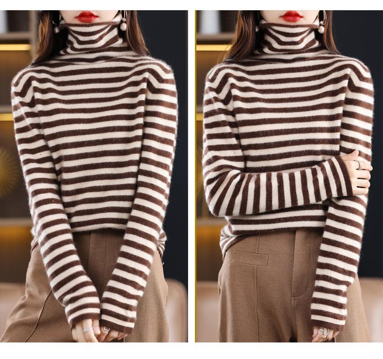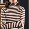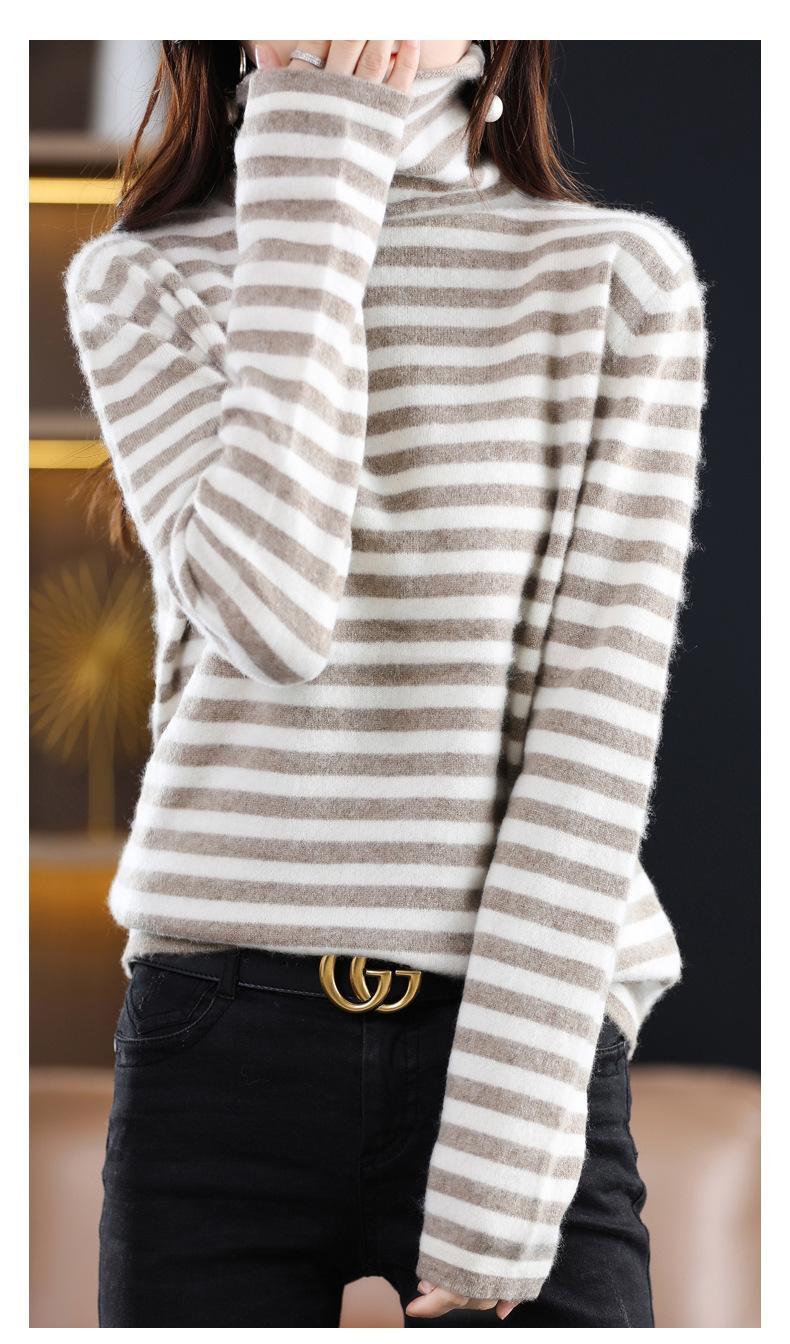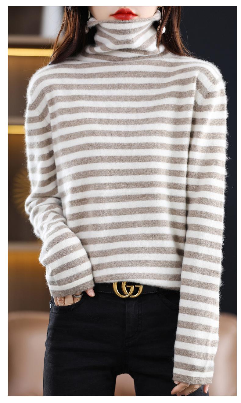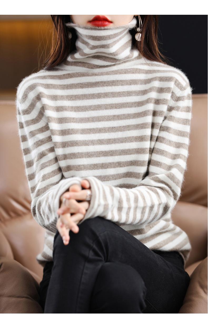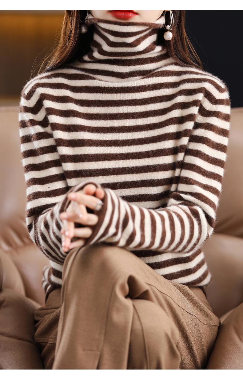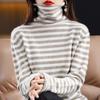 Cárdigan de Punto de Cachemira para Mujer con Cuello de Pila a Rayas, Suéter Holgado y Versátil de Manga Larga para Otoño e Invierno 2025