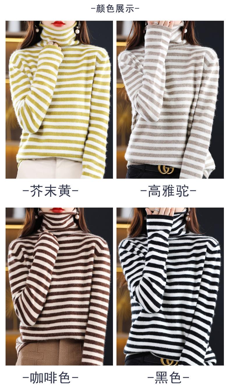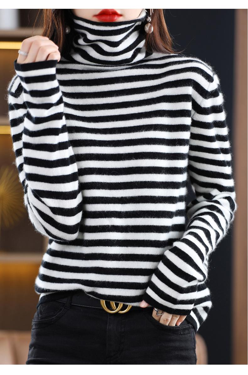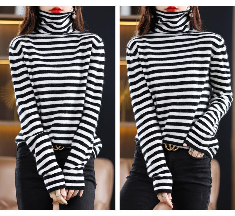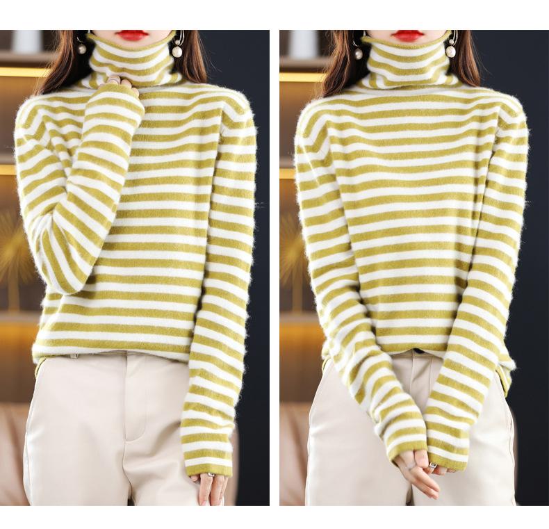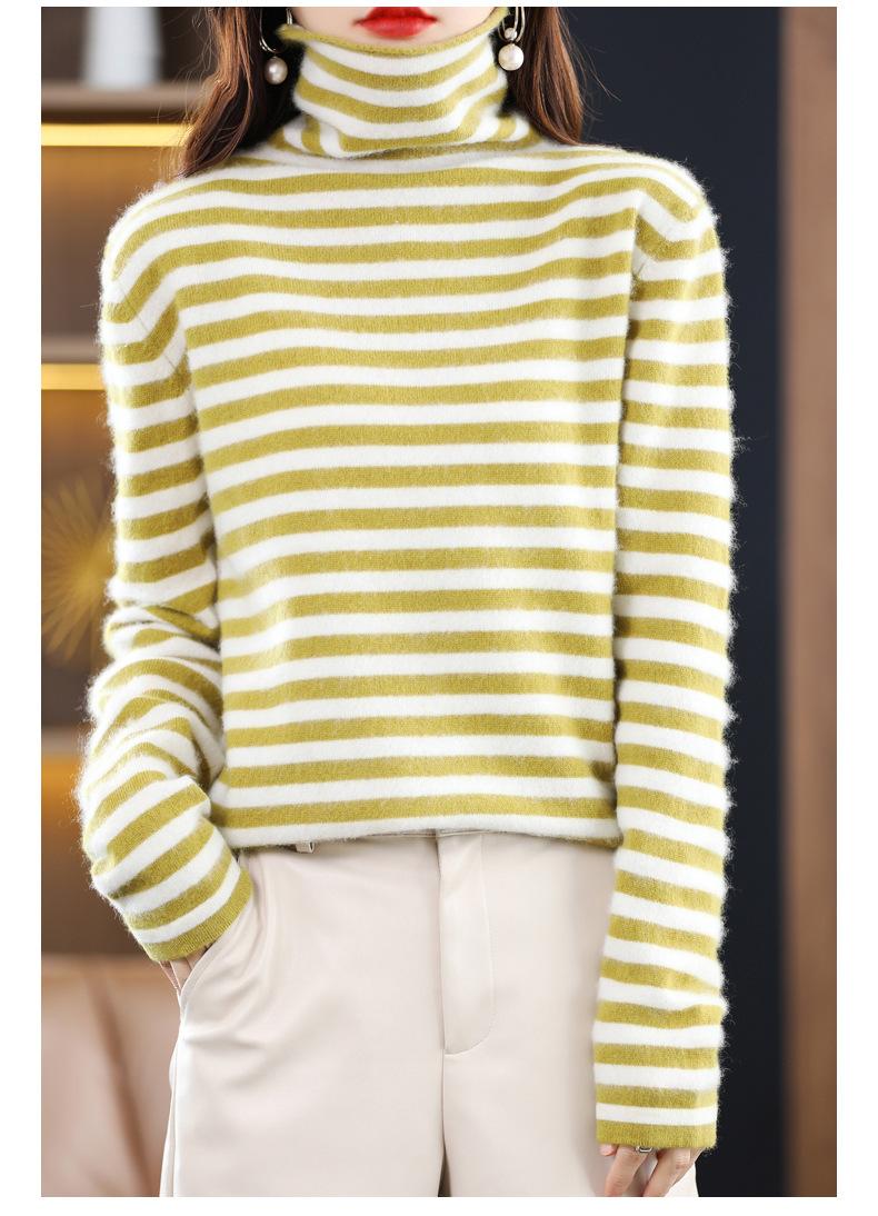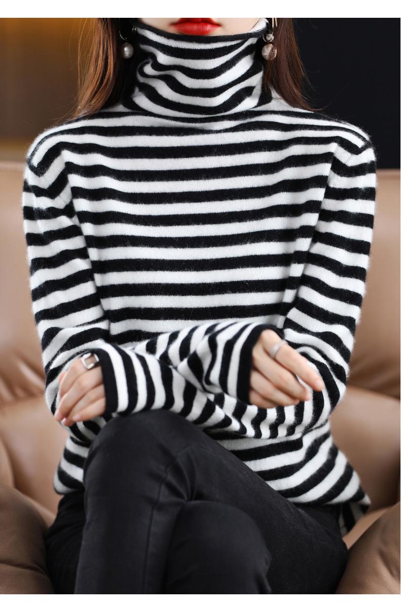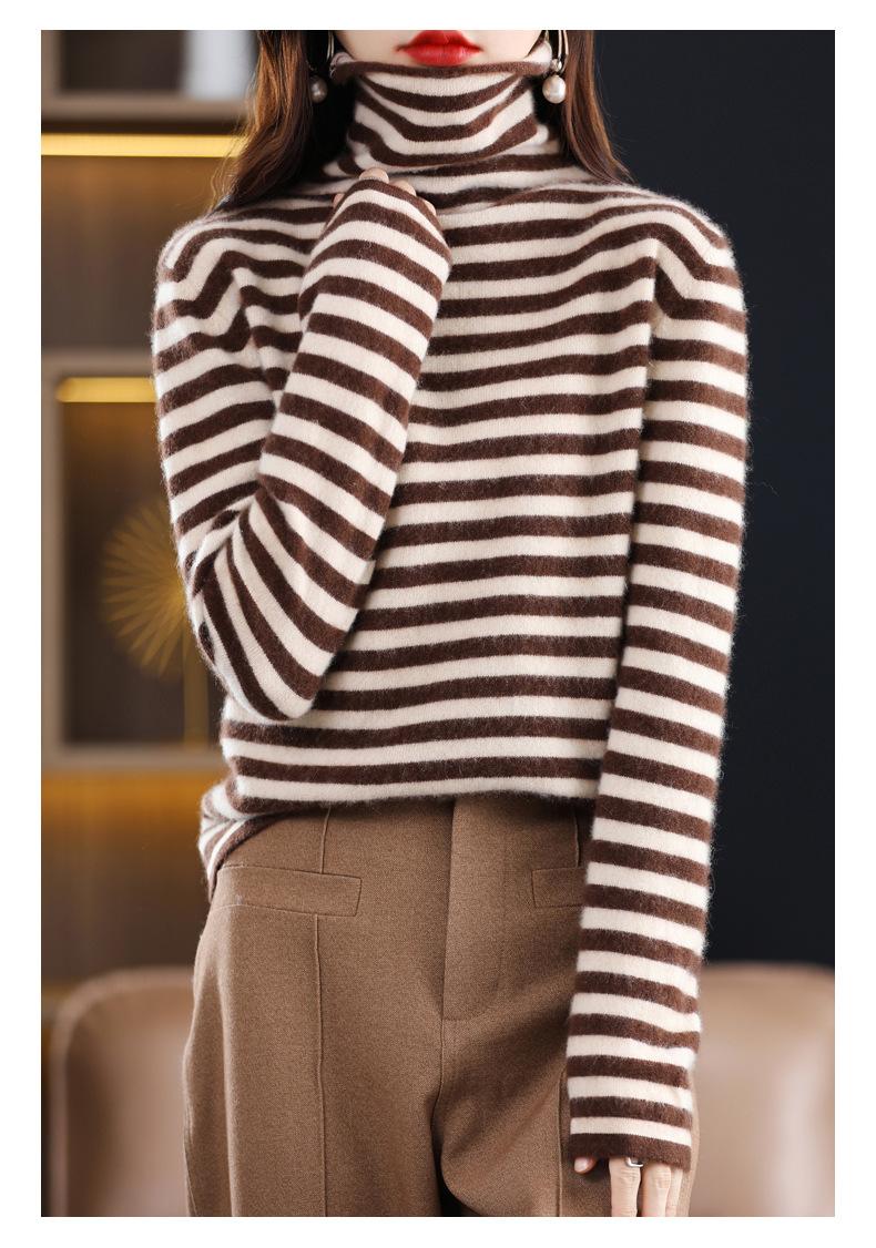 Cárdigan de Punto de Cachemira para Mujer con Cuello de Pila a Rayas, Suéter Holgado y Versátil de Manga Larga para Otoño e Invierno 2025