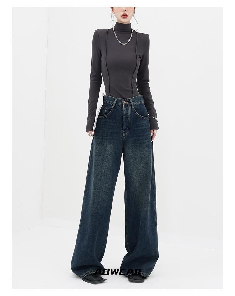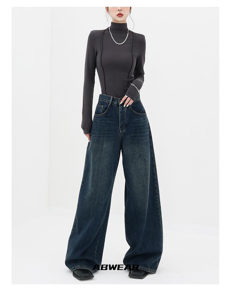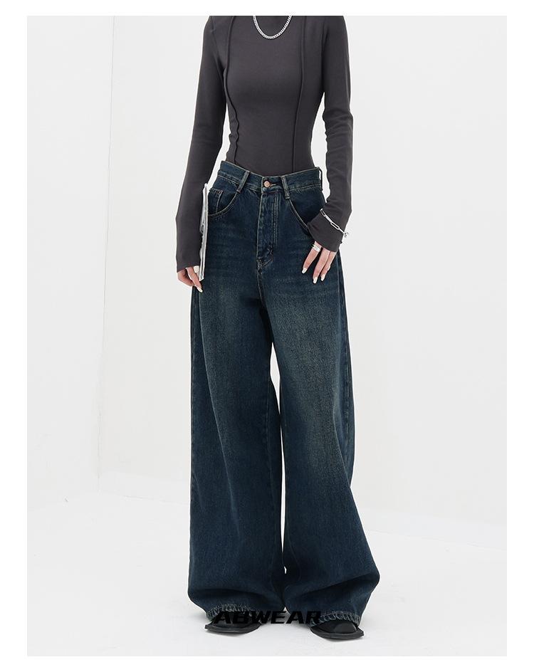 Primavera y Otoño Nuevos jeans de pierna ancha sueltos Adelgazantes para mujer niña gordita talla grande pantalones comercio exterior transfronterizo mayoreo