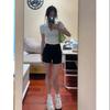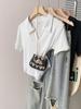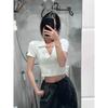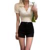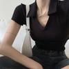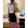 Camiseta blanca de cuello polo con hombros descubiertos para mujer, diseño de verano, estilo nicho, puro deseo, chica sexy, top corto irregular