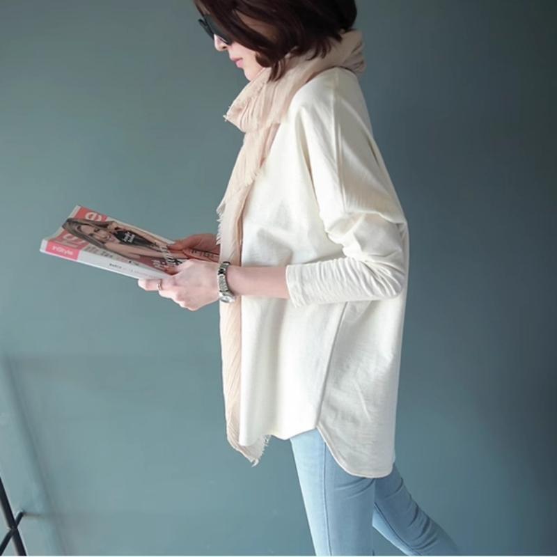 Ropa de Otoño Estilo Japonés 2025 Nueva Ropa de Mujer Camiseta Blanca Simple Versátil para Mujer Manga Larga Moda Camiseta Básica Top 2 Colores