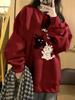 Moda Nacional rojo suéter holgado para mujer otoño e invierno forrado de polar cuello redondo holgado pequeño 2024 nuevo popular top con capucha