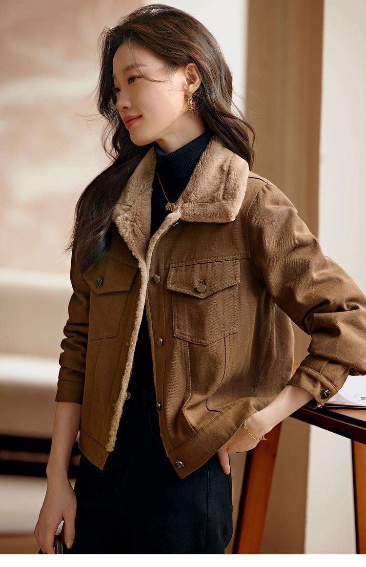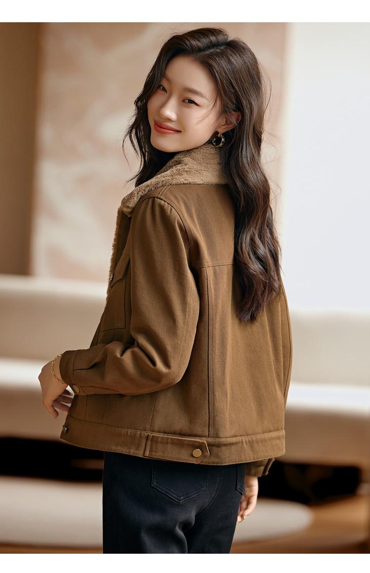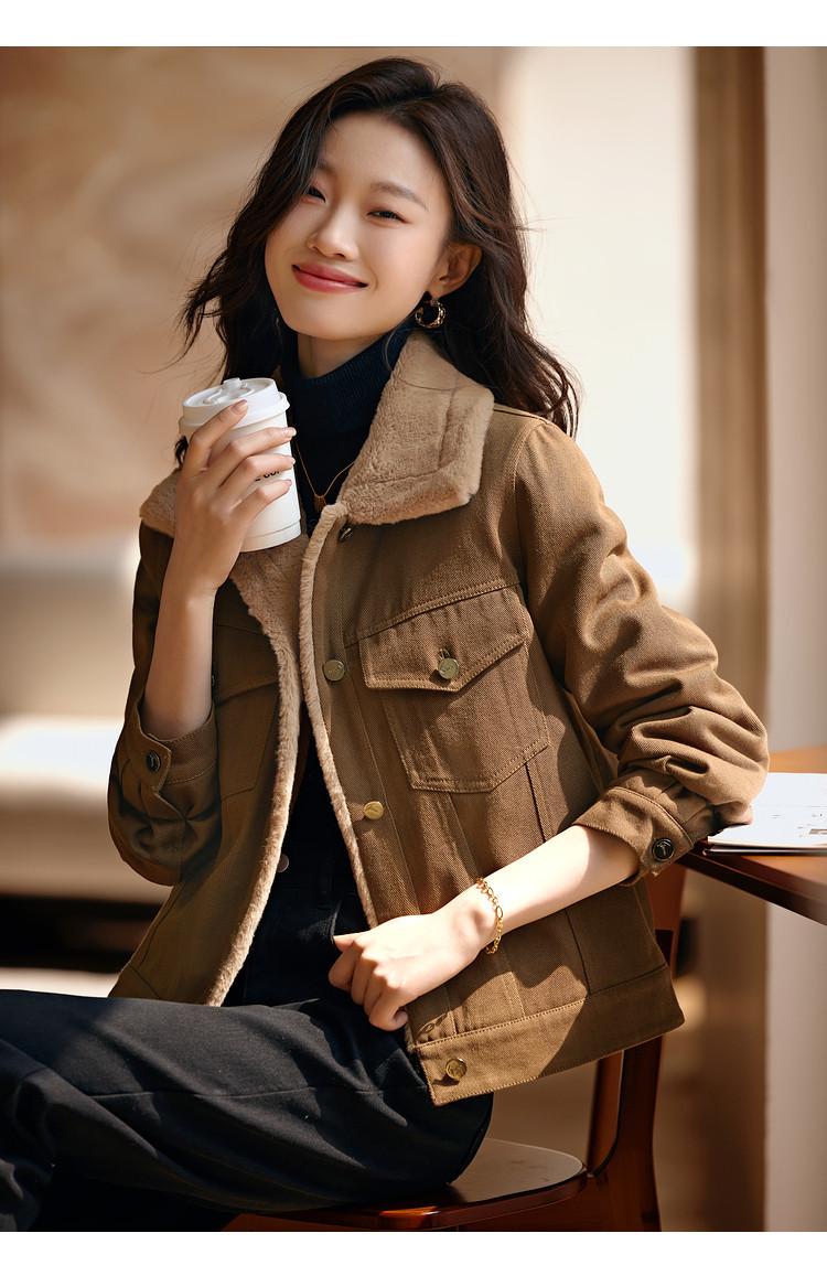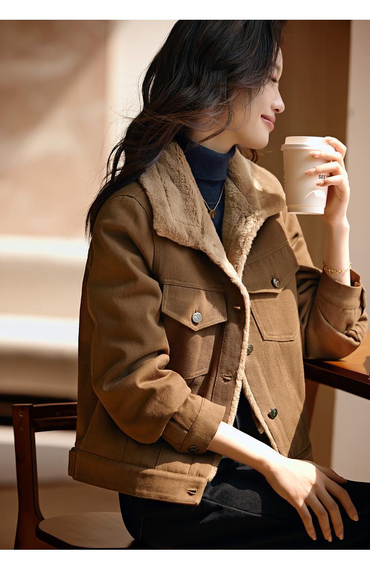 Chaqueta de mezclilla estilo ropa de trabajo con imitación de lana de cordero 2023 Invierno Nuevo Chaqueta corta engrosada