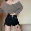 Pantalones cortos casuales con cordón para chica sexy, nuevos pantalones deportivos americanos de cintura alta de verano para mujer, pantalones holgados de tres puntos, pantalones cortos adelgazantes con abertura