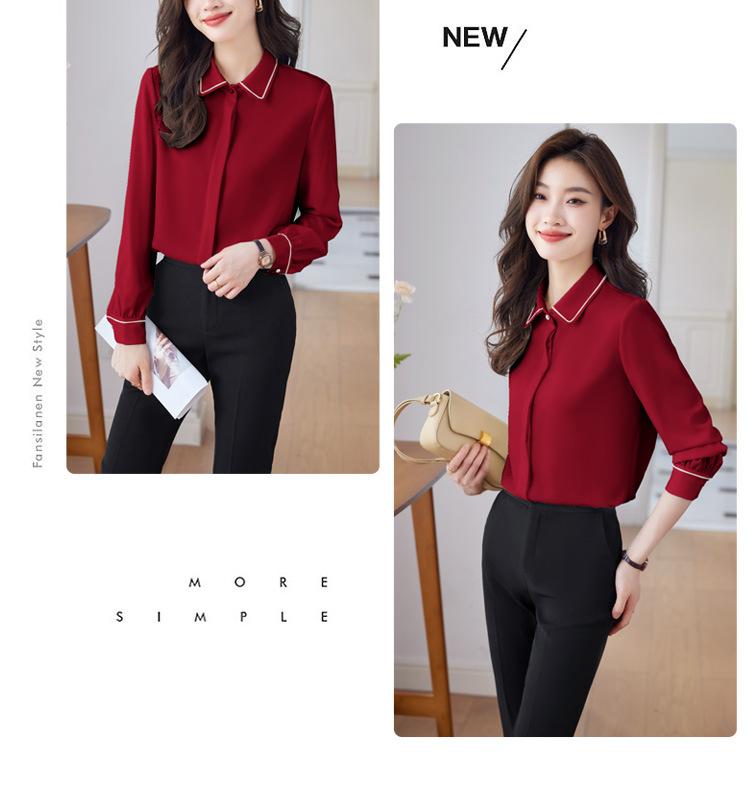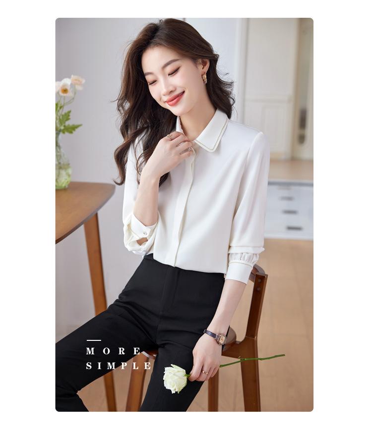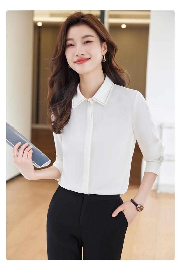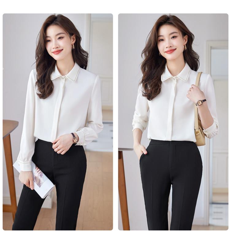 Camisa profesional de manga larga blanca para mujer, nueva camisa blanca de satén grueso para otoño 2023.