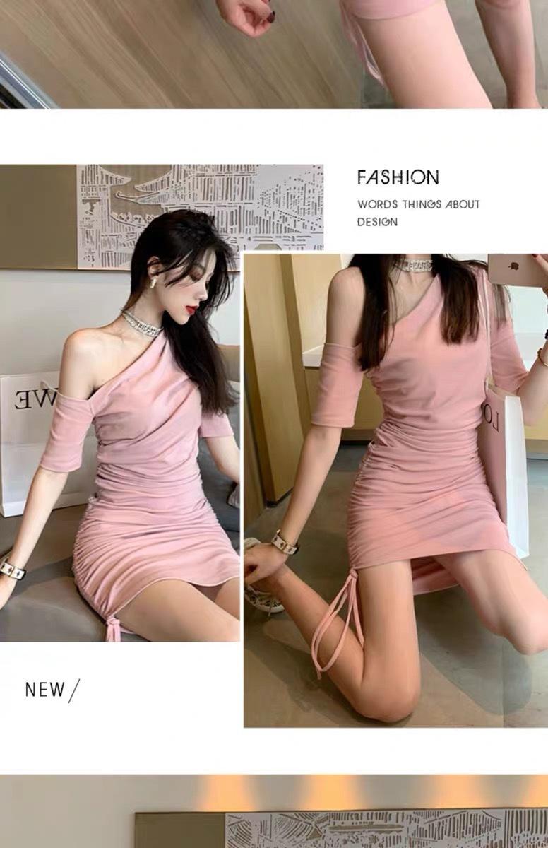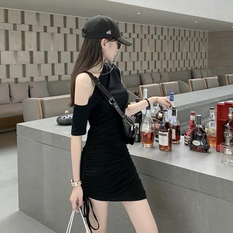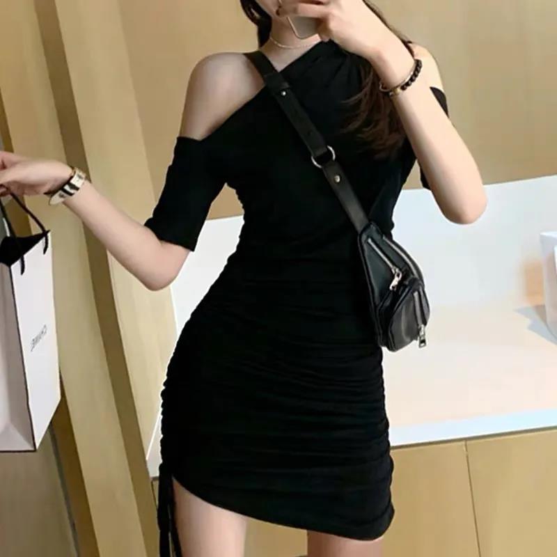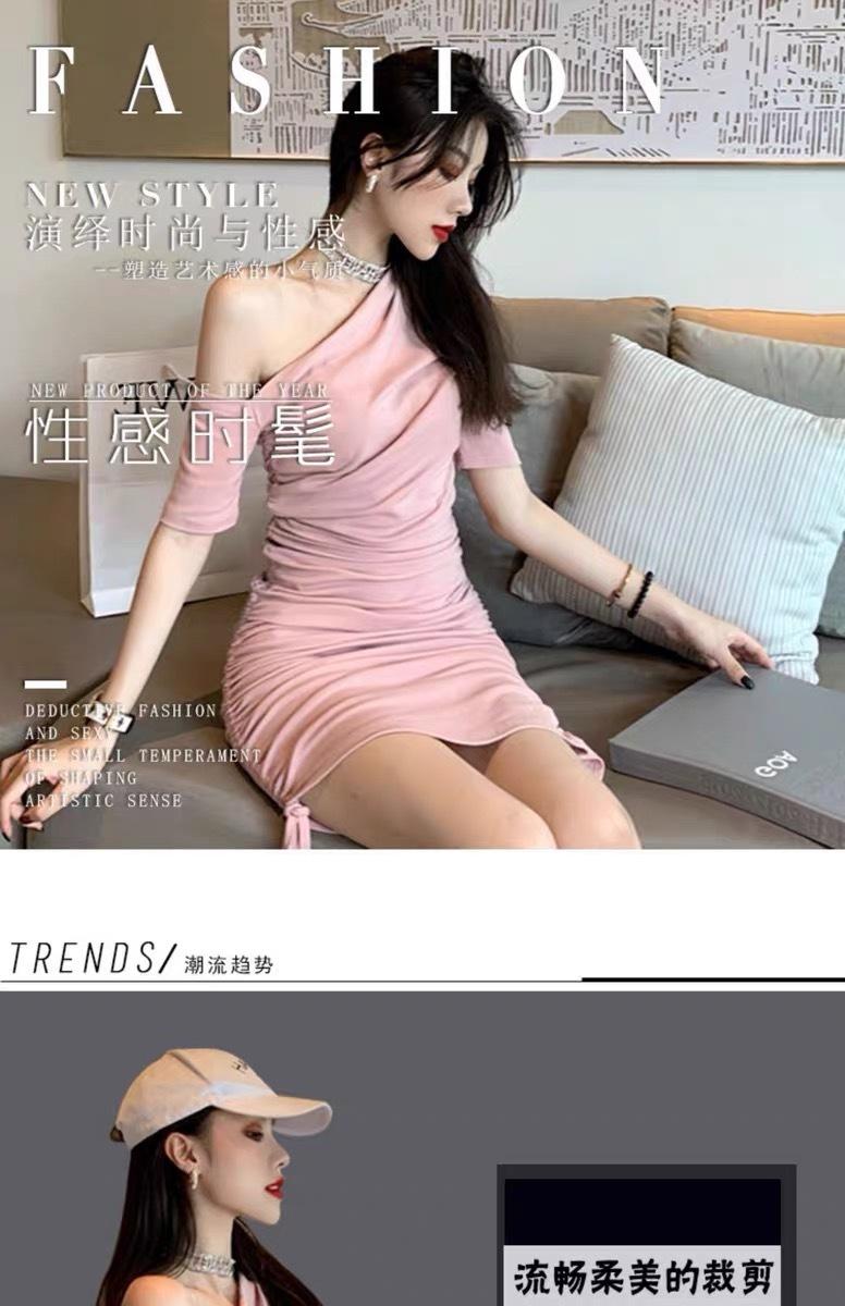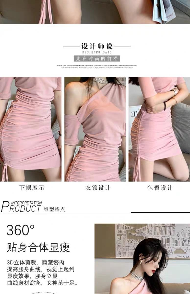 2022 Nuevo Vestido Sexy con Hombros Descubiertos para Mujer Vestido Elegante Femenino Ajustado a la Cadera con Cuello Oblicuo para Mujer Verano