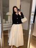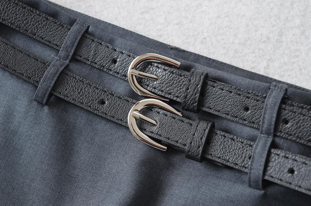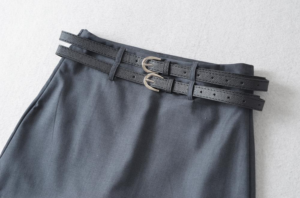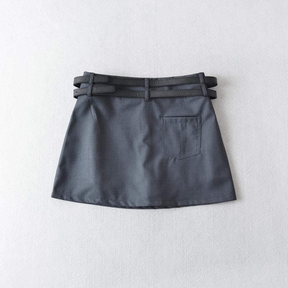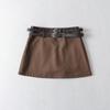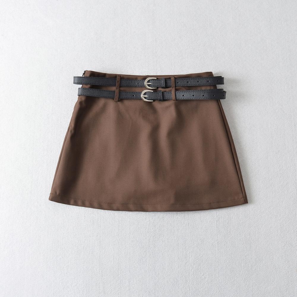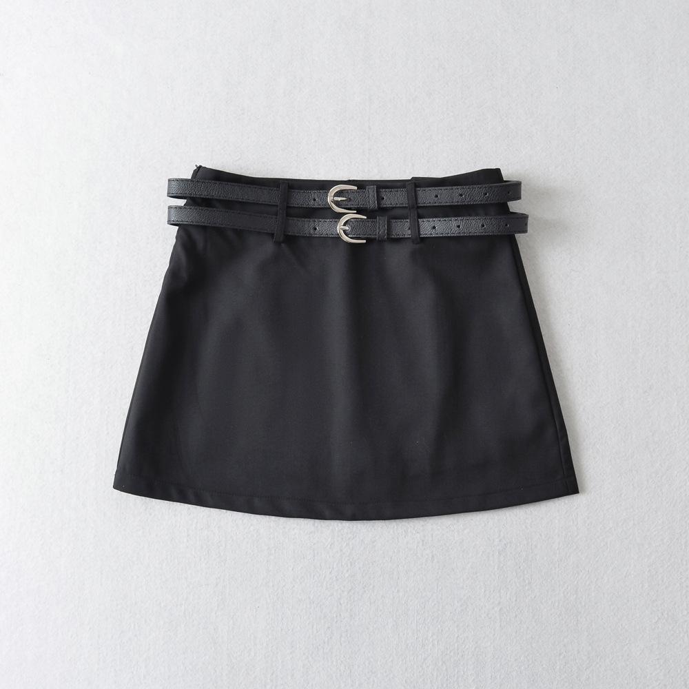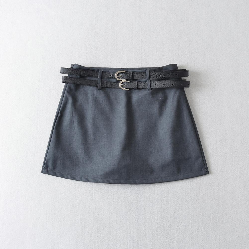Y1611-23 Falda estilo coreano de cintura alta, piernas largas y superficie limpia con cinturón doble, línea A, con forro (cintura libre