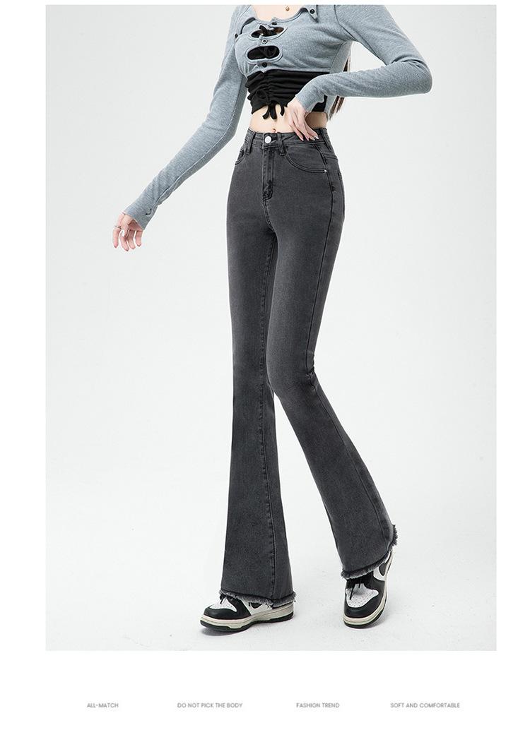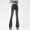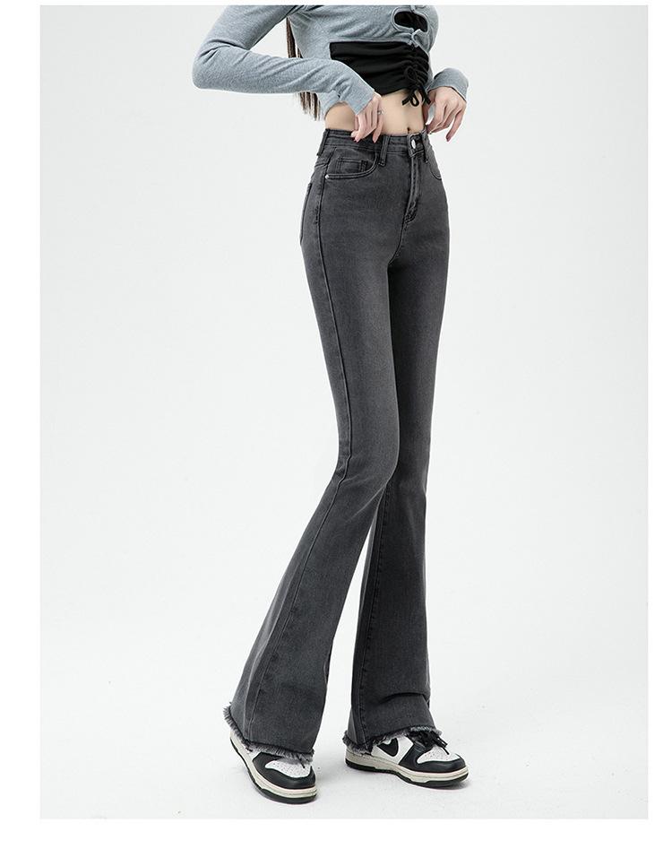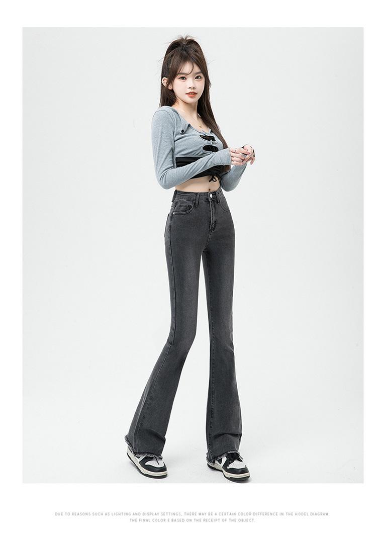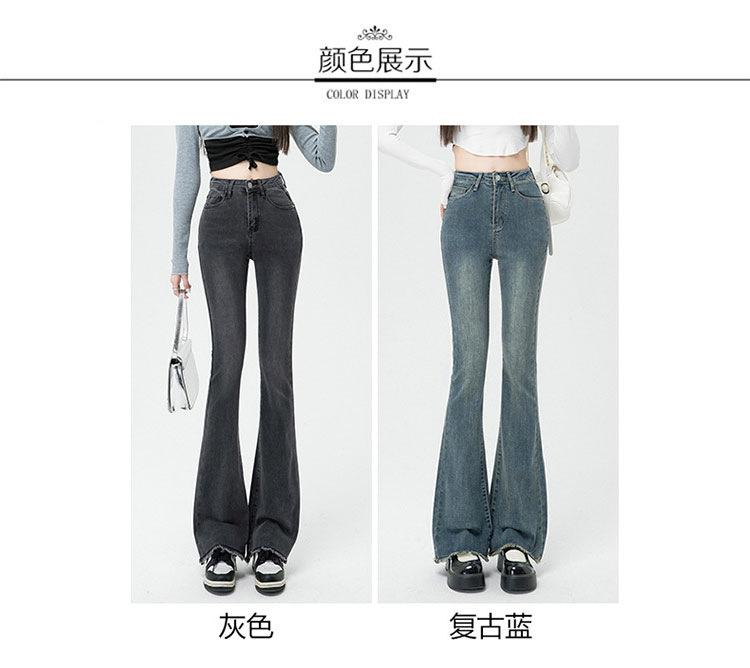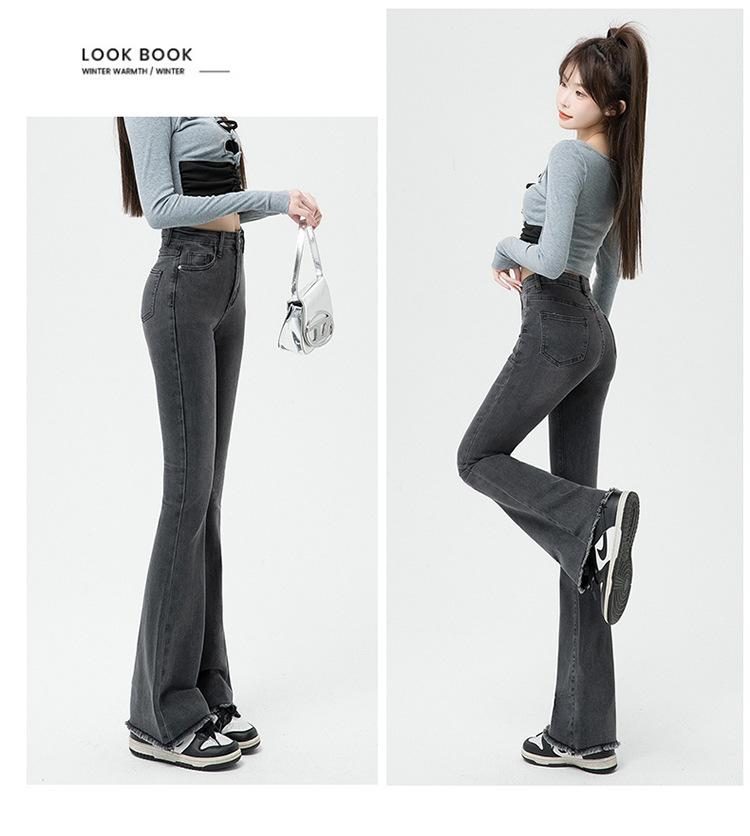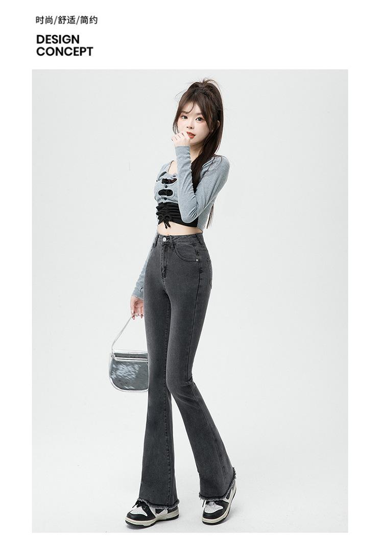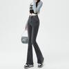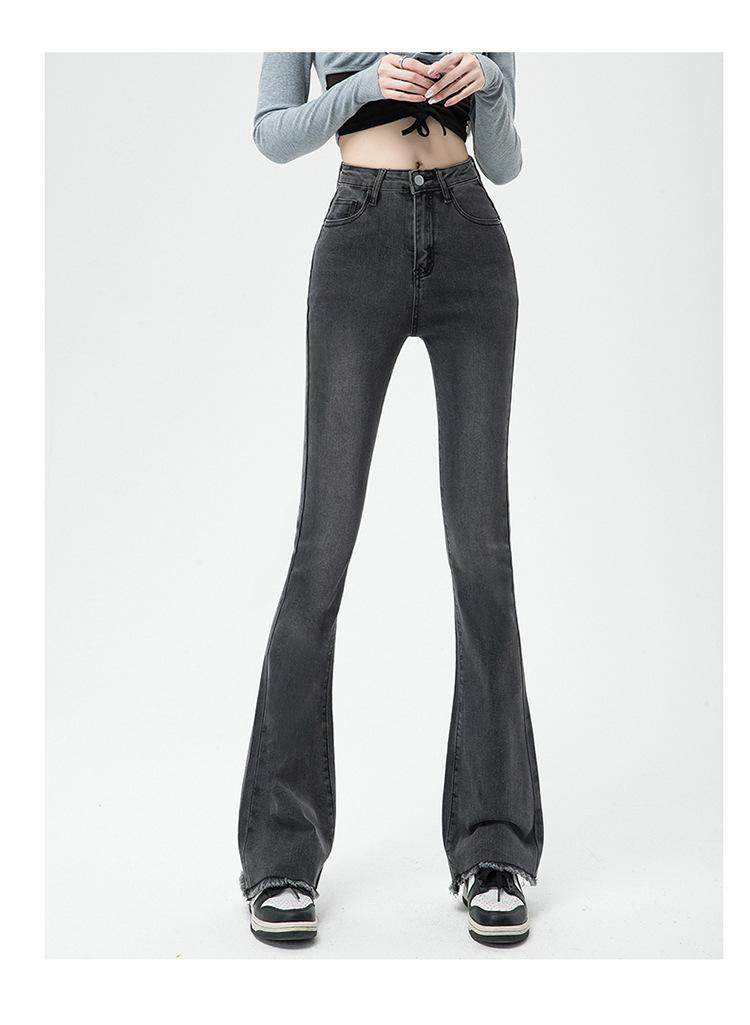 Pantalones vaqueros ajustados deshilachados de estilo americano para mujer, diseño de cintura alta, ajustados, elásticos, acampanados, color negro herradura, pantalones largos grises