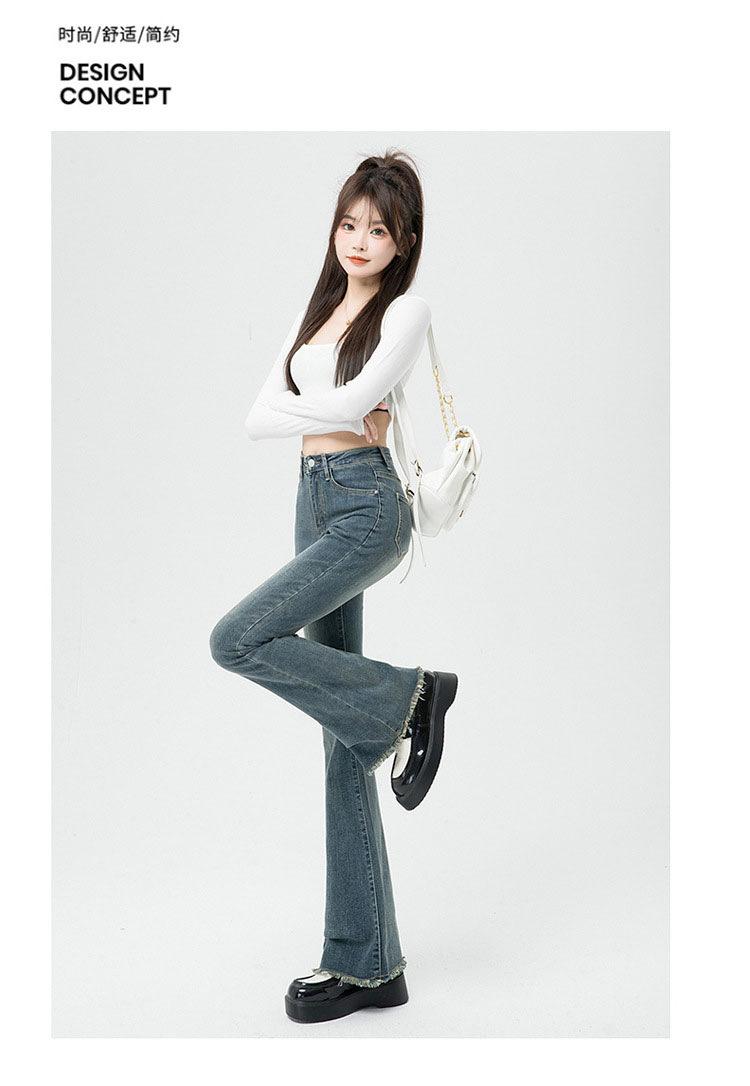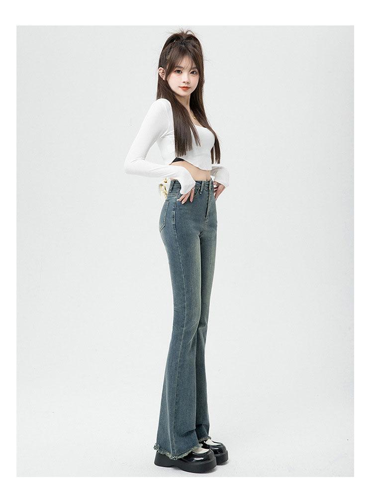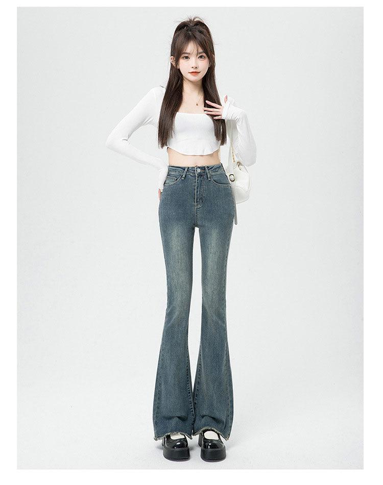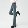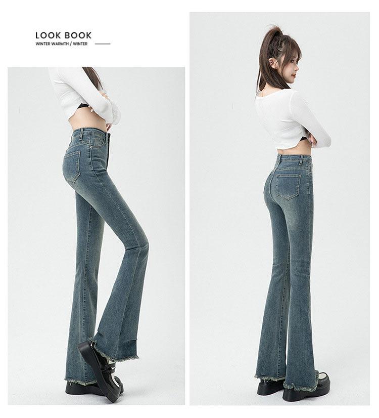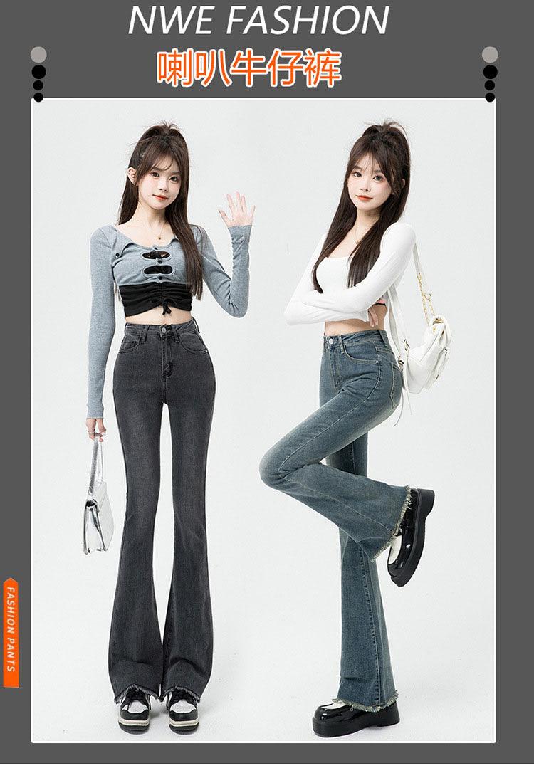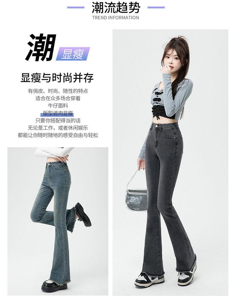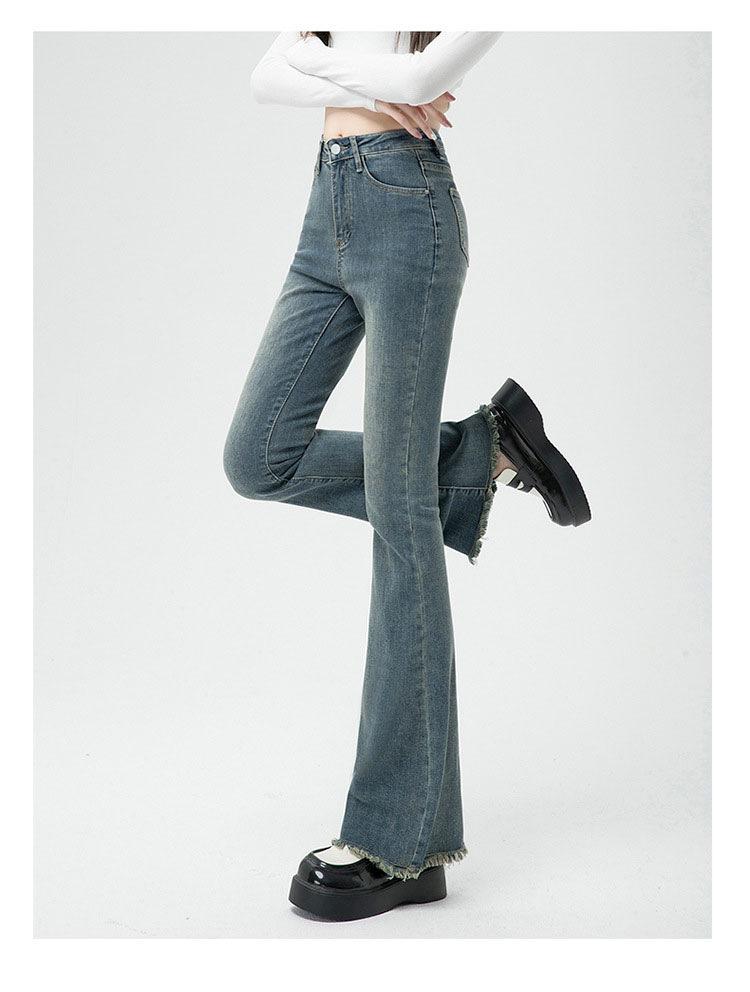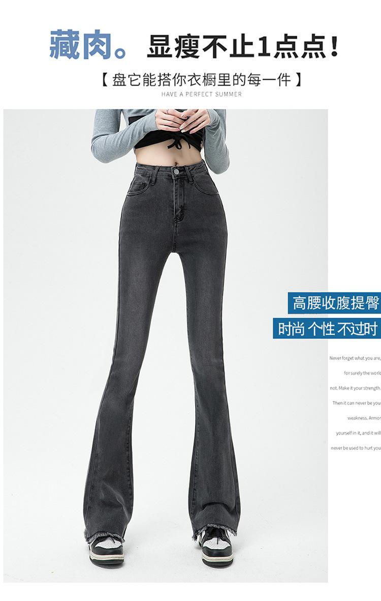 Pantalones vaqueros ajustados deshilachados de estilo americano para mujer, diseño de cintura alta, ajustados, elásticos, acampanados, color negro herradura, pantalones largos grises