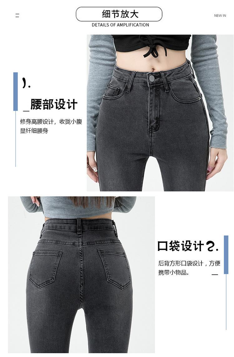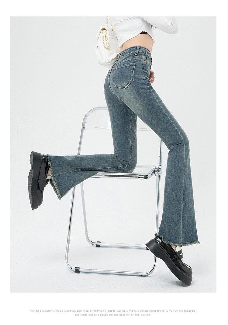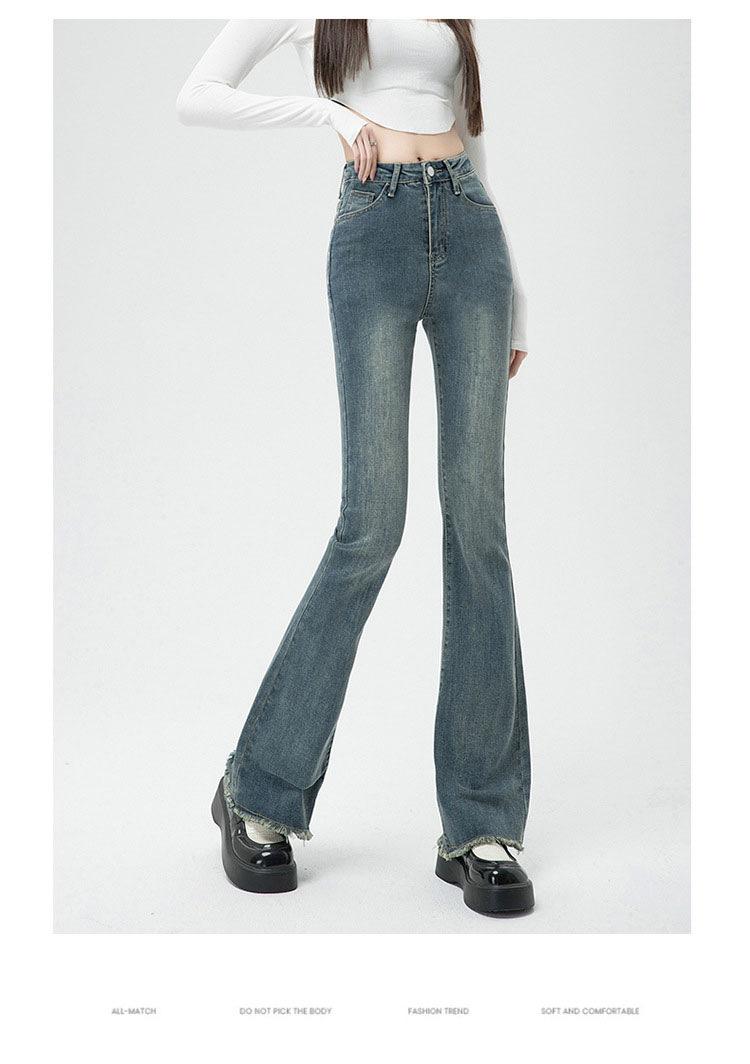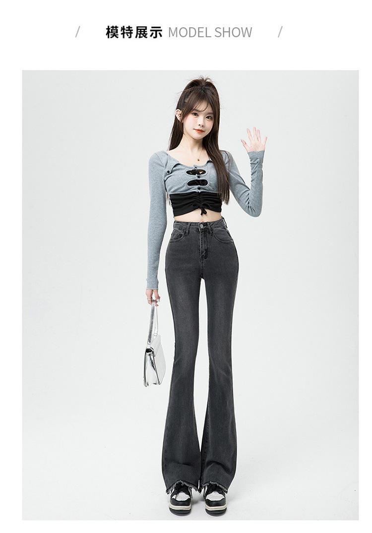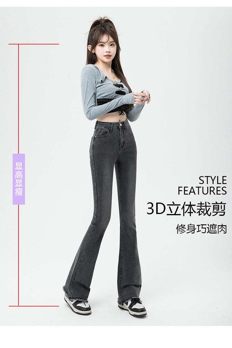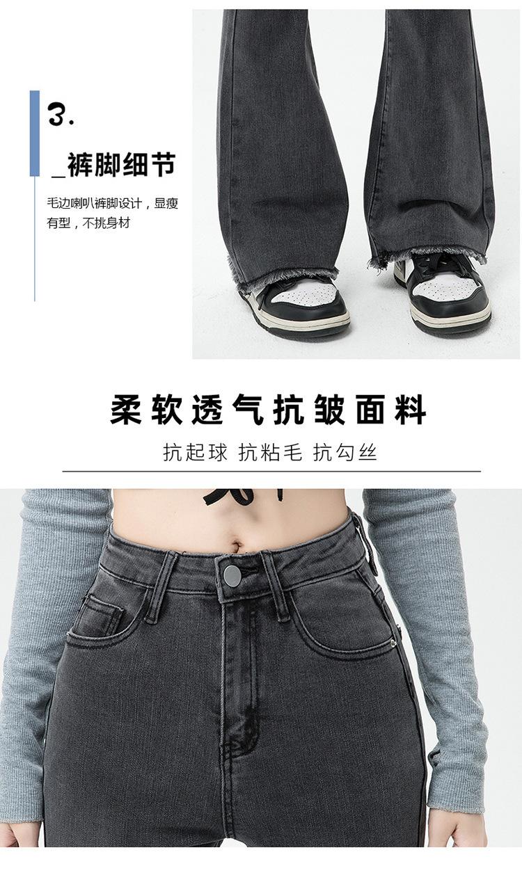 Pantalones vaqueros ajustados deshilachados de estilo americano para mujer, diseño de cintura alta, ajustados, elásticos, acampanados, color negro herradura, pantalones largos grises