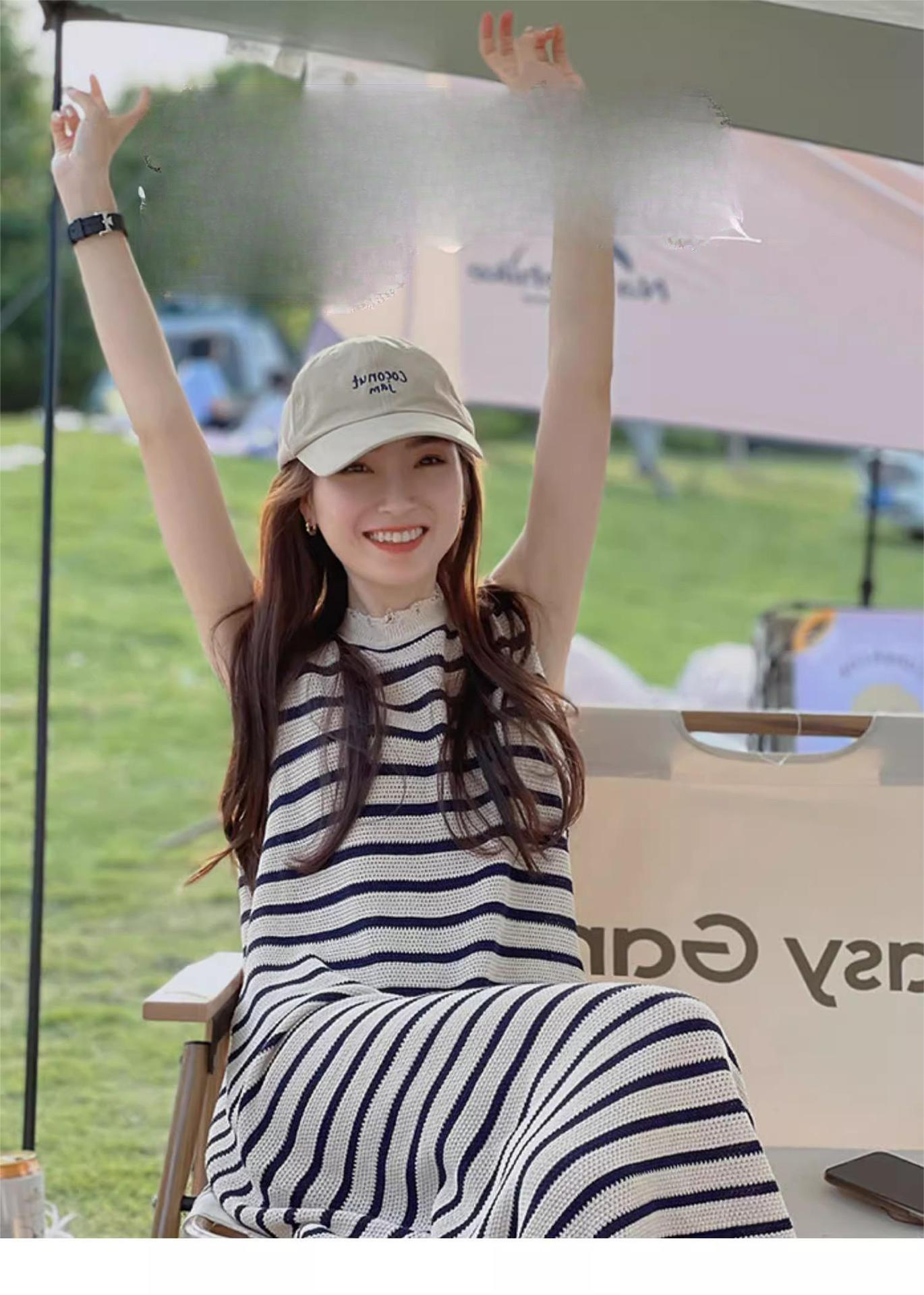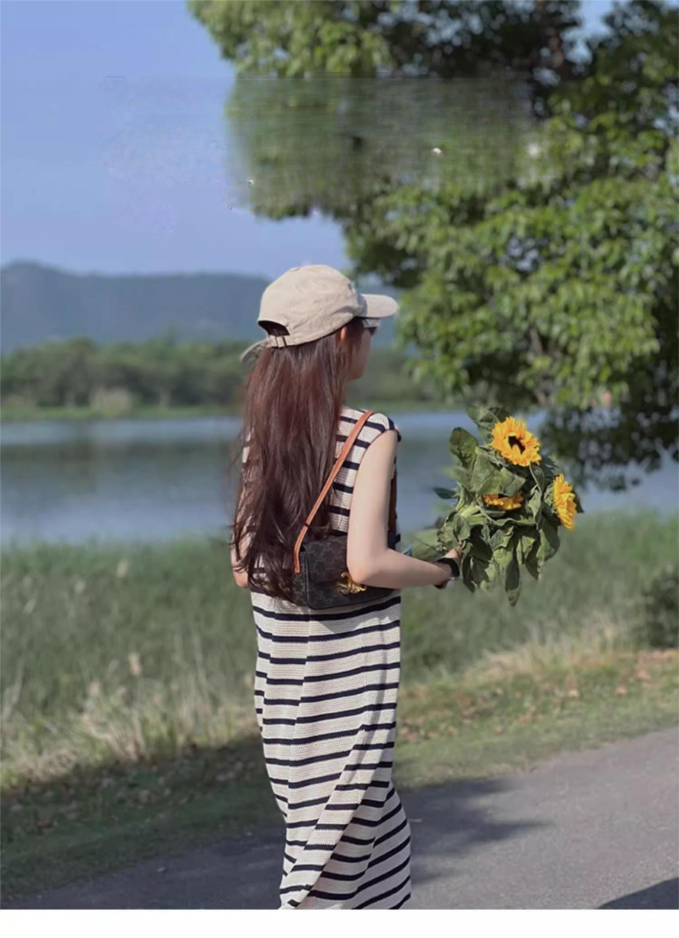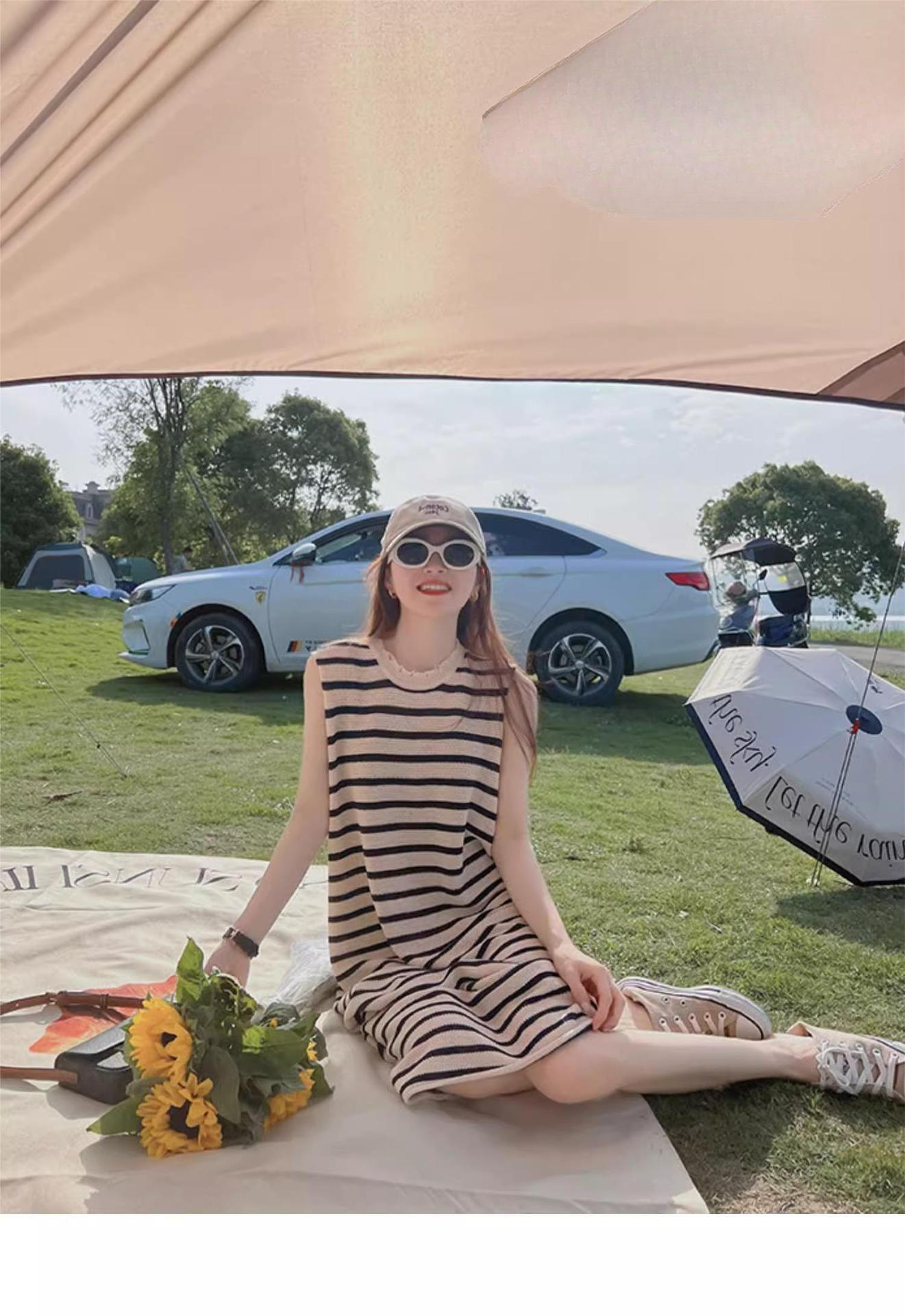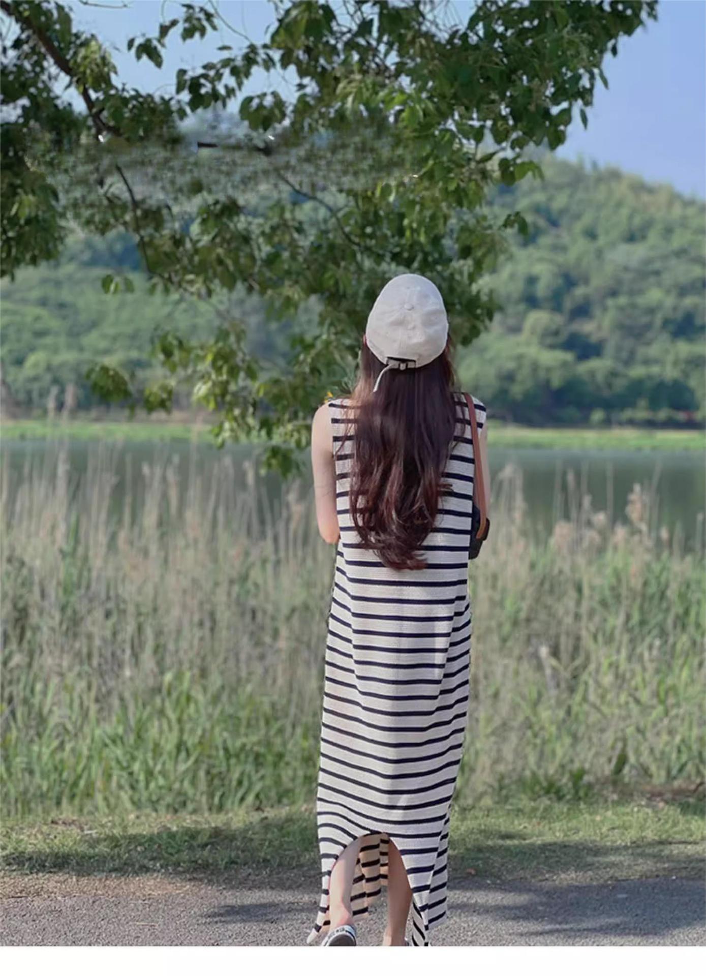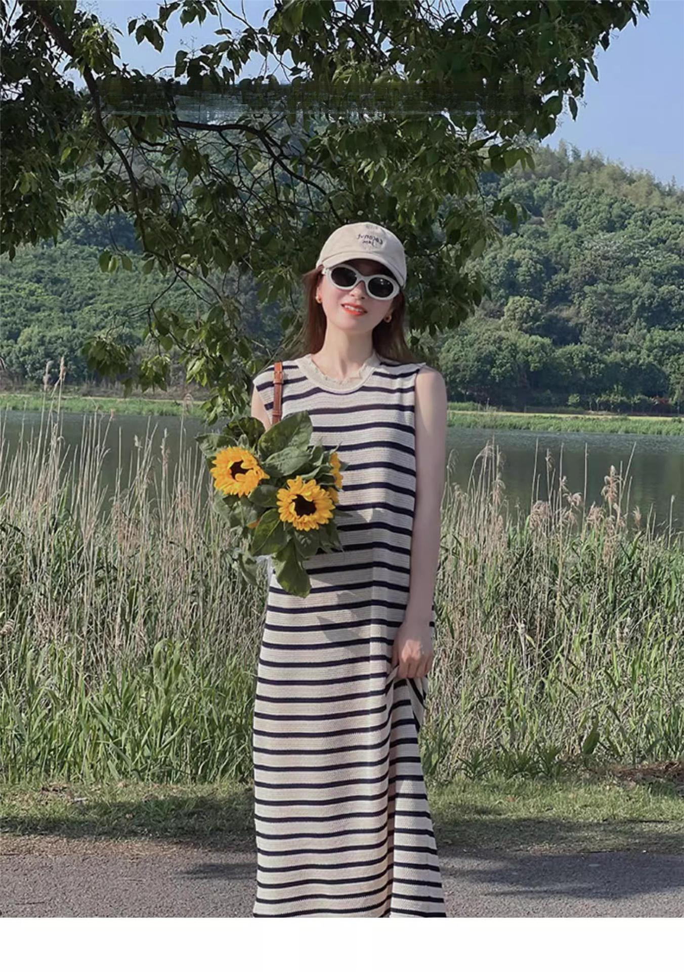 Diseño Francés Verano Nuevo Estilo Estilo Suave Primer Amor Hora del Té Vestido Chaleco Rayado