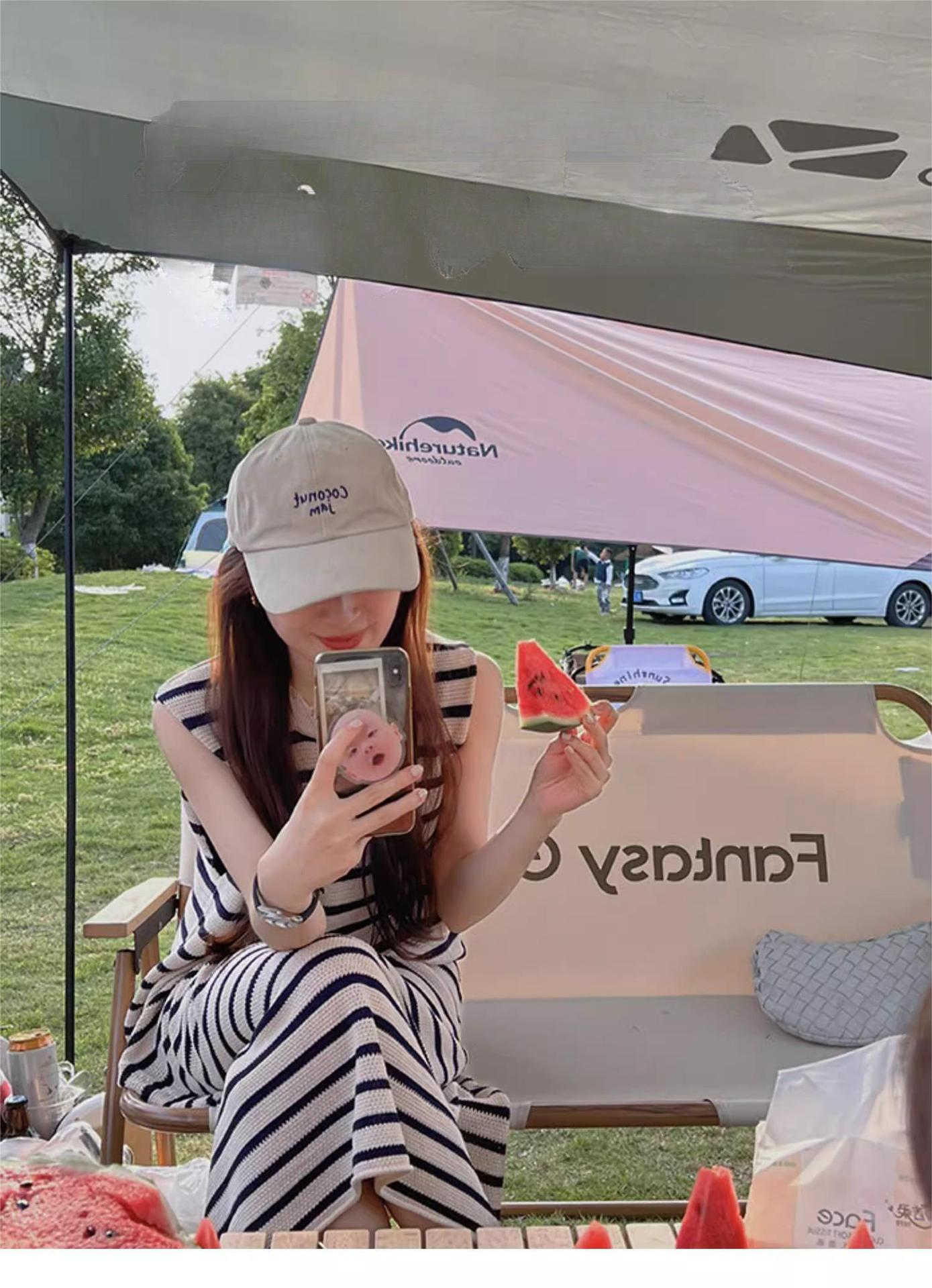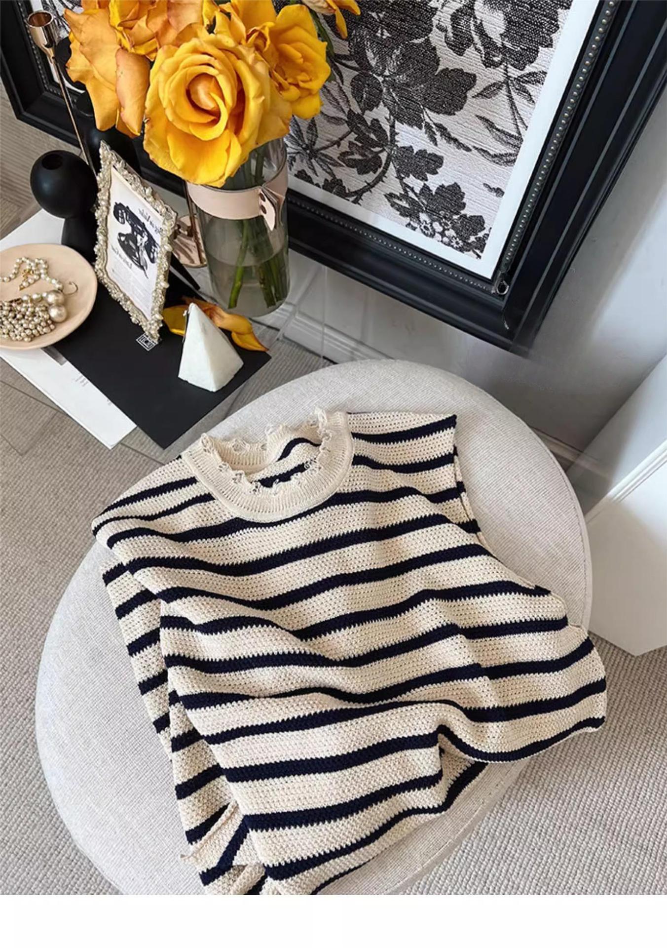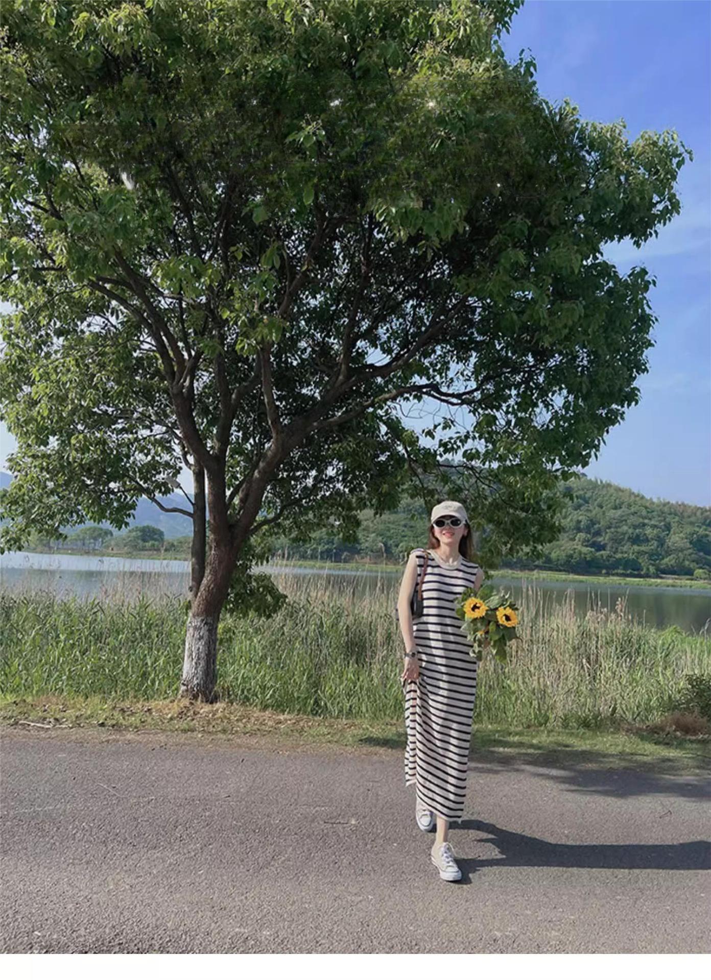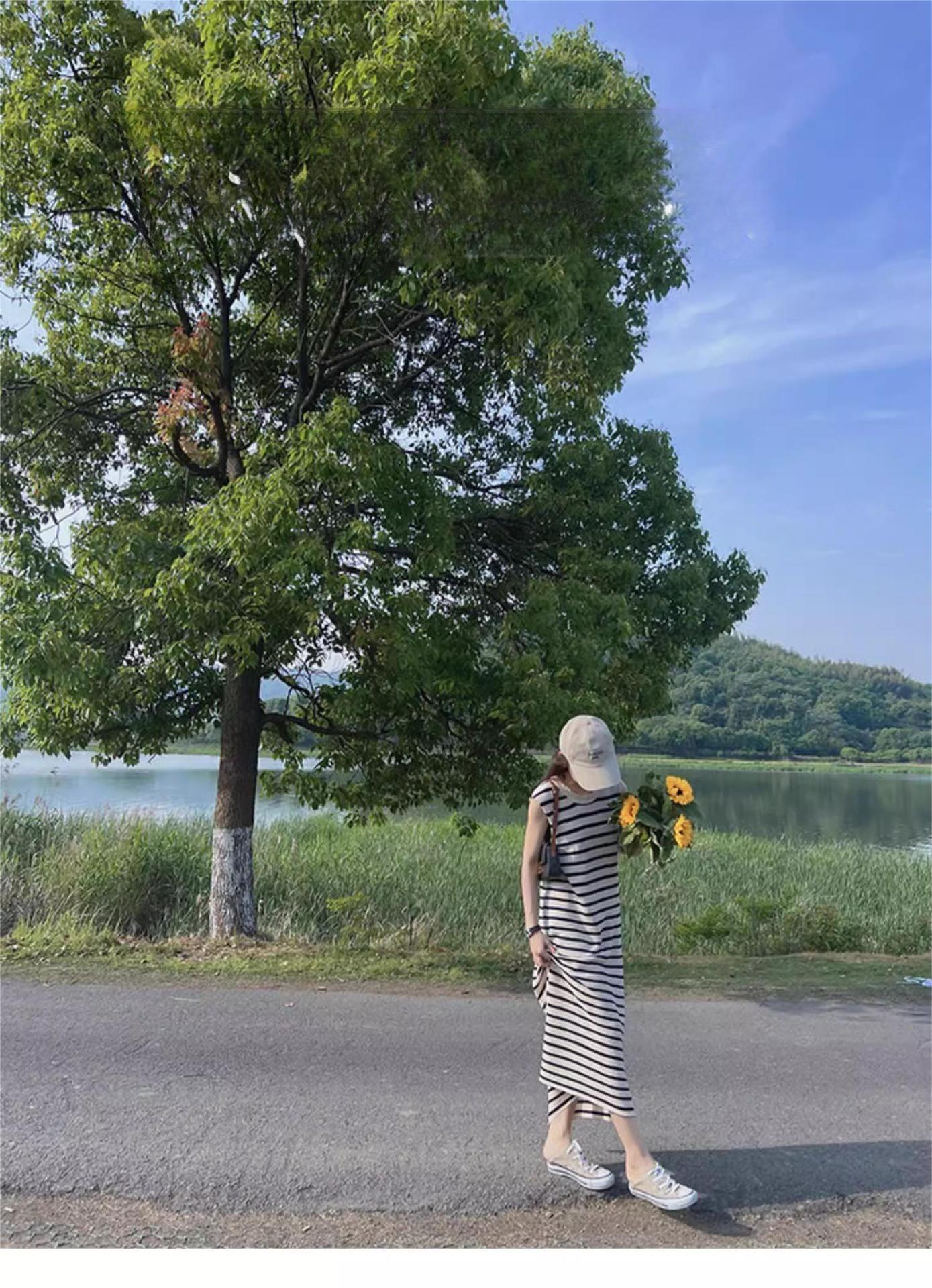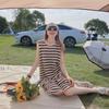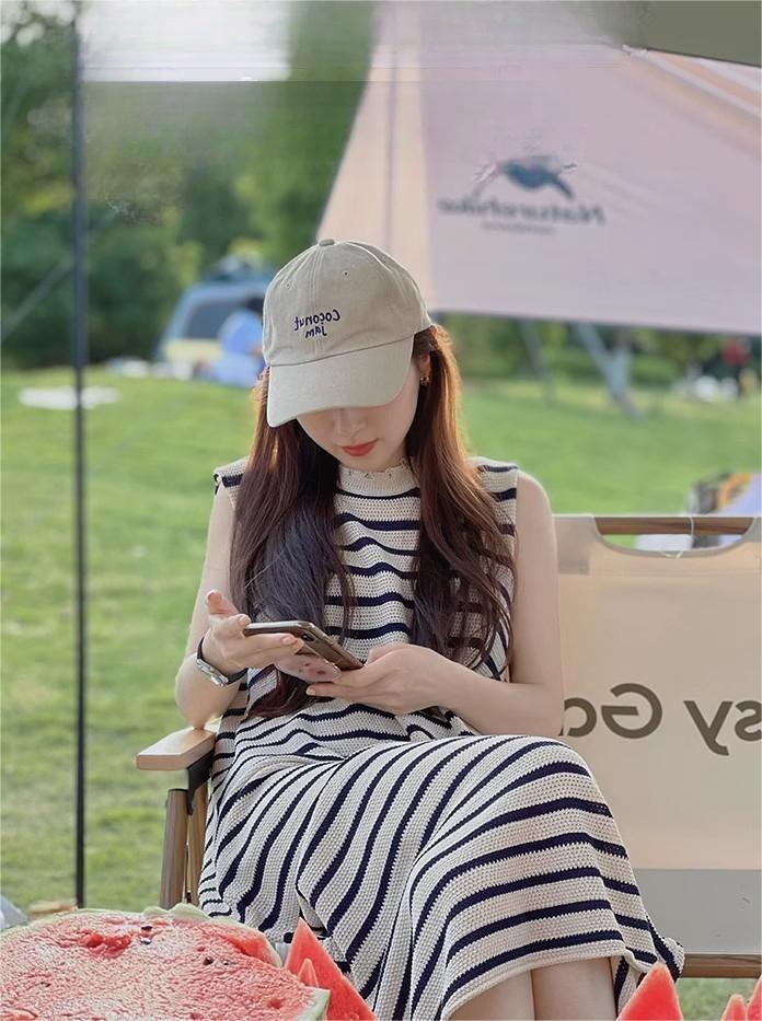Diseño Francés Verano Nuevo Estilo Estilo Suave Primer Amor Hora del Té Vestido Chaleco Rayado