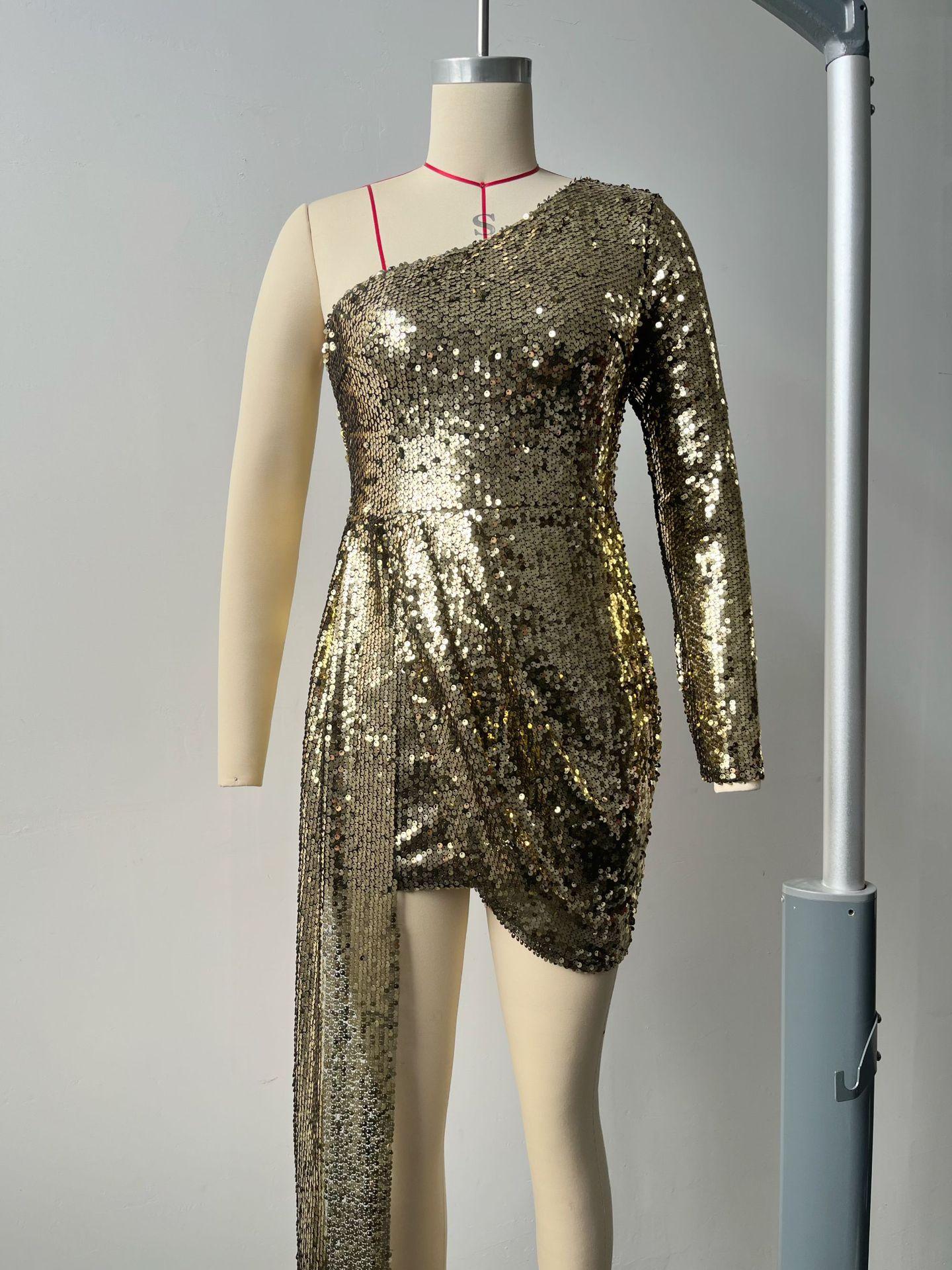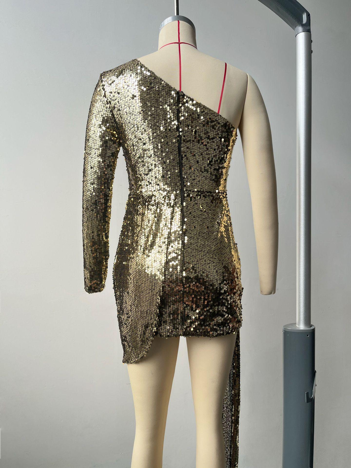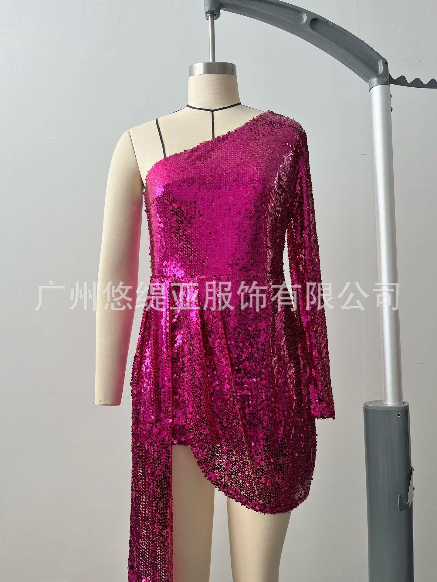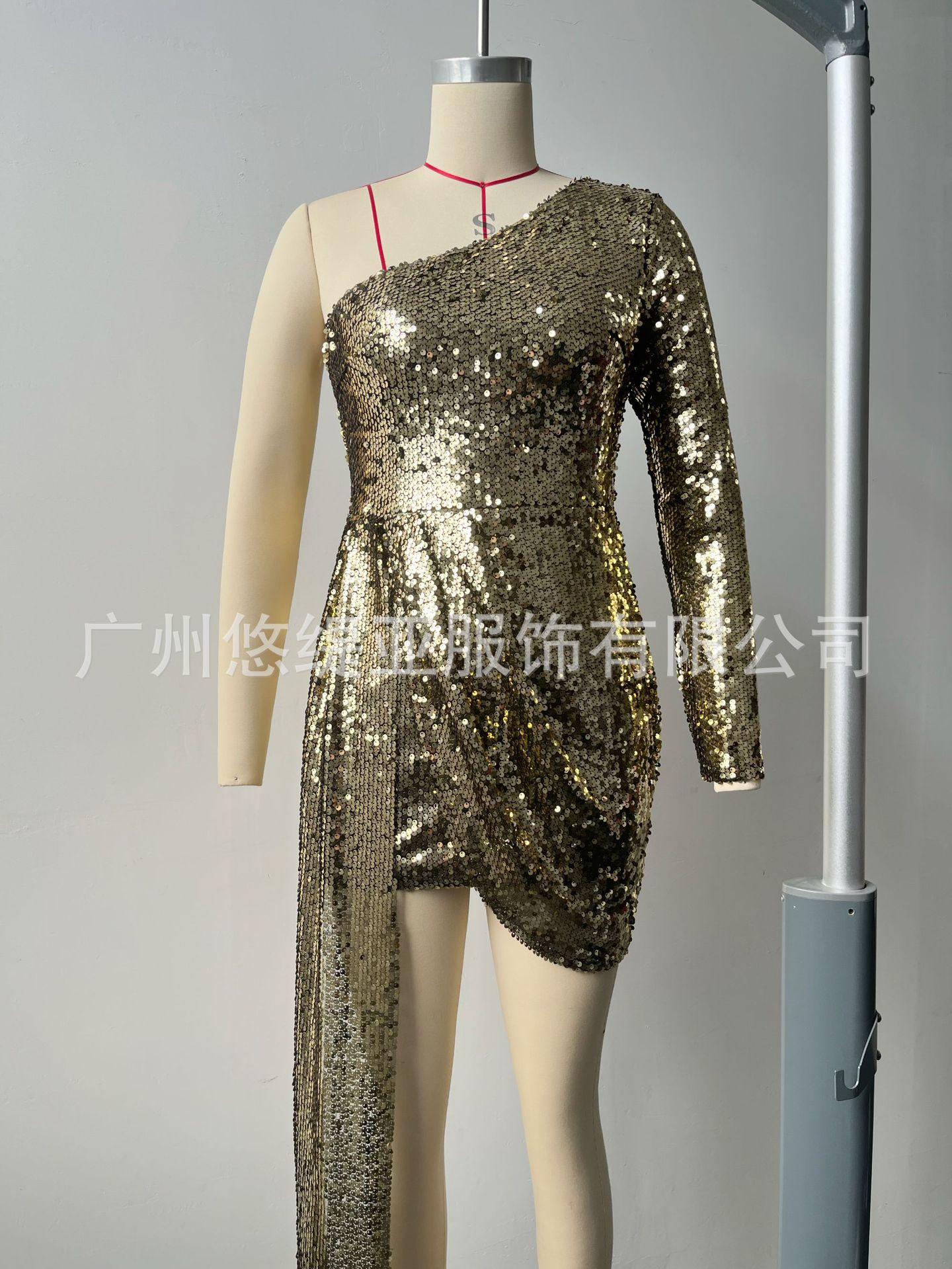 Vestido nuevo de primavera y verano para mujer, transfronterizo de comercio exterior europeo y americano, Amazon, sexy de un hombro con lentejuelas, vestido ajustado