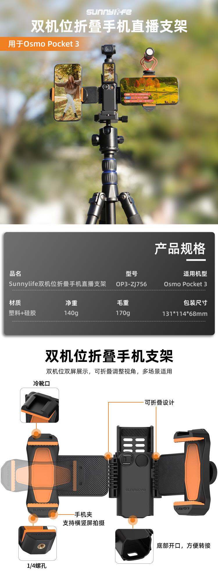 Nombre del producto: Soporte plegable para teléfono móvil de doble posición para transmisión en vivo Sunnylife