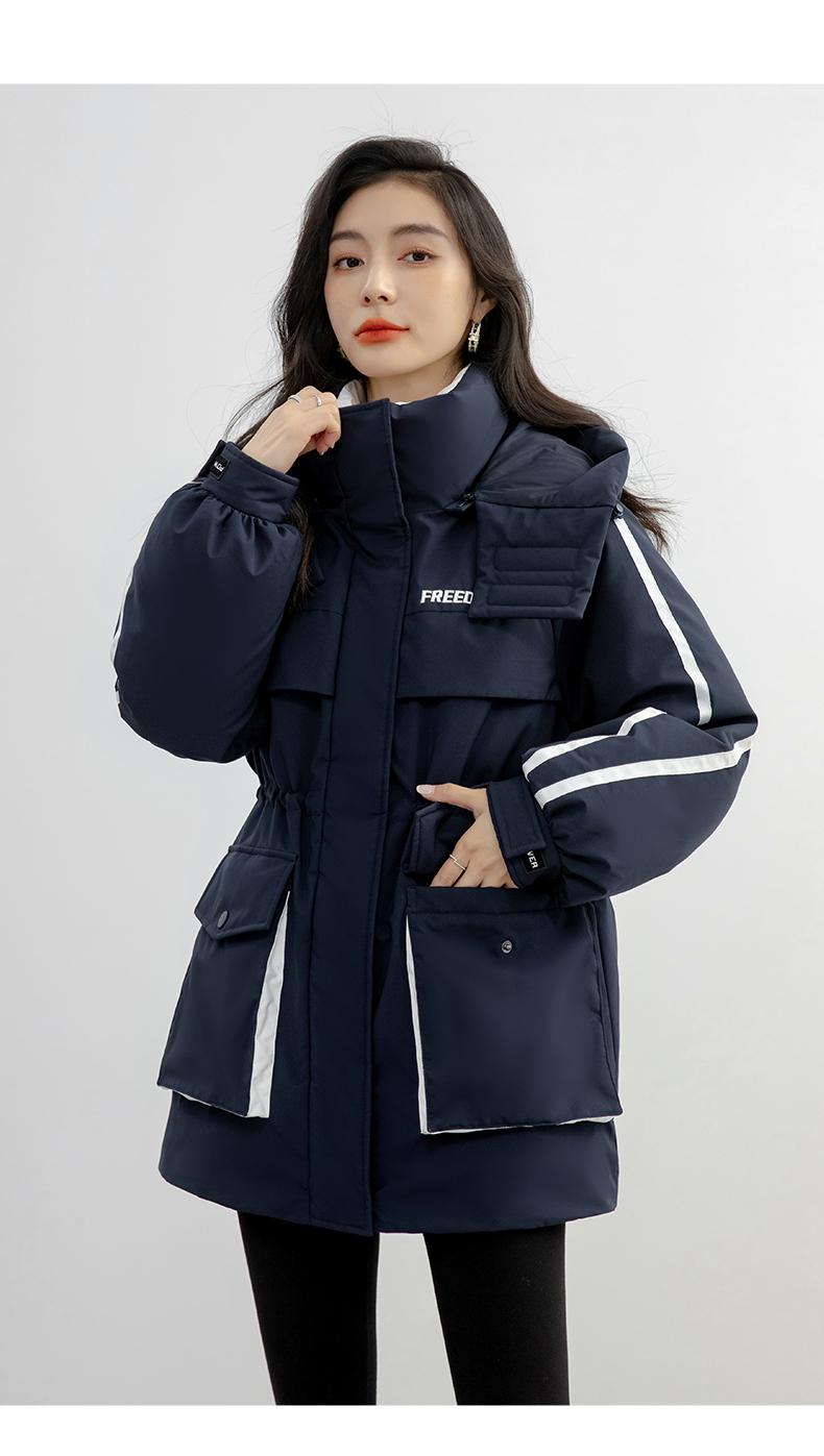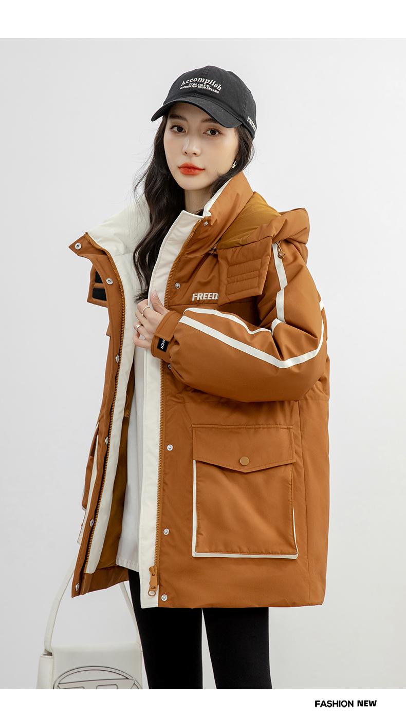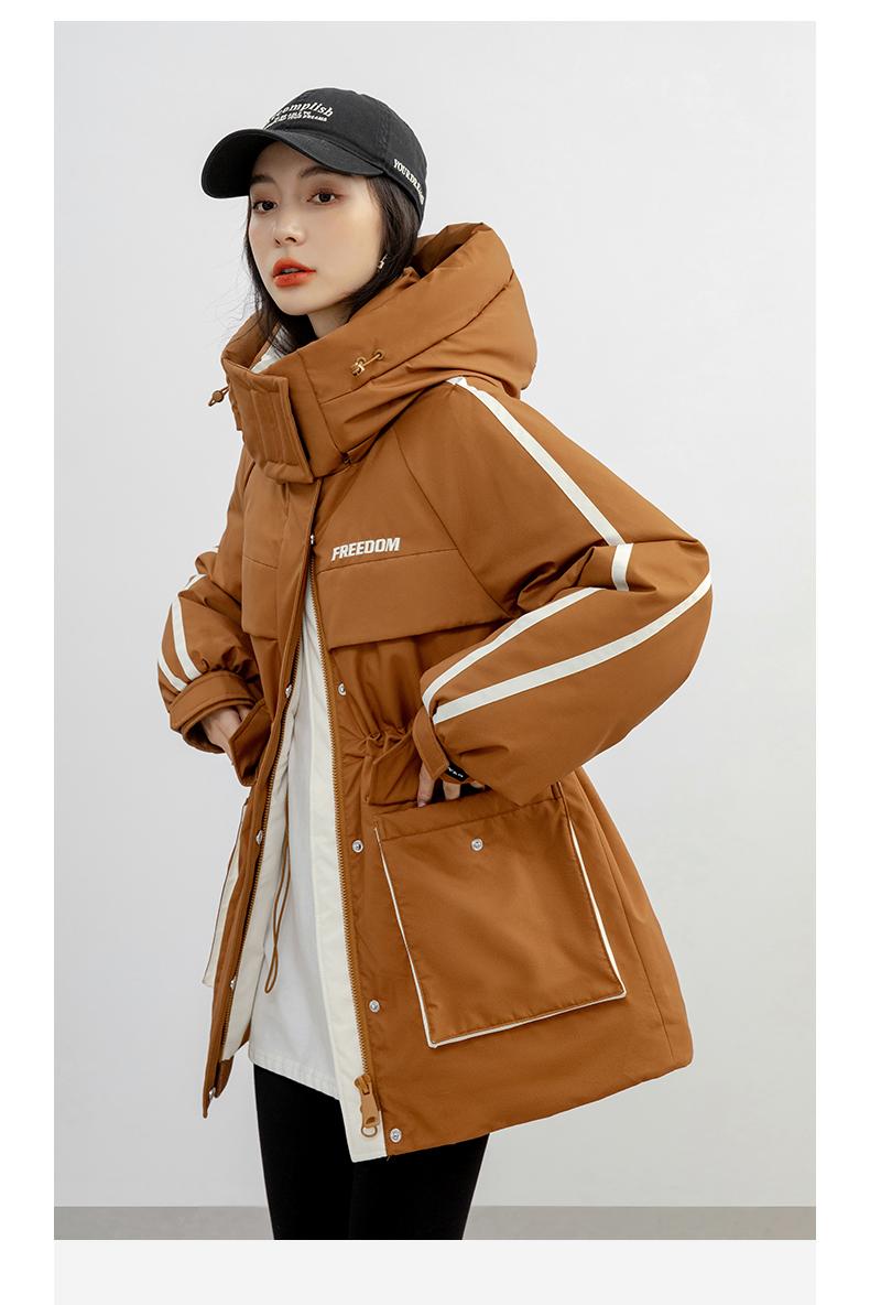 Chaqueta de plumón de pato para mujer, Largo medio, Nuevo estilo de otoño e invierno 2024, Con capucha, Estilo coreano, Entallada en la cintura, Abrigo de plumón de pato a la moda