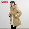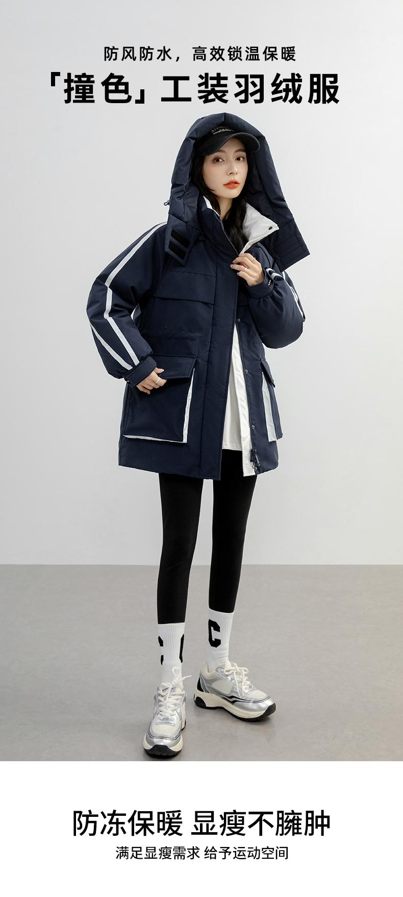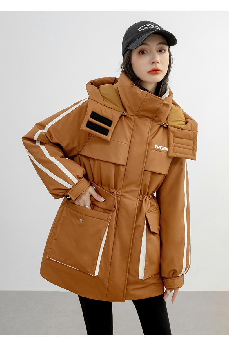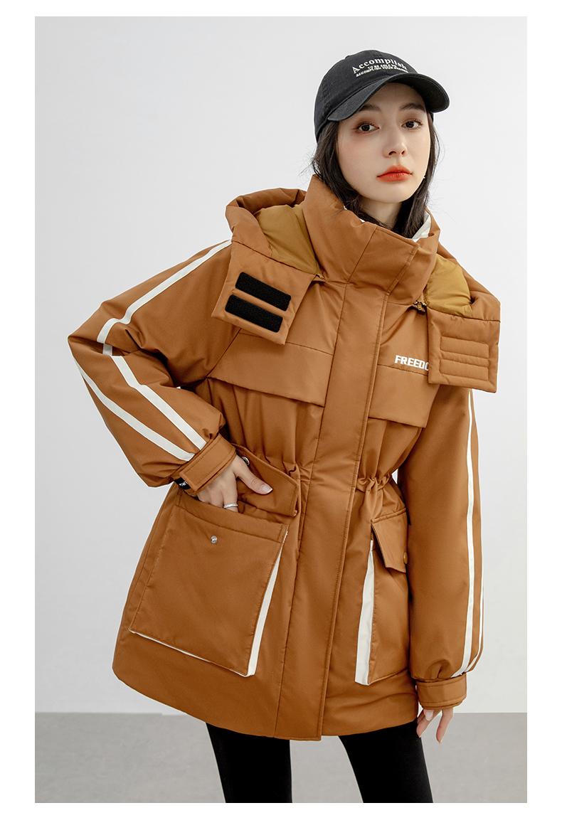 Chaqueta de plumón de pato para mujer, Largo medio, Nuevo estilo de otoño e invierno 2024, Con capucha, Estilo coreano, Entallada en la cintura, Abrigo de plumón de pato a la moda