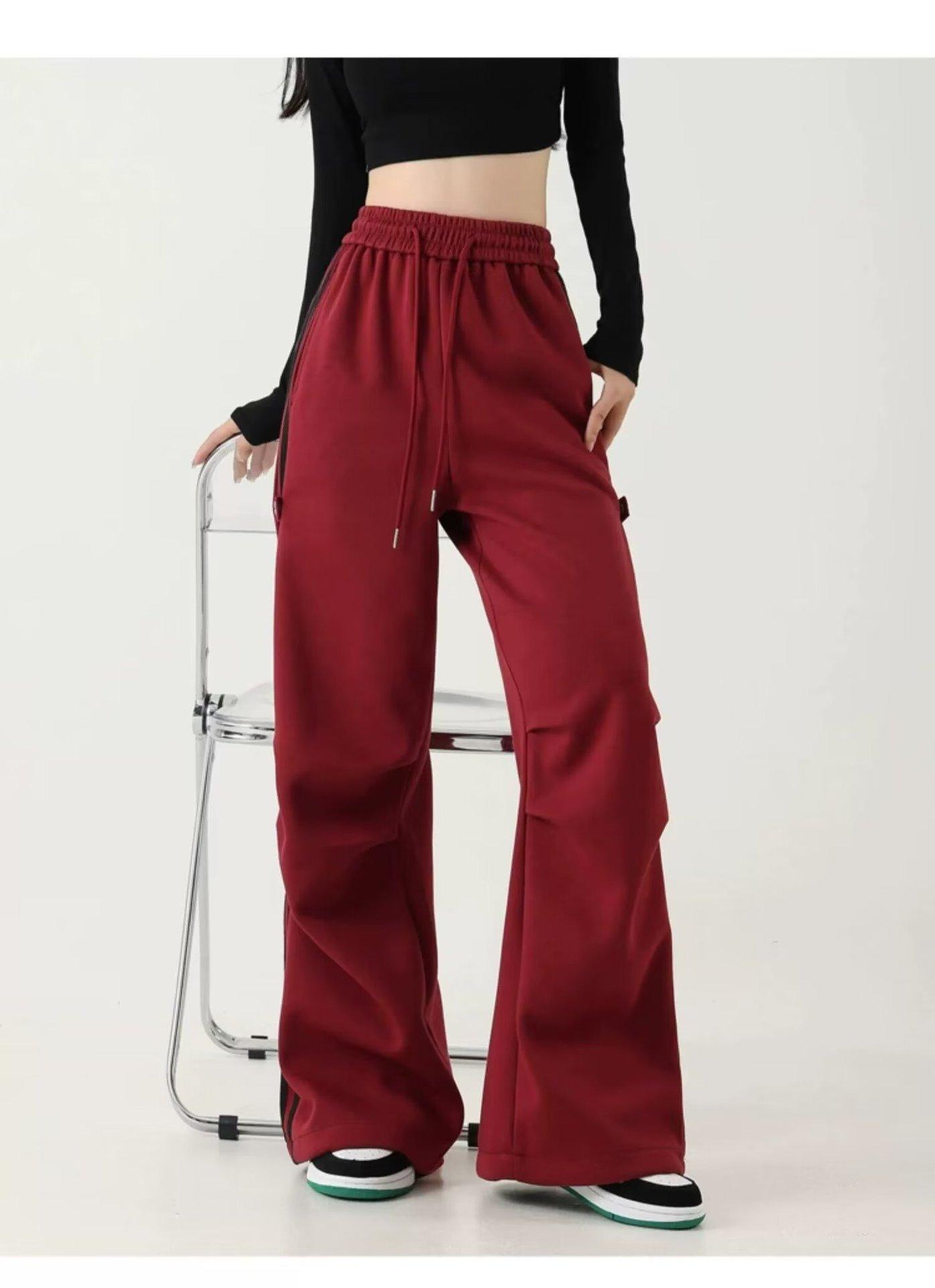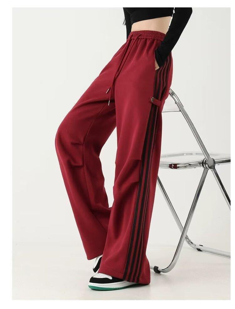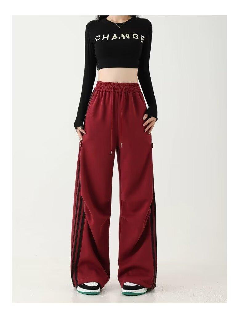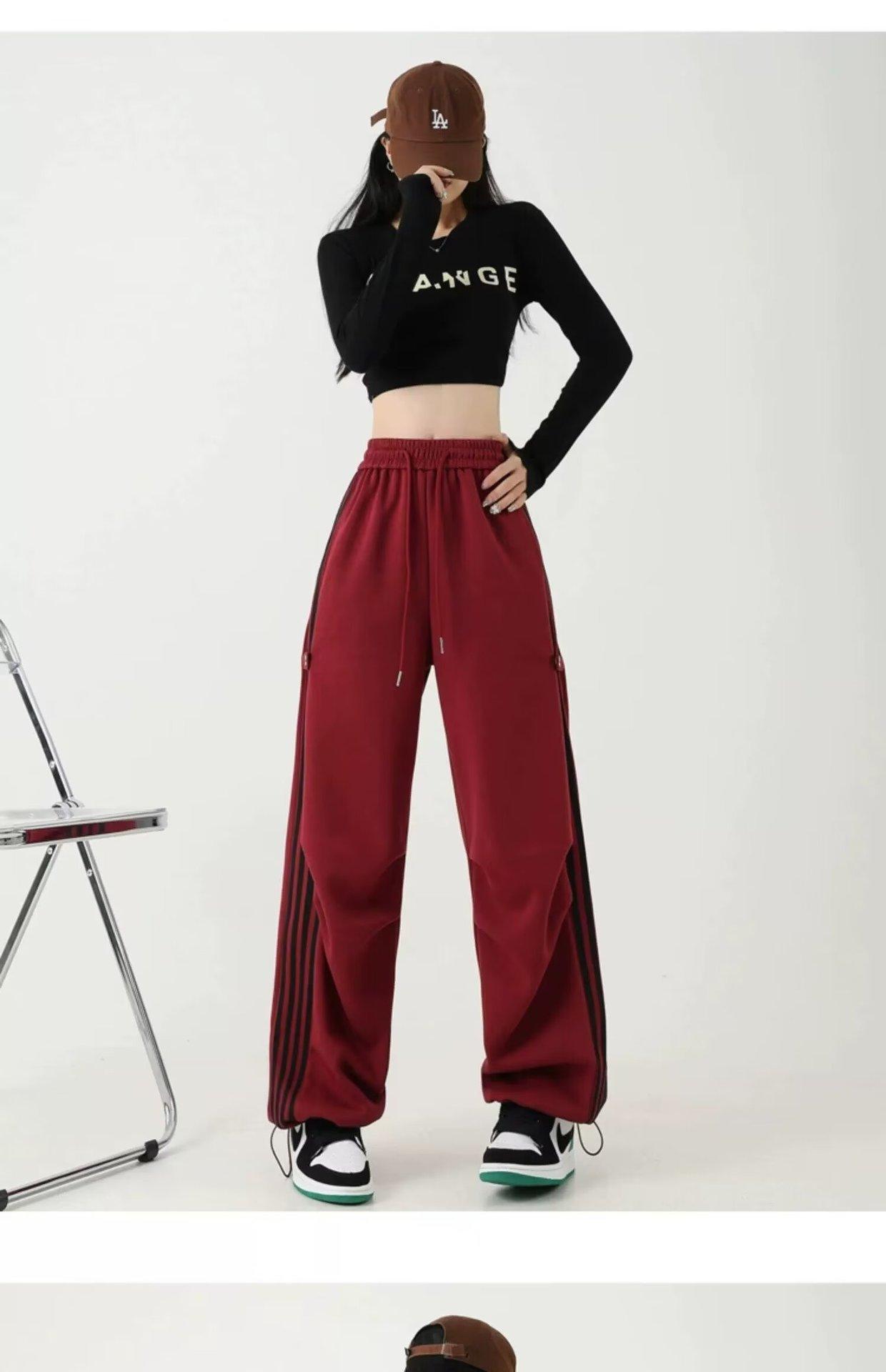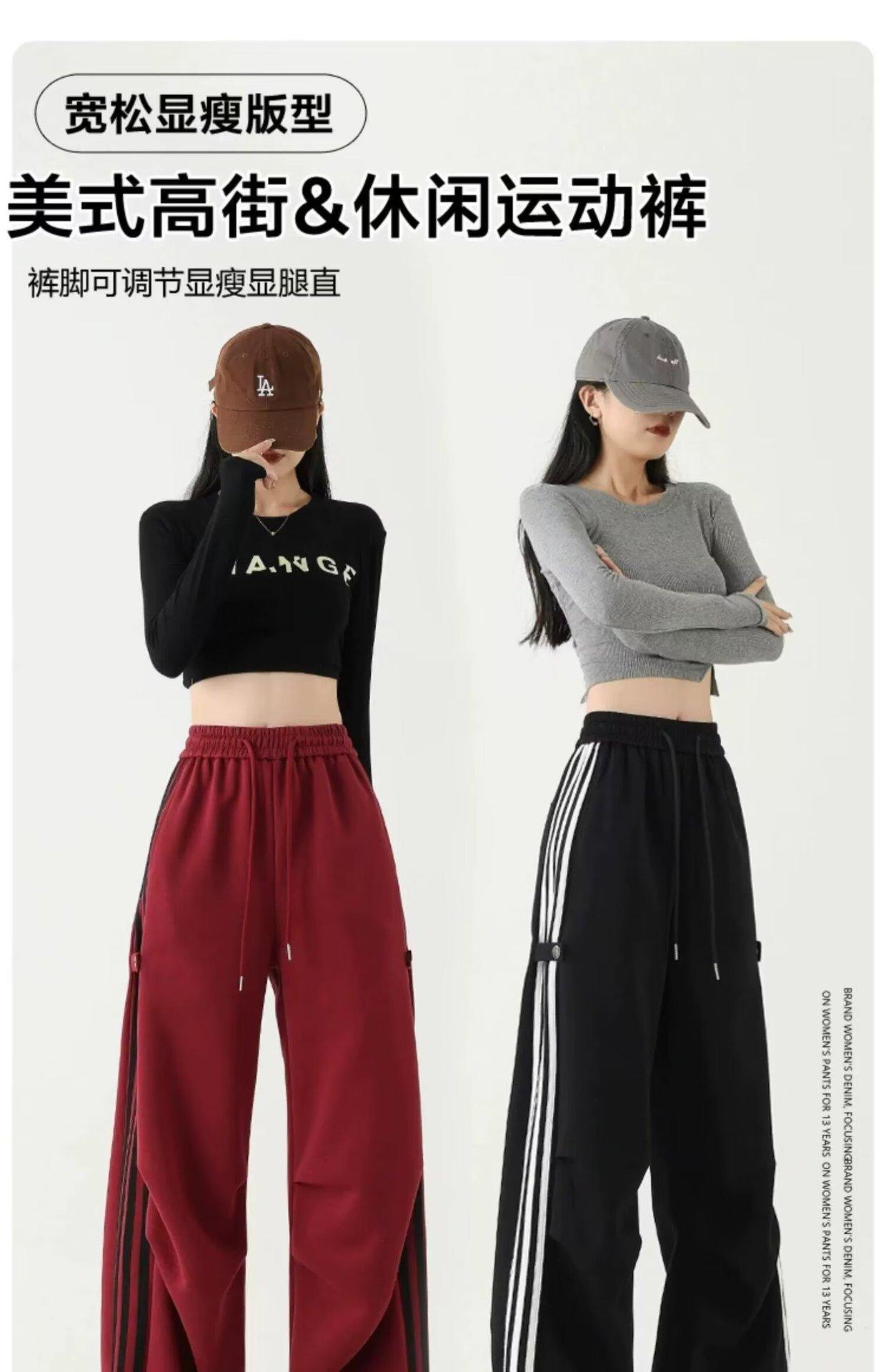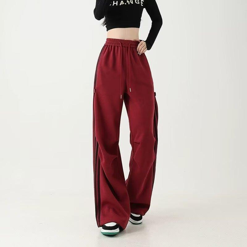 Pantalones deportivos de pierna ancha estilo americano retro para mujer, primavera y otoño 2024, holgados, rectos e informales.