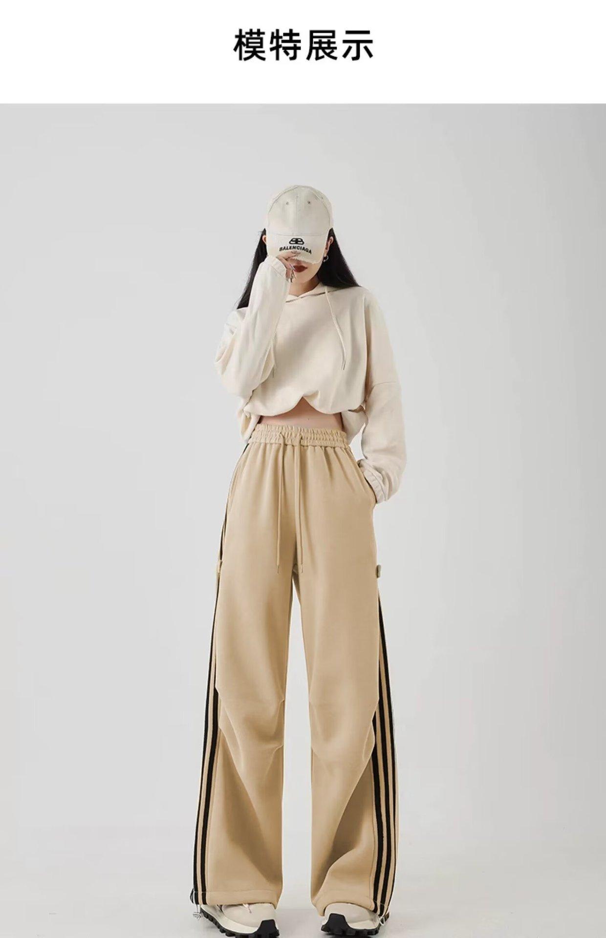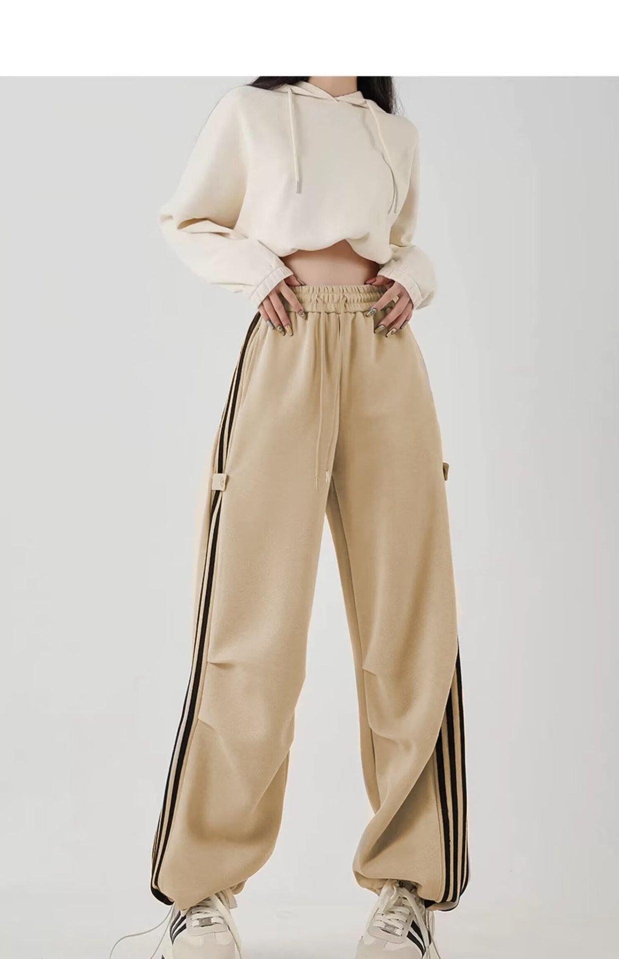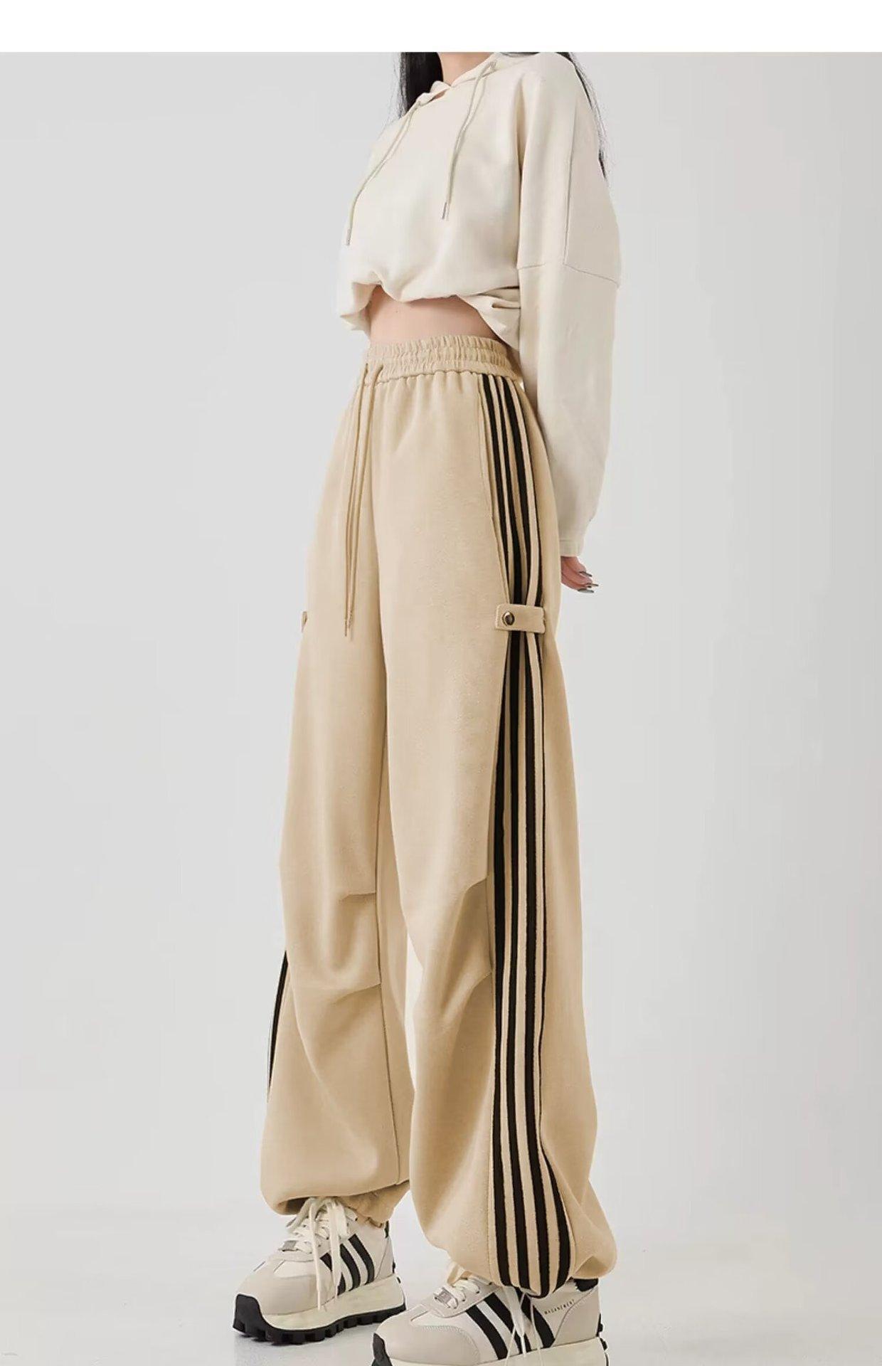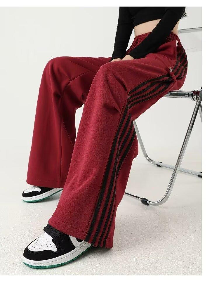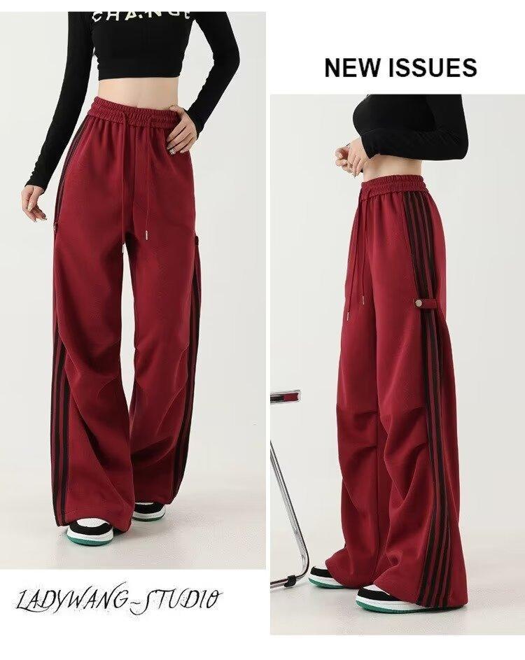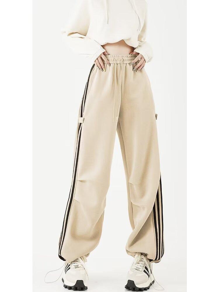Pantalones deportivos de pierna ancha estilo americano retro para mujer, primavera y otoño 2024, holgados, rectos e informales.