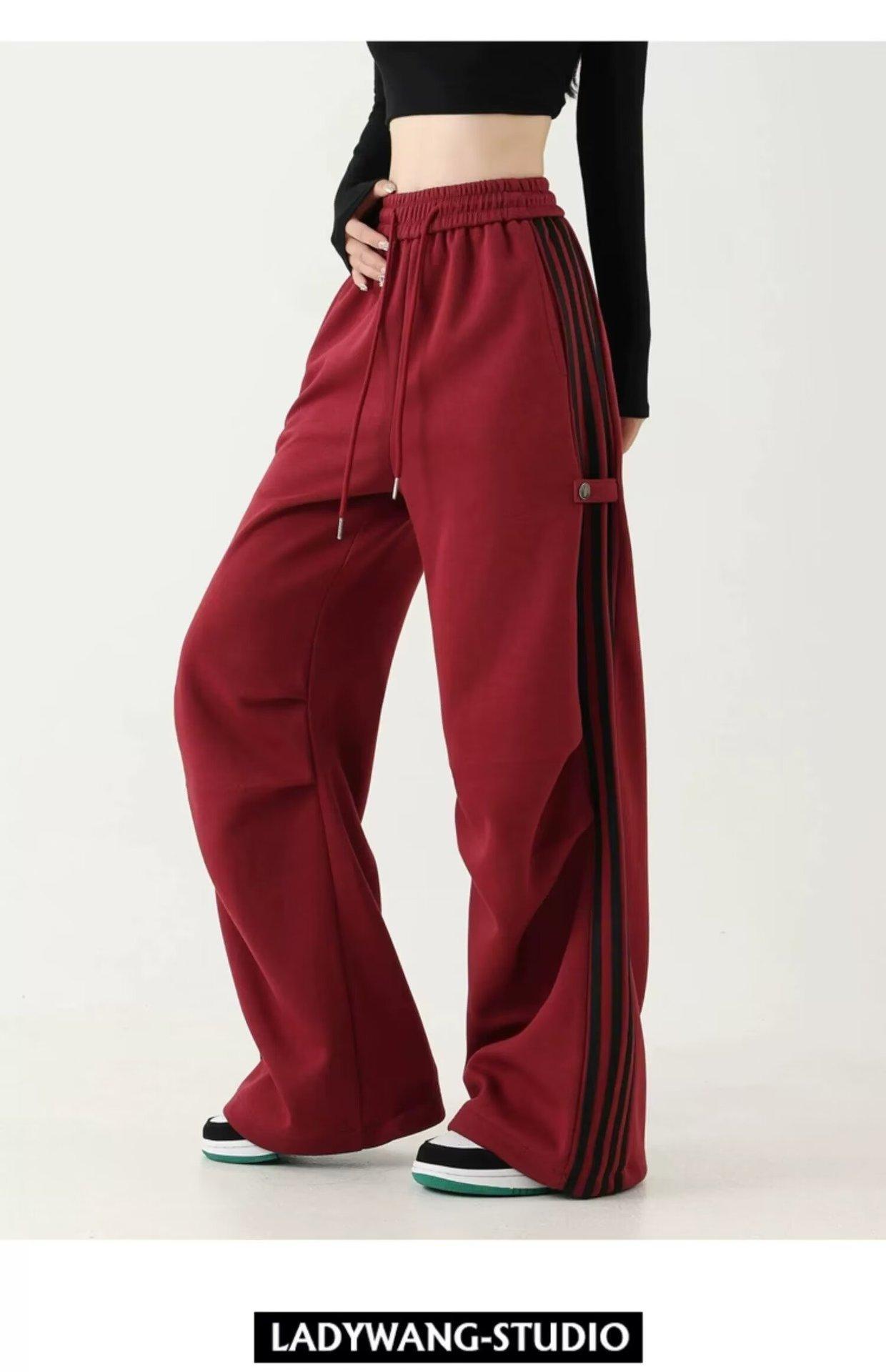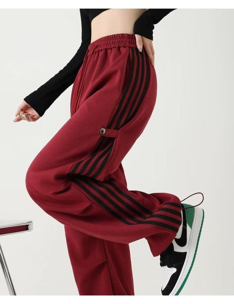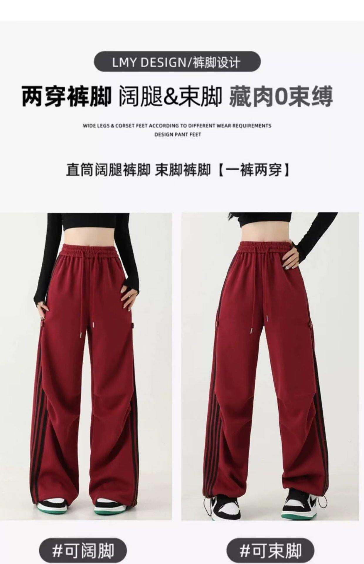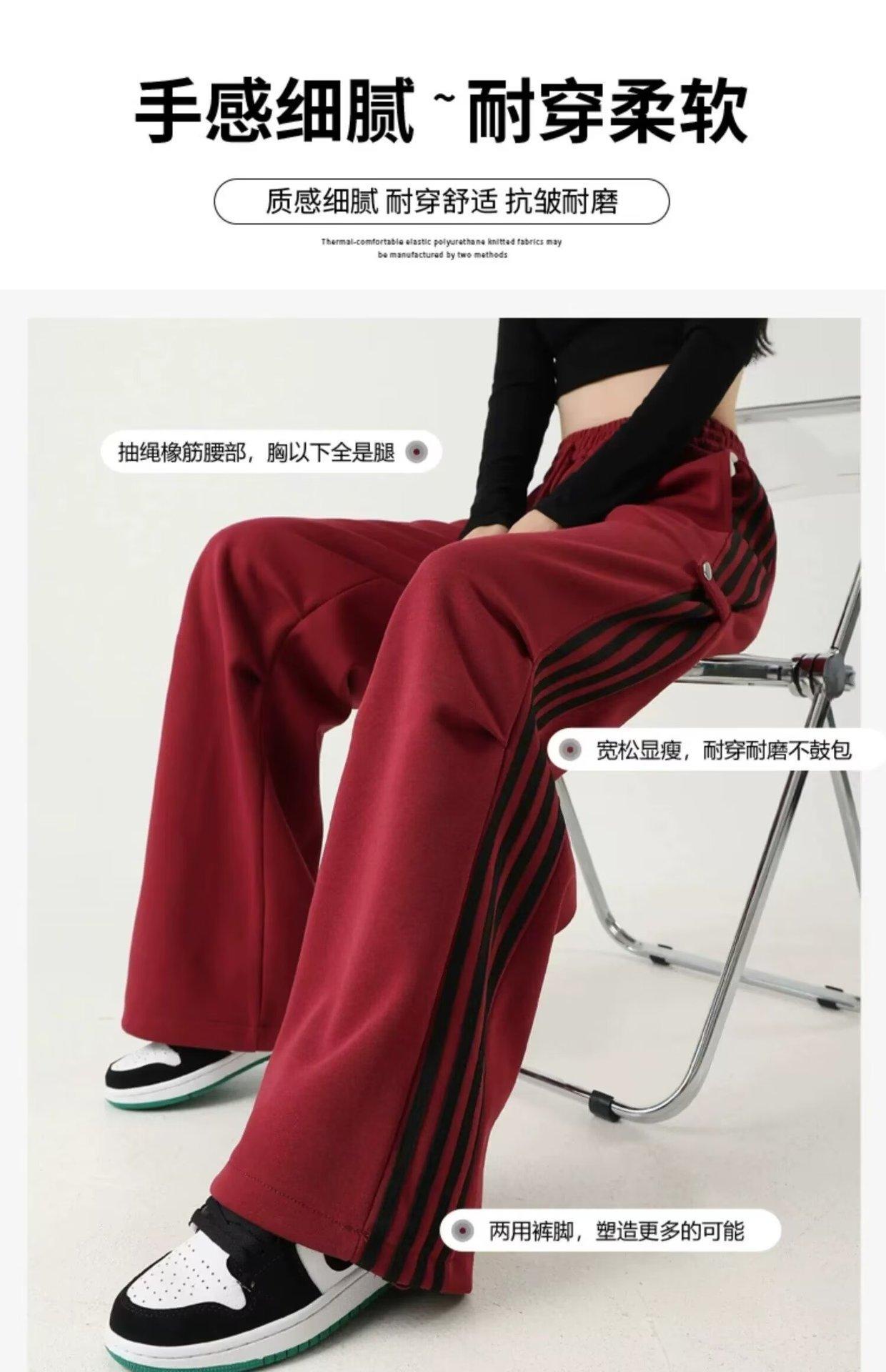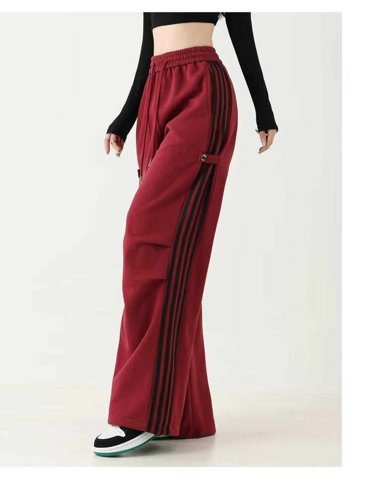 Pantalones deportivos de pierna ancha estilo americano retro para mujer, primavera y otoño 2024, holgados, rectos e informales.