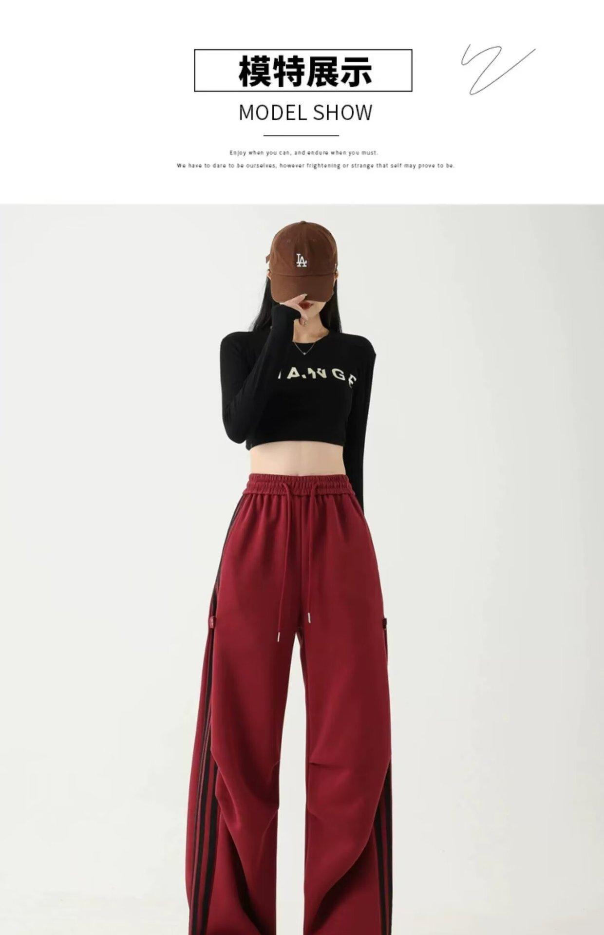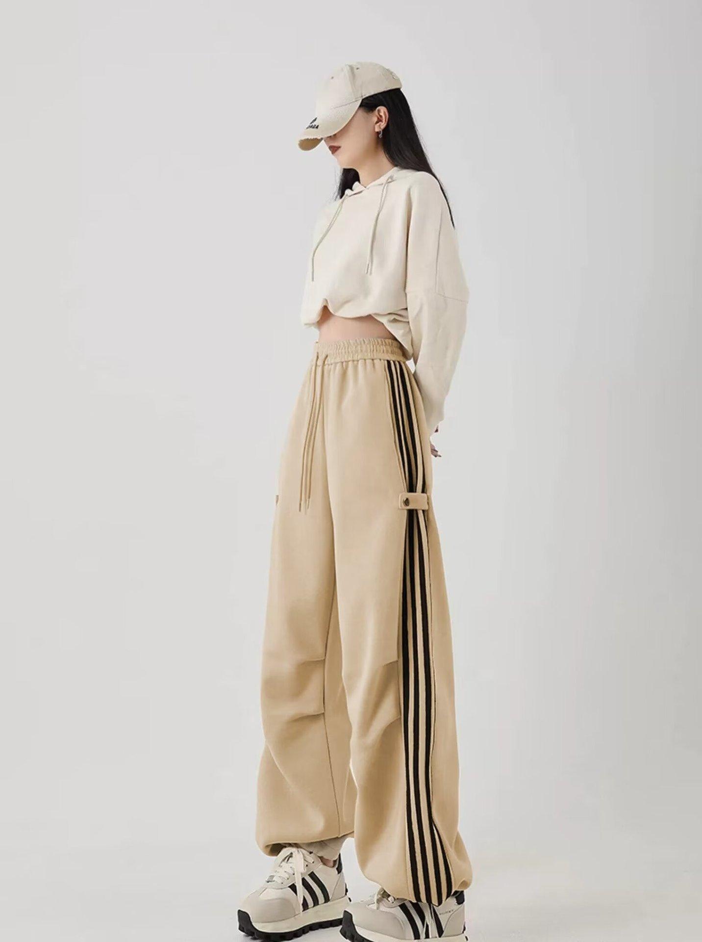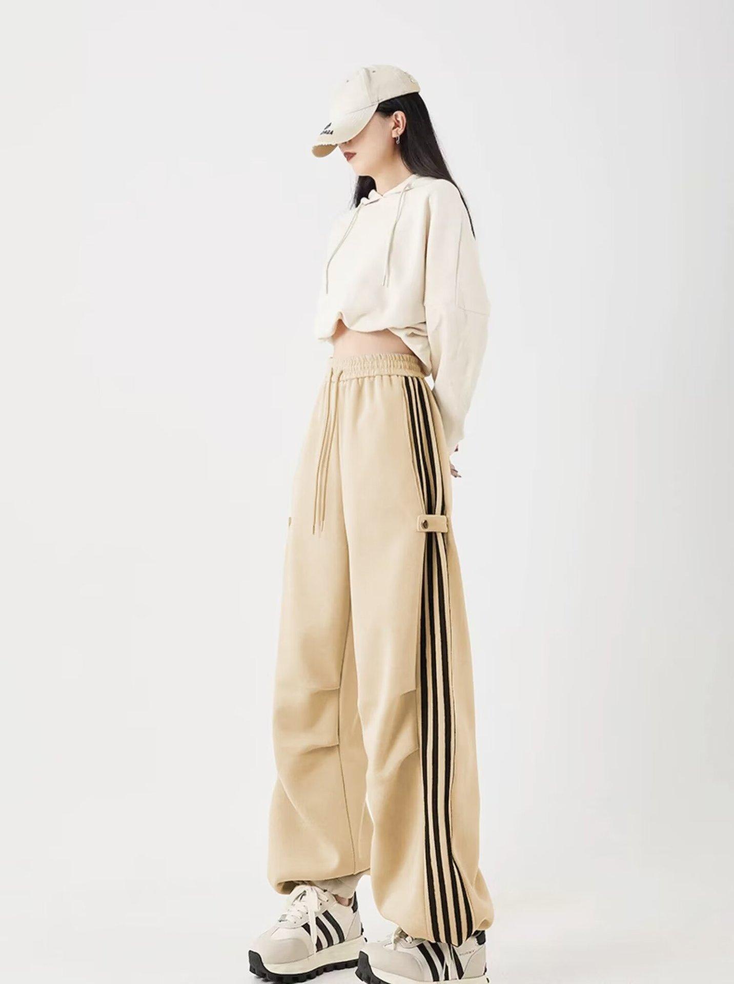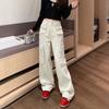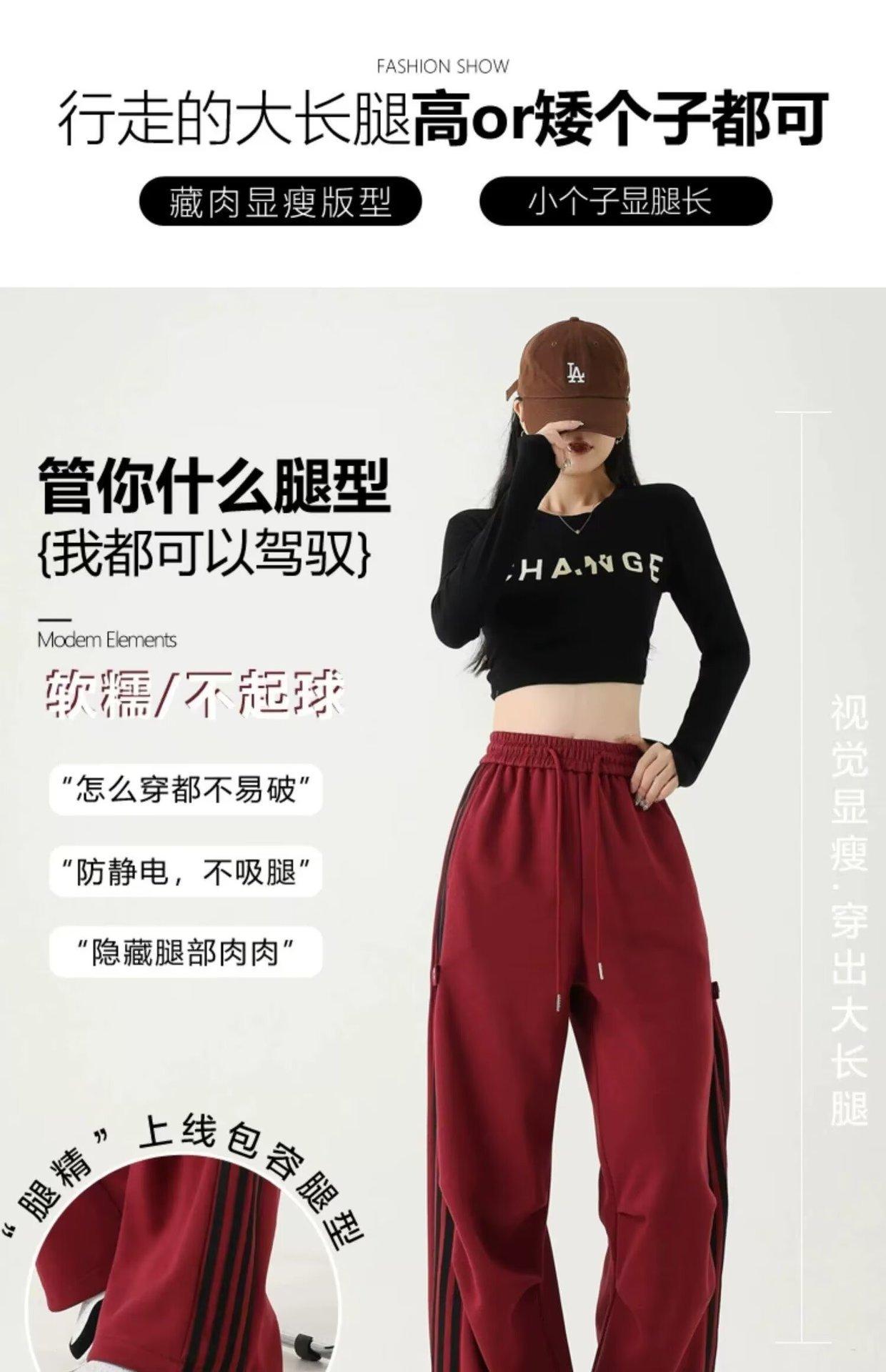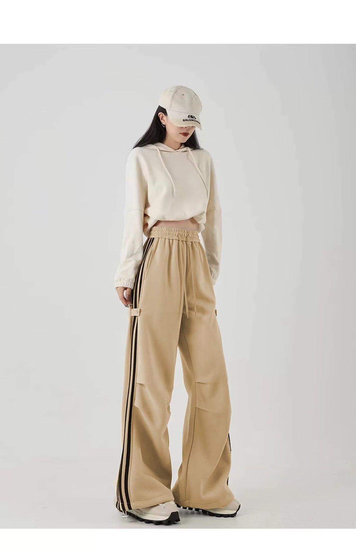 Pantalones deportivos de pierna ancha estilo americano retro para mujer, primavera y otoño 2024, holgados, rectos e informales.