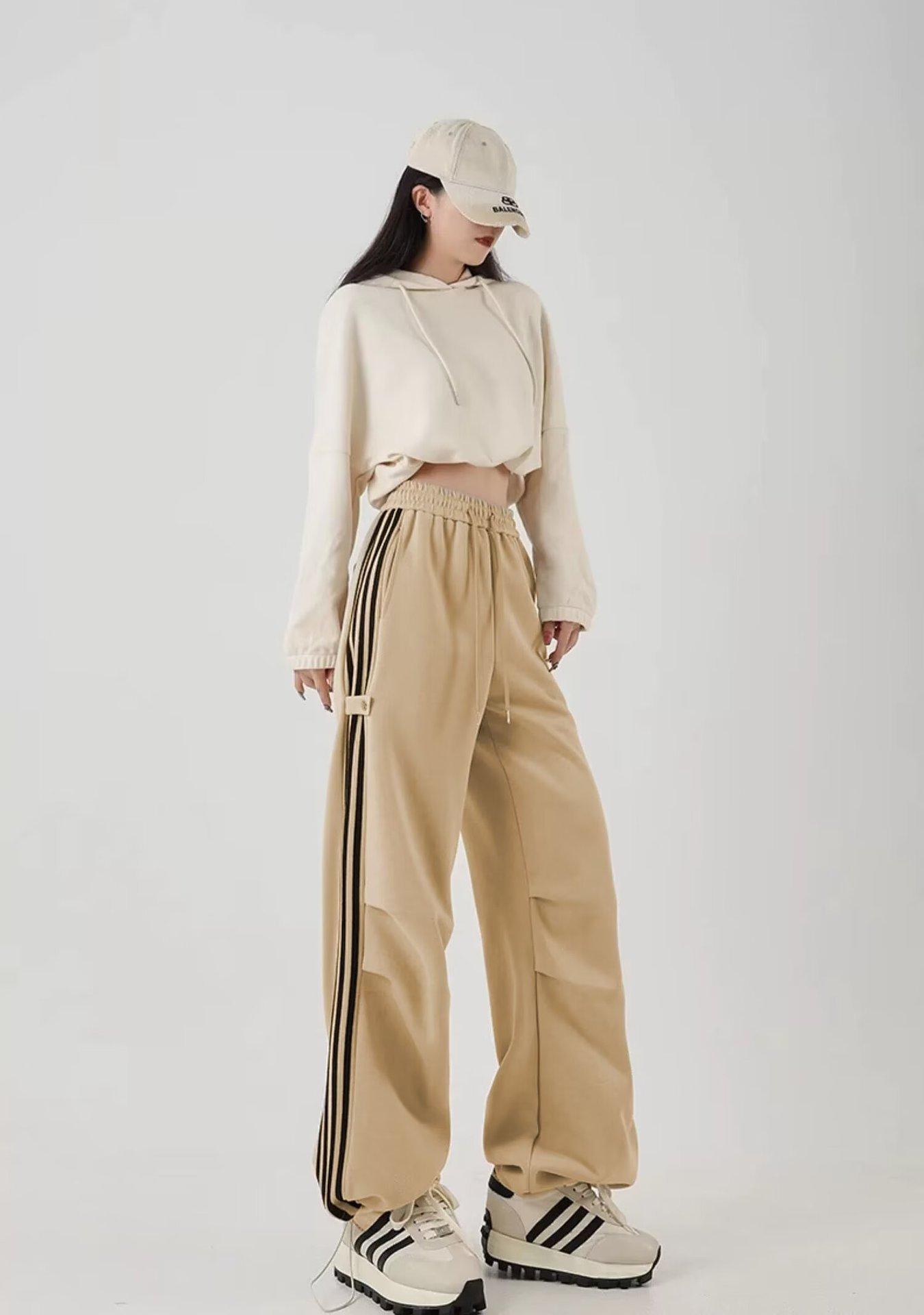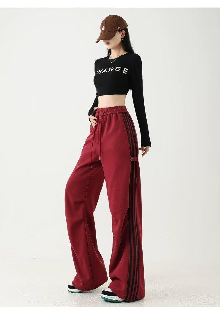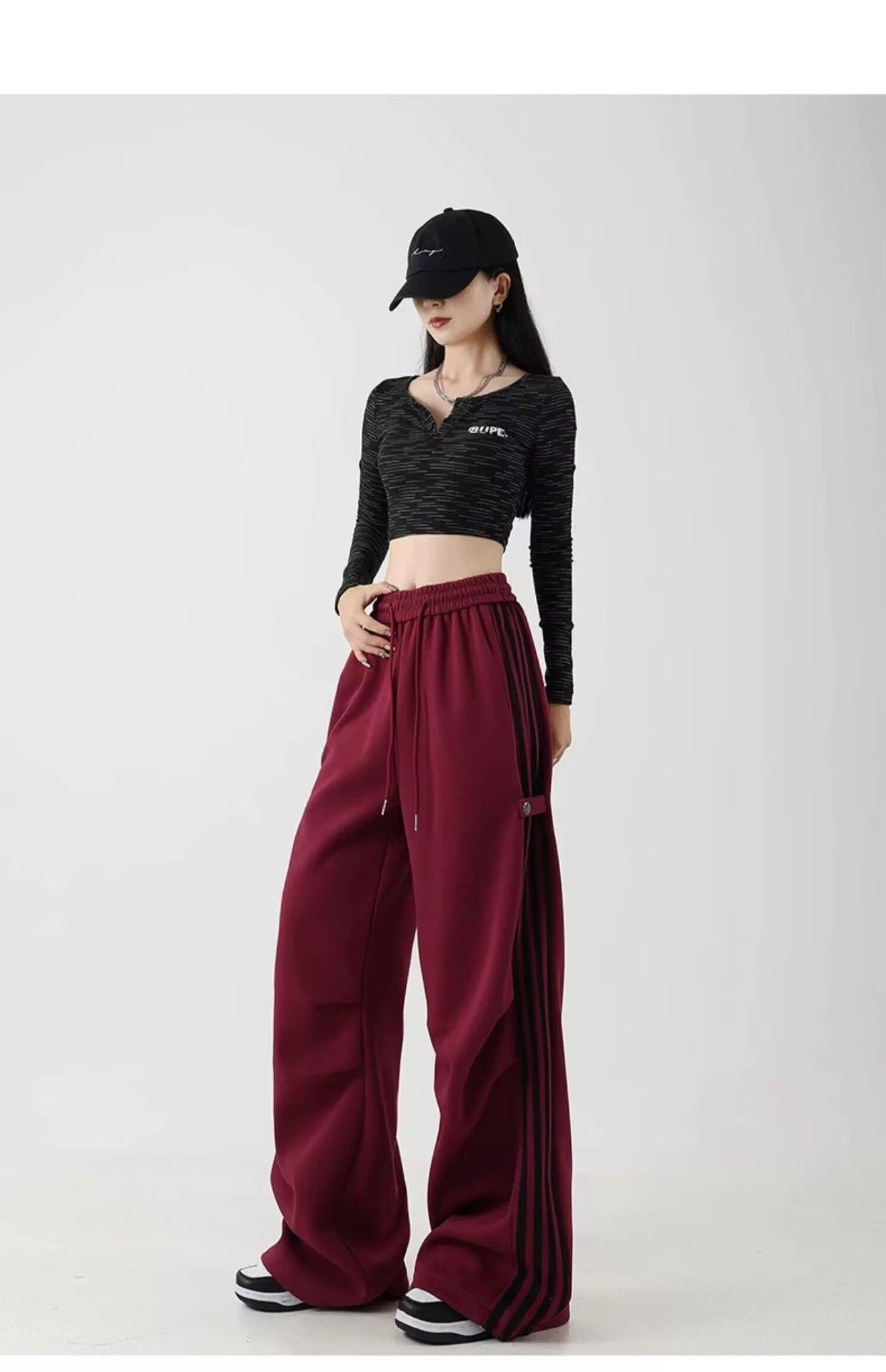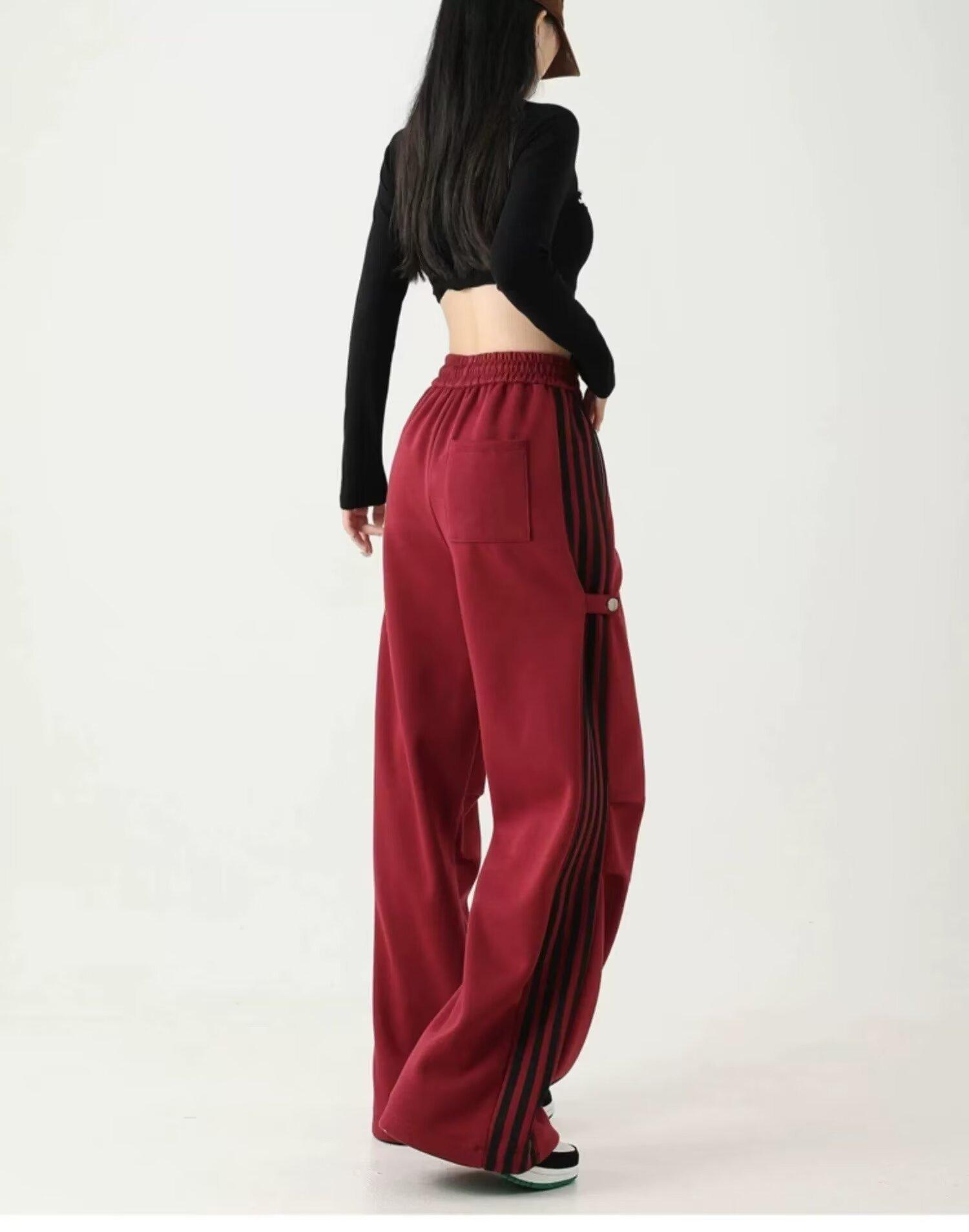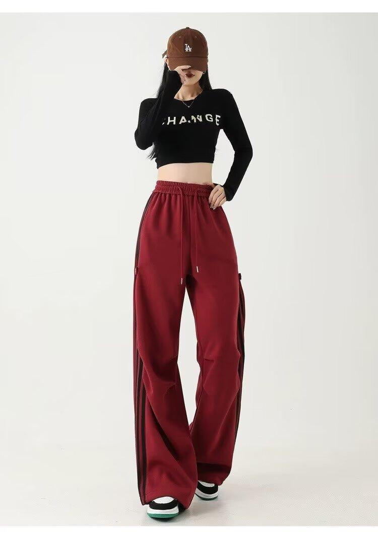 Pantalones deportivos de pierna ancha estilo americano retro para mujer, primavera y otoño 2024, holgados, rectos e informales.