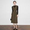 Vestido Camisero Drapeado Midi 2025 + Set de Chal Tejido del Mismo Color Set de 2 Piezas Celebridad de Internet Mismo Estilo Tendencia