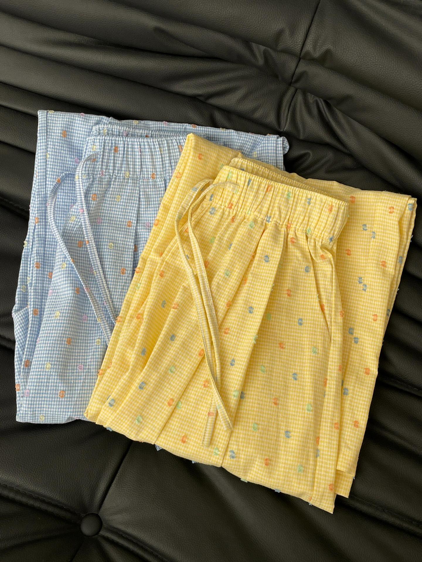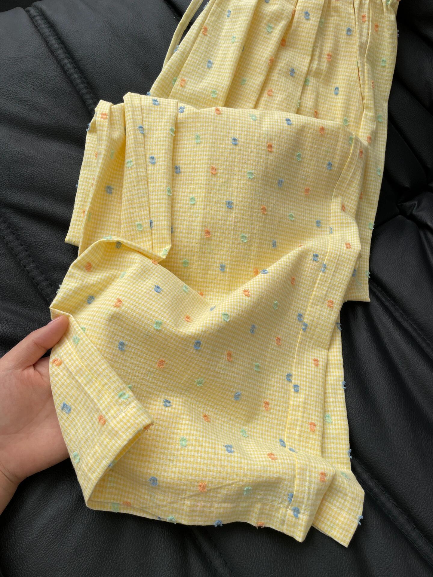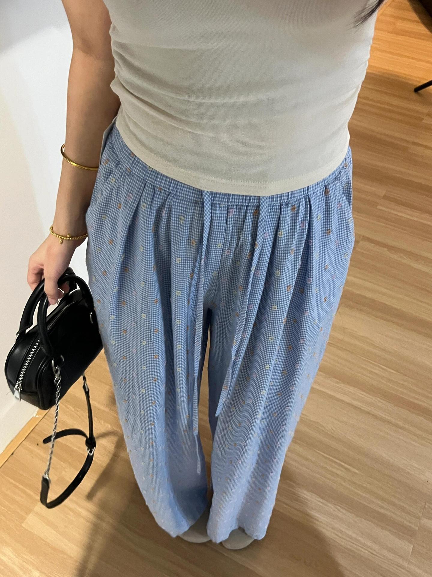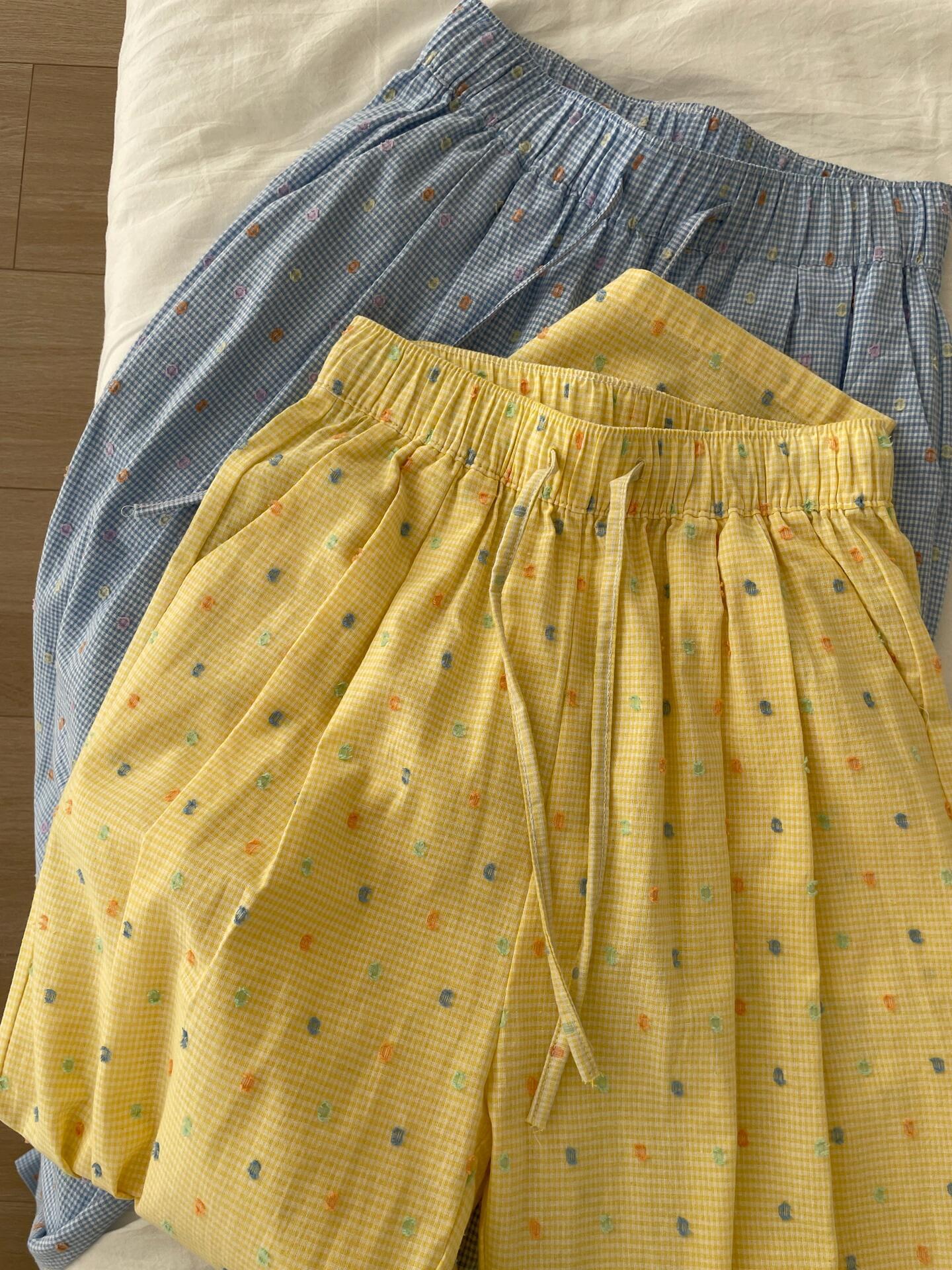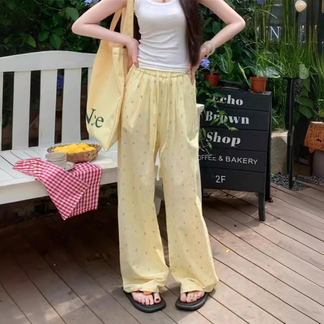 Pantalones casuales de lunares y ondas de colores para mujer, de algodón, de verano 2024, nuevos pantalones amarillos, azules, holgados, estilo holgado.