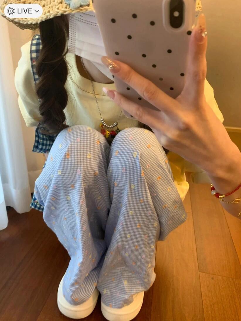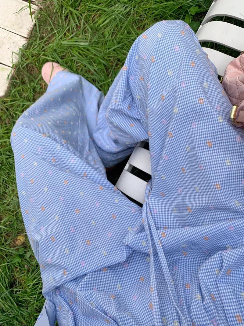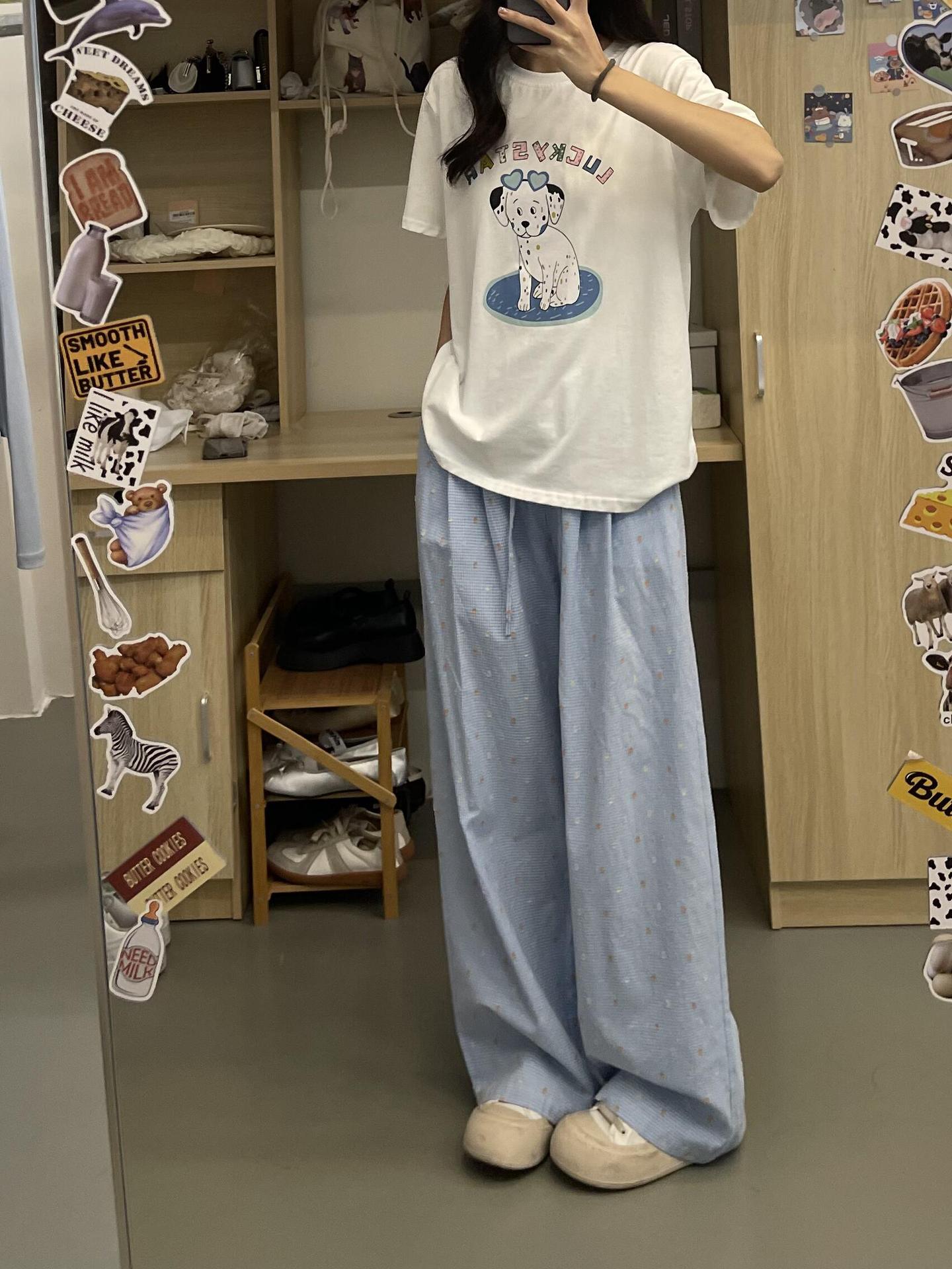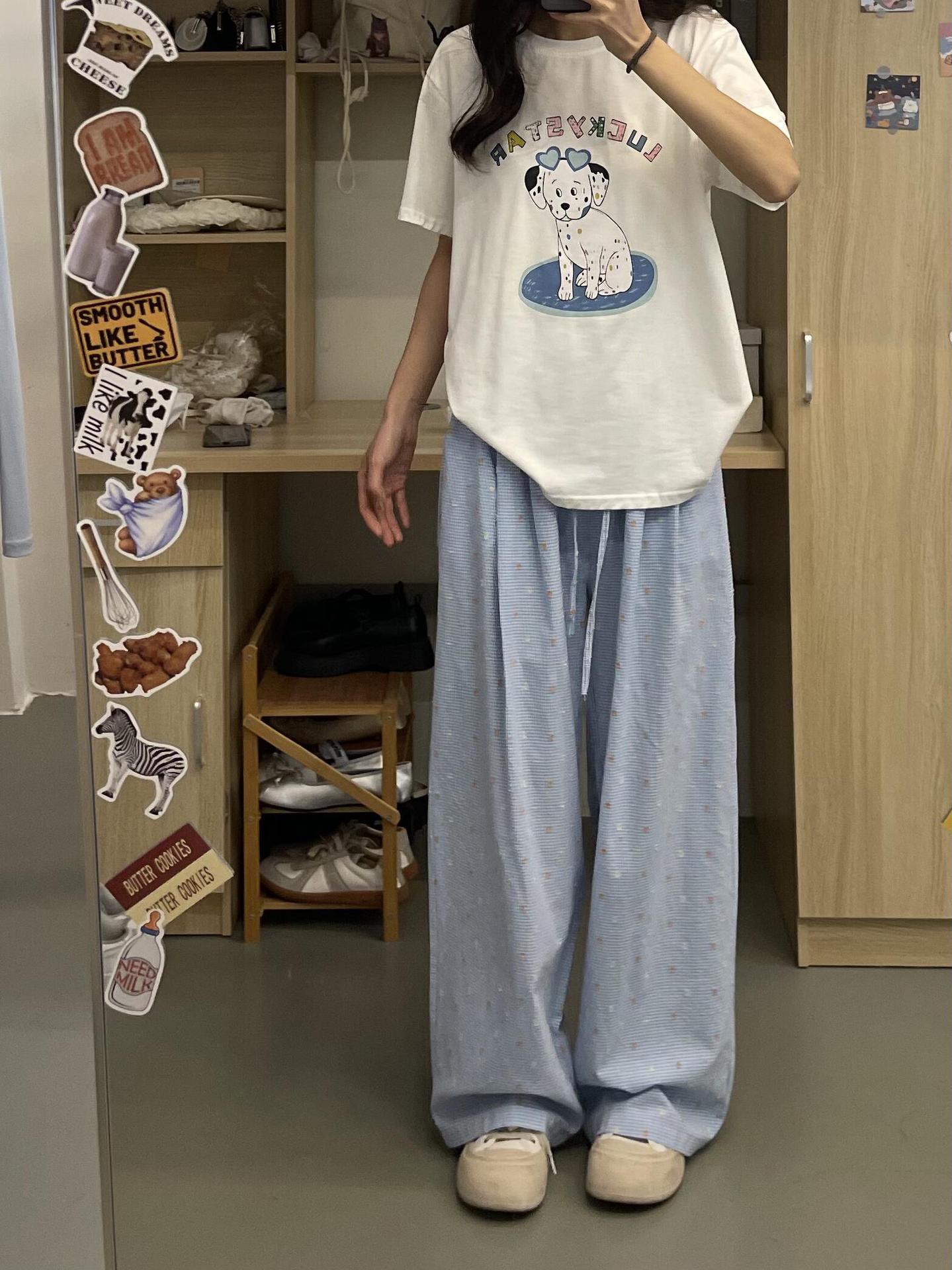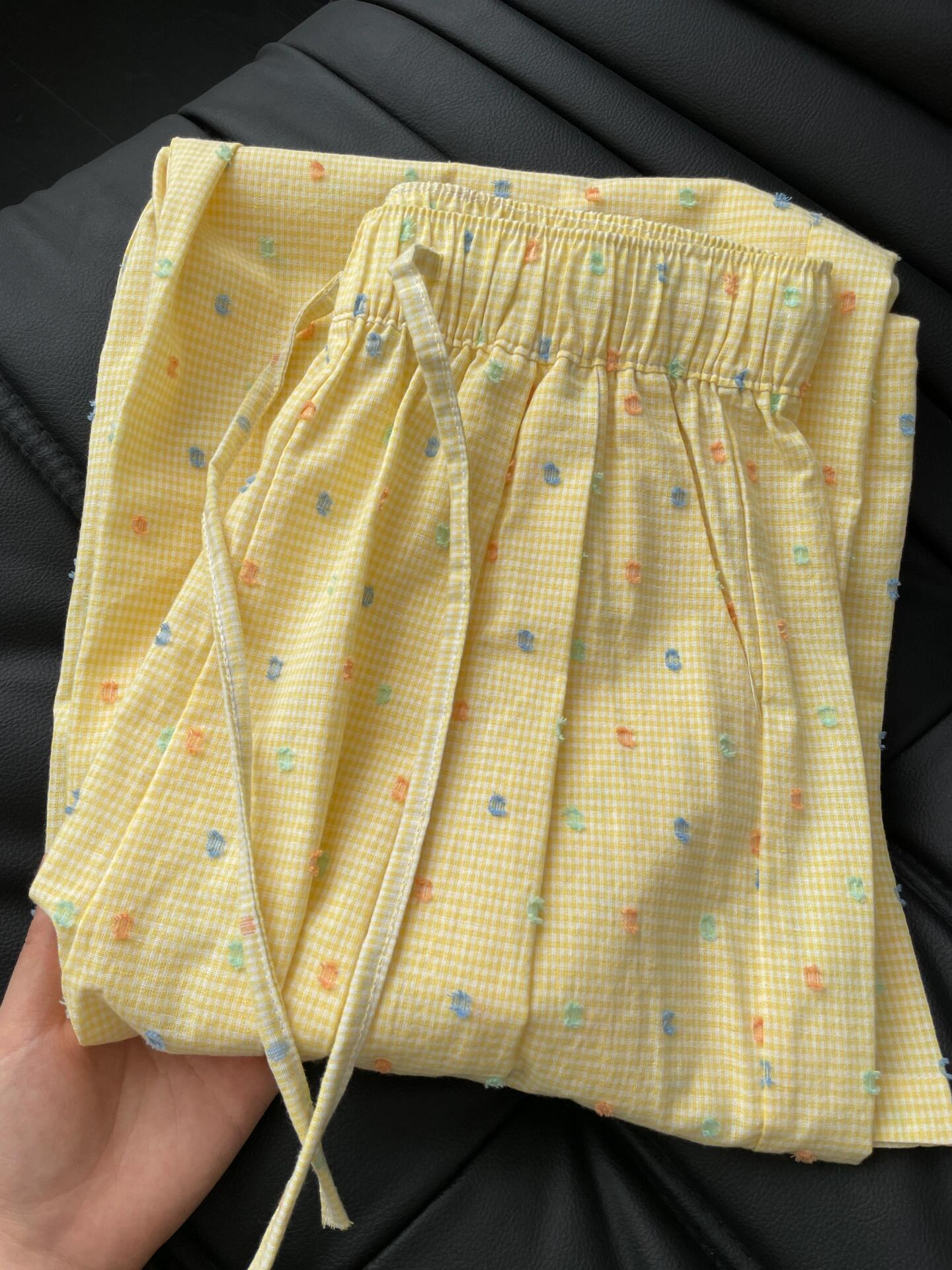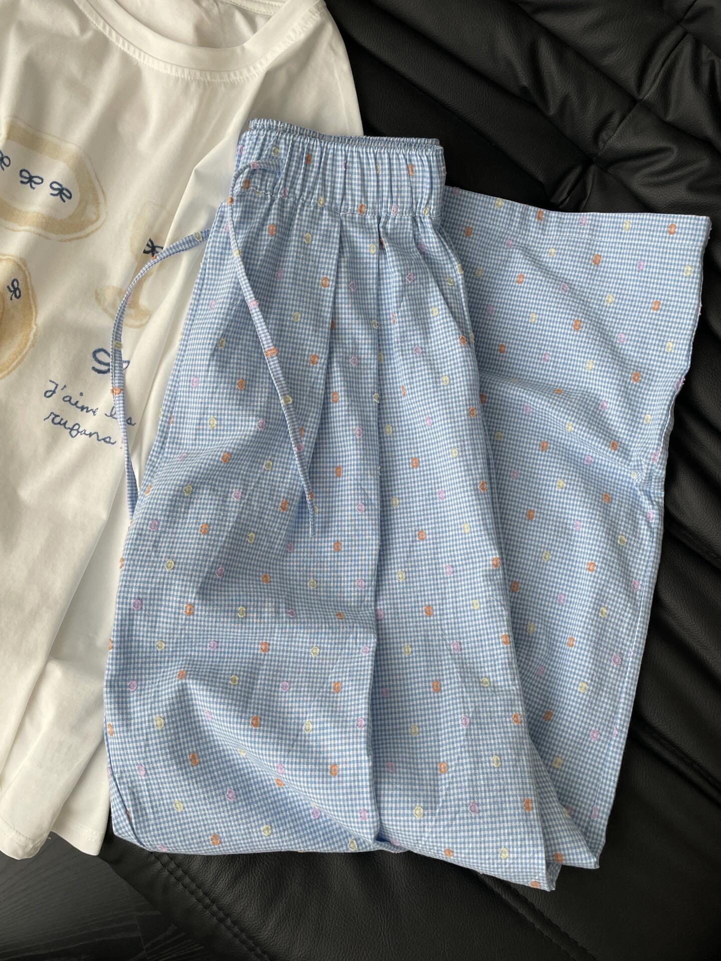 Pantalones casuales de lunares y ondas de colores para mujer, de algodón, de verano 2024, nuevos pantalones amarillos, azules, holgados, estilo holgado.