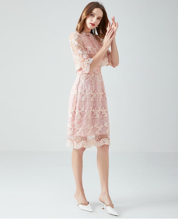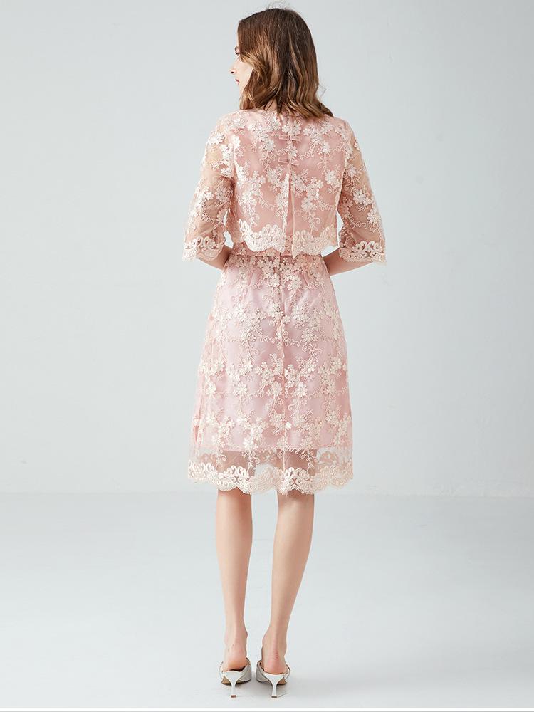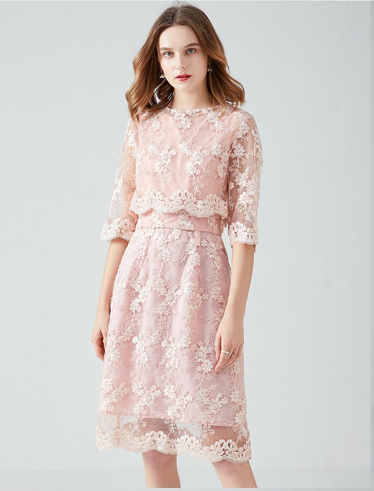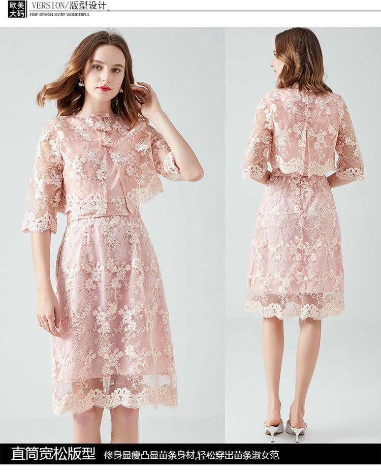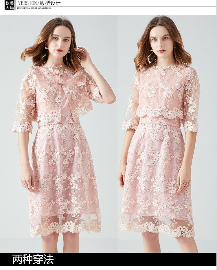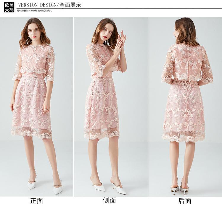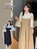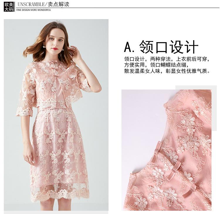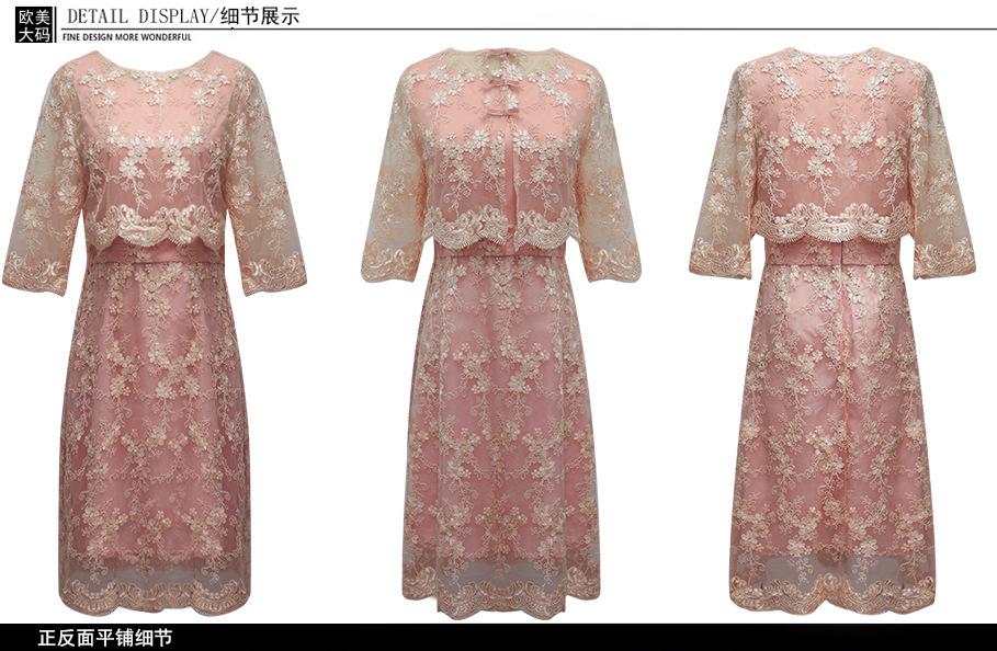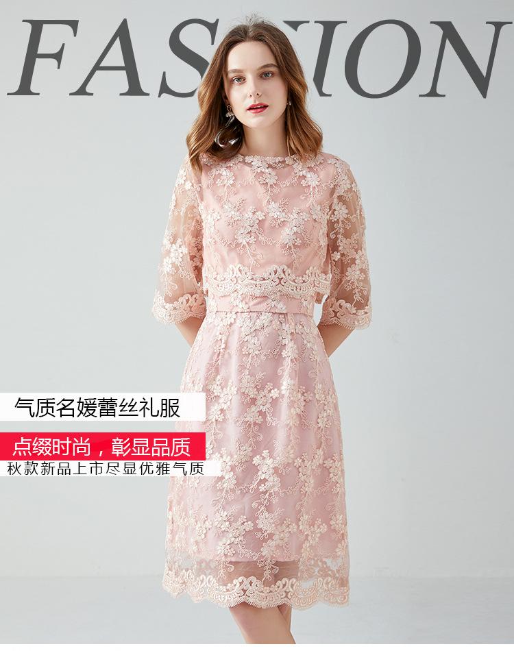 Vestido juvenil que combina con todo para socialités regordetas de talla grande Primavera y Otoño Nuevo vestido de encaje de dos piezas estilo francés