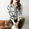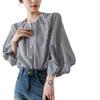 Camisa Holgada de Manga Abullonada a Rayas Estilo Hong Kong para Mujer 2025 Primavera y Verano Nuevo Estilo Camisa Sencilla de Manga Tres Cuartos con Cuello Redondo